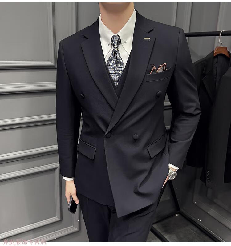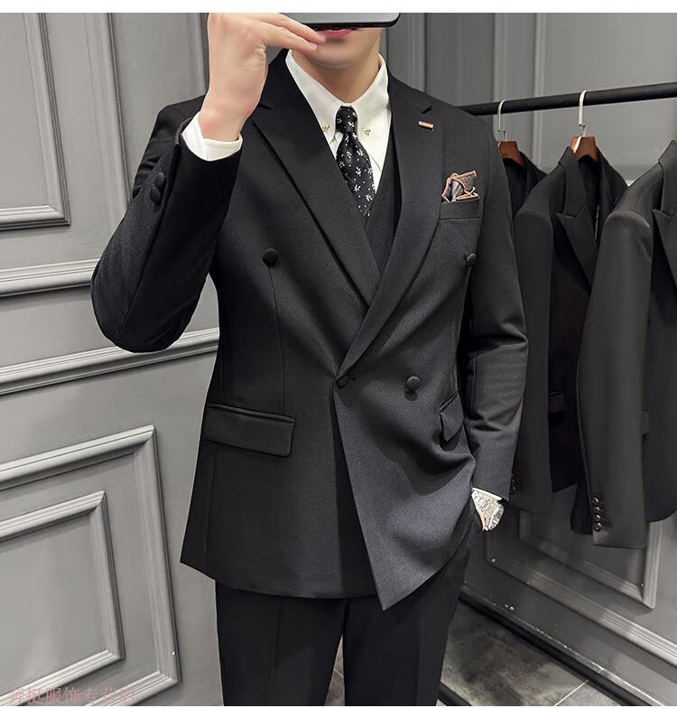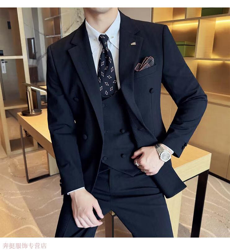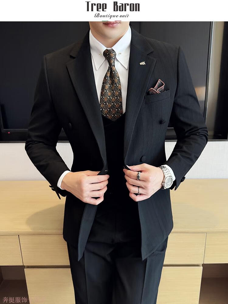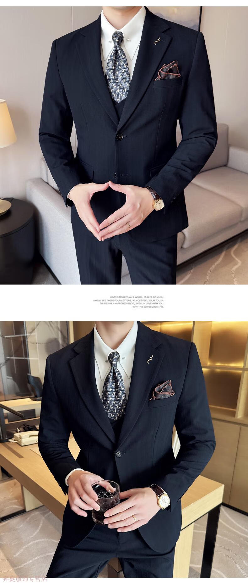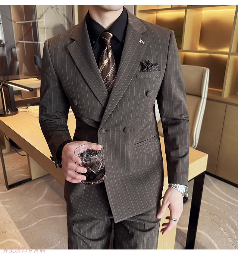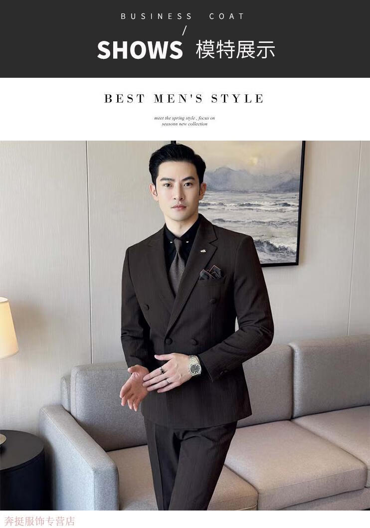 Annunciation Bird Haute Couture Suit Men's Wedding Dress Korean Slim Groom's Suit British Style Business Formal Dress Dark Brown #(Suit+Vest+Trousers) Comes with free shirt and tie M