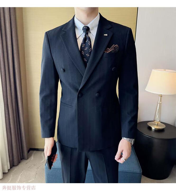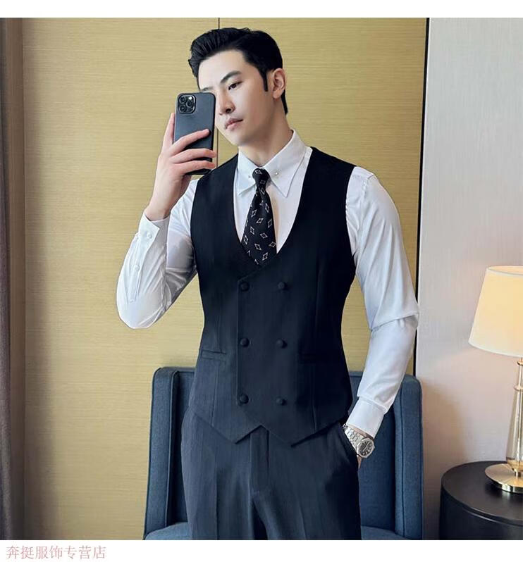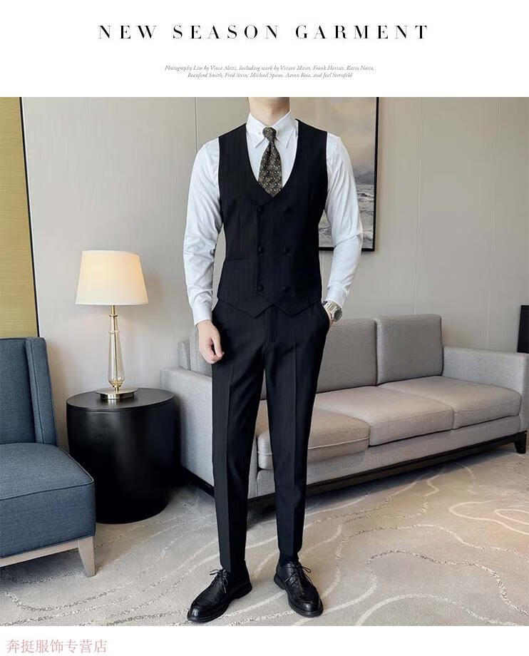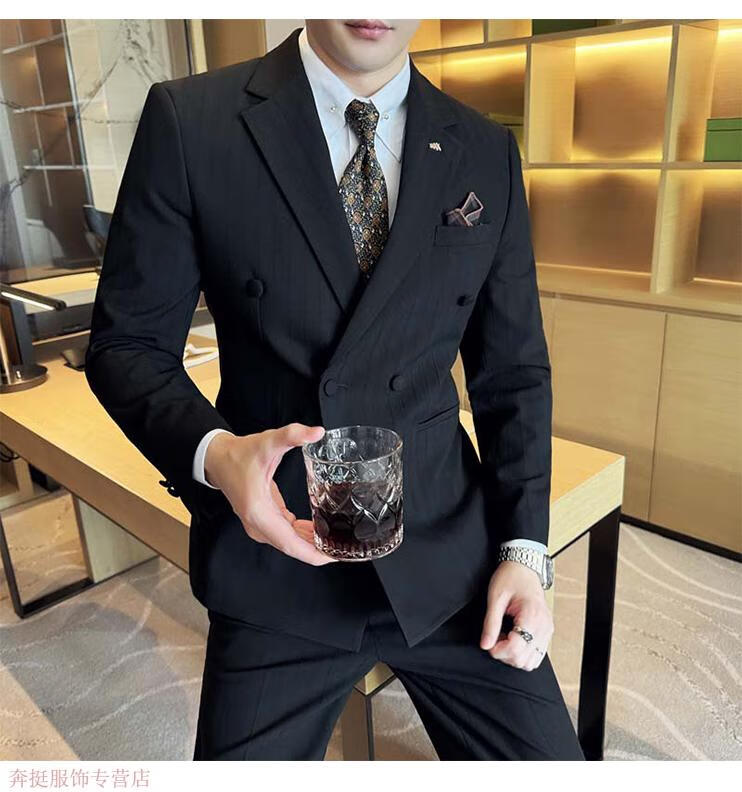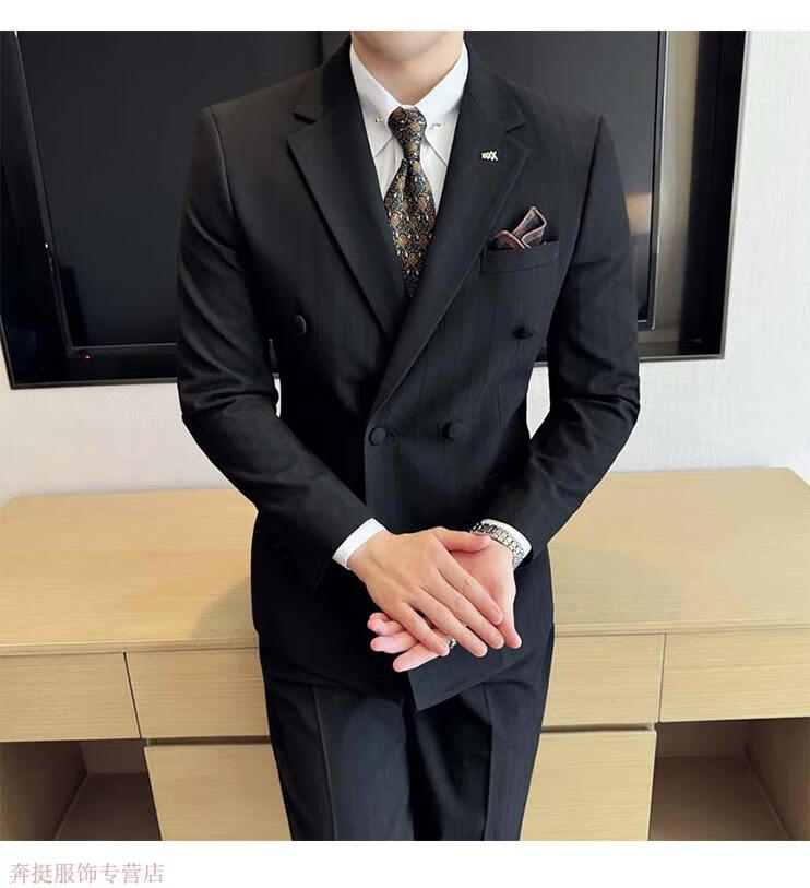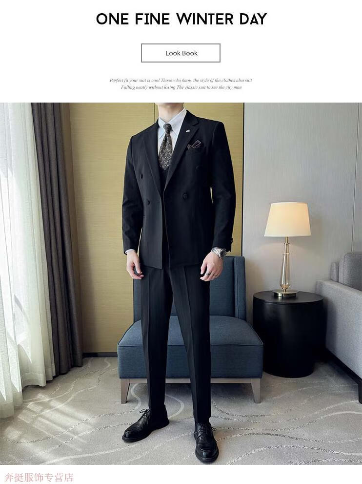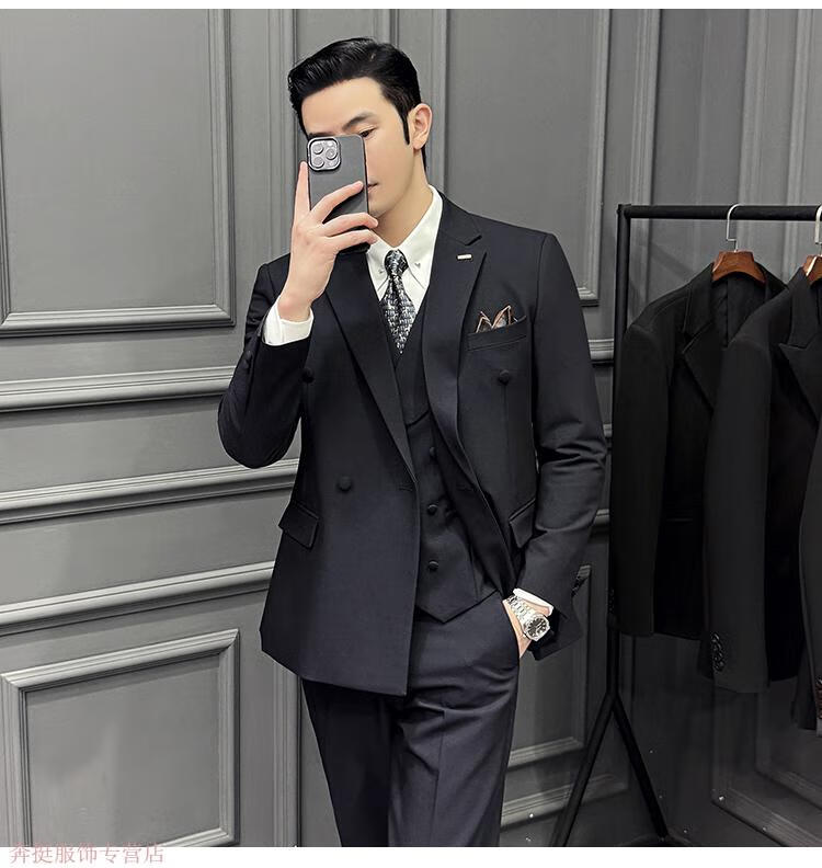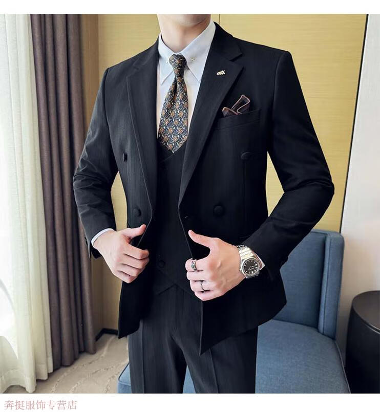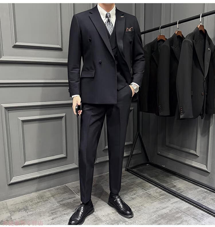 Annunciation Bird Haute Couture Suit Men's Wedding Dress Korean Slim Groom's Suit British Style Business Formal Dress Dark Brown #(Suit+Vest+Trousers) Comes with free shirt and tie M