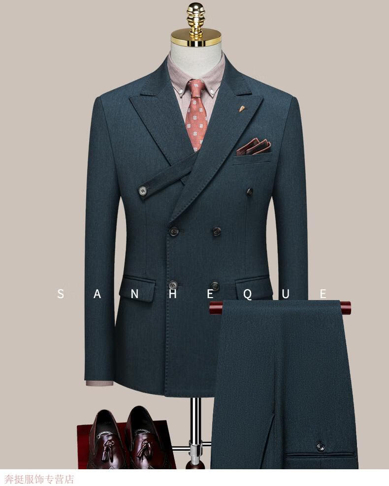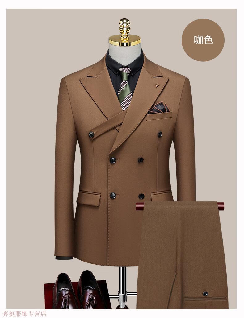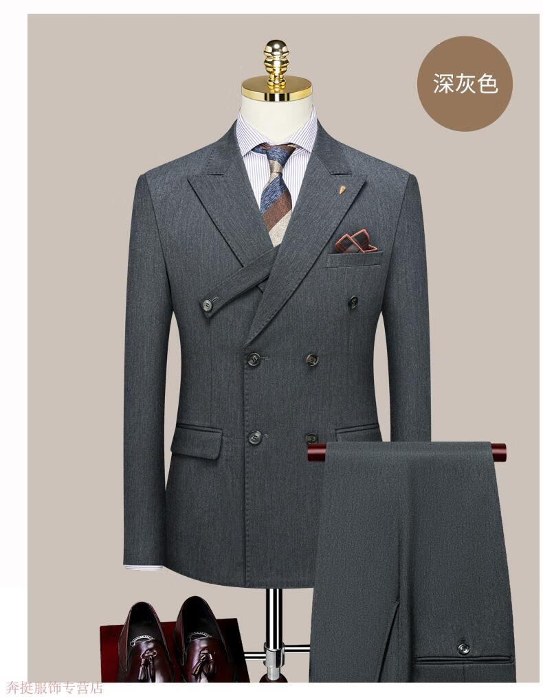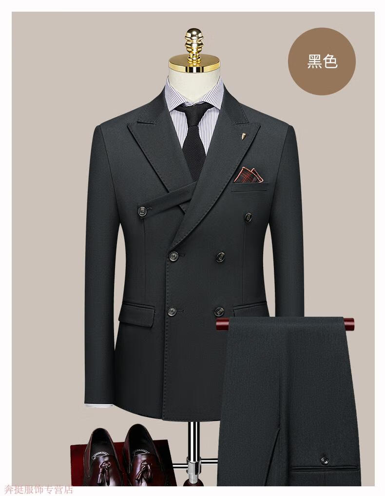 Annunciation Bird Haute Couture Suit Men's Double-breasted High-end Business Slim Formal Wear Groom Wedding Dress Handsome Suit Black (suit + trousers) M