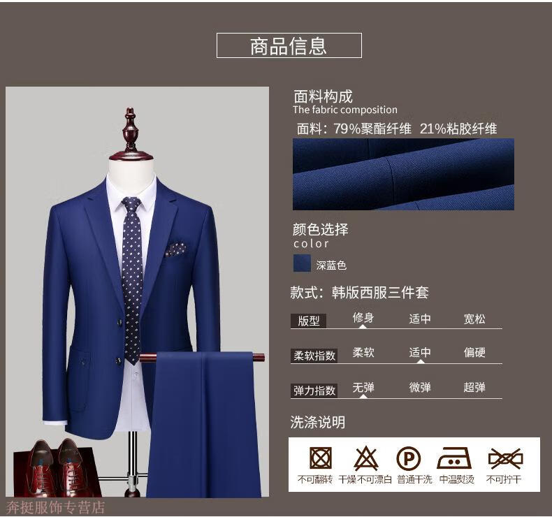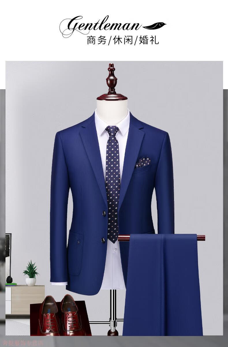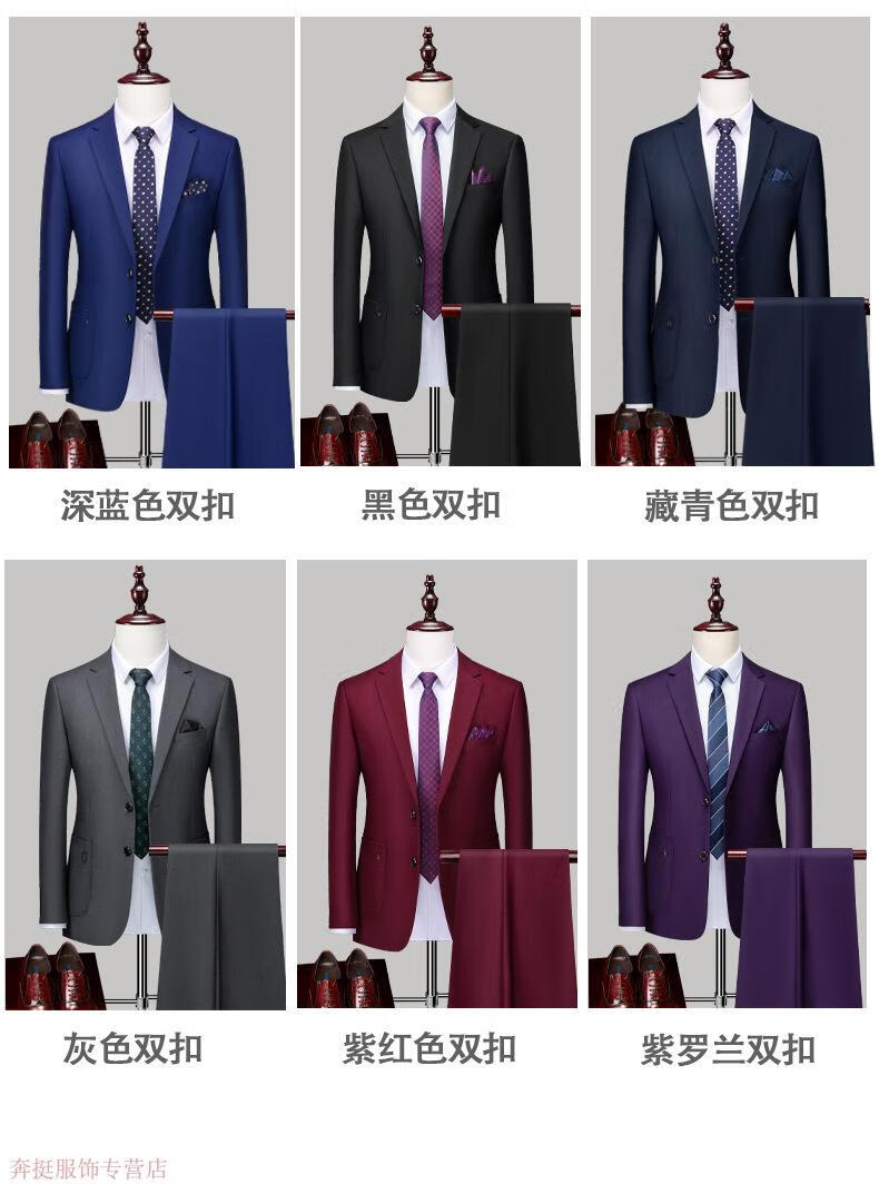 Angel Bird Men's Suit Casual Suit Professional Business Two-piece Autumn and Winter Groom's Dress Two-Button Work Clothes Solid Color Black (Top + Pants) S