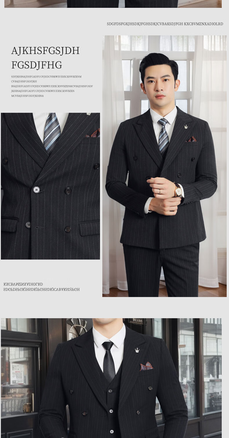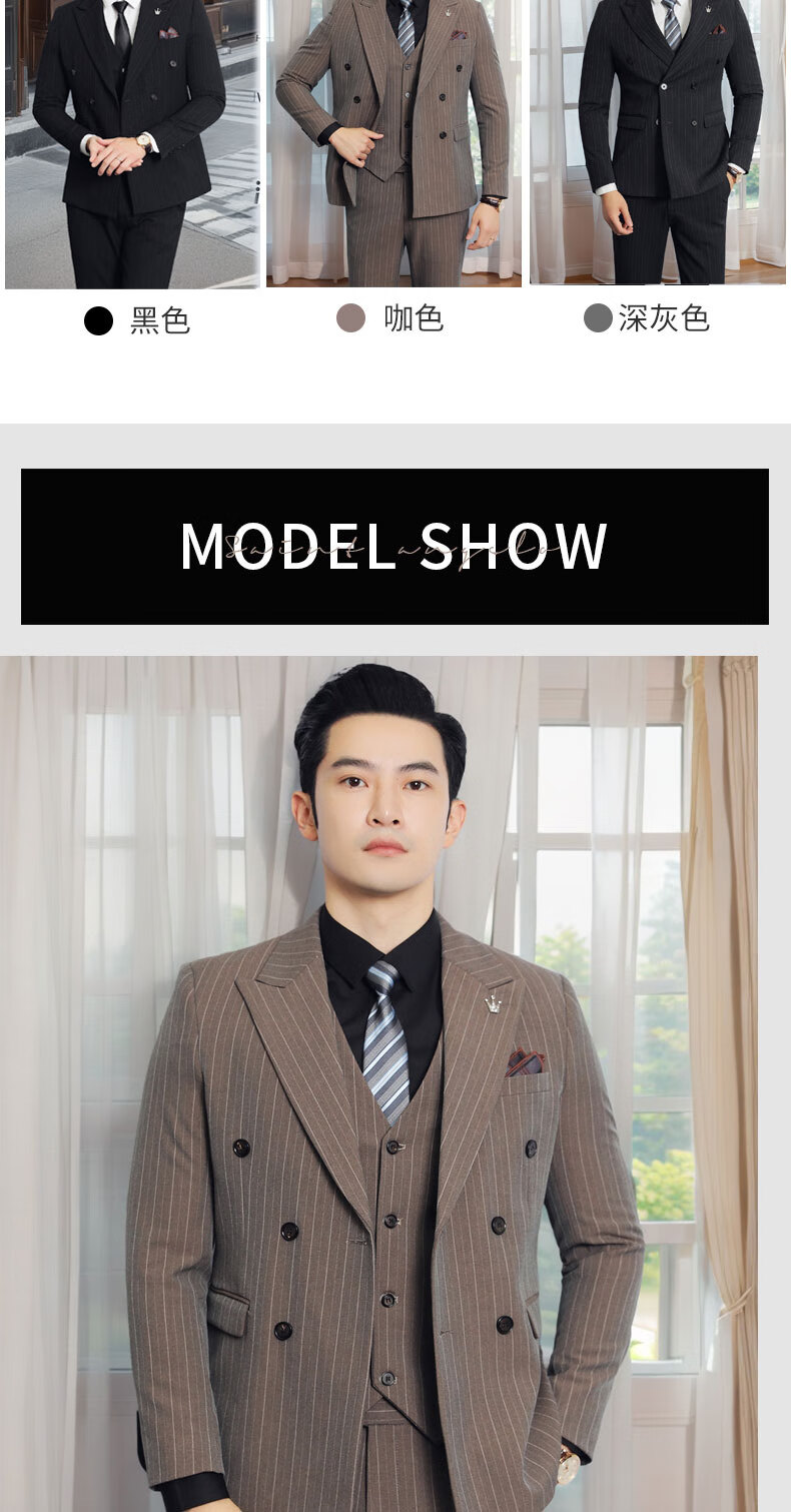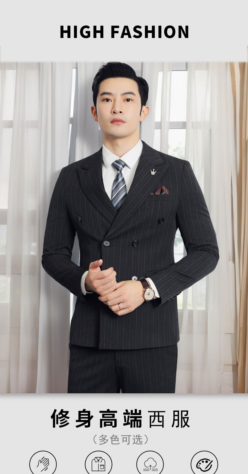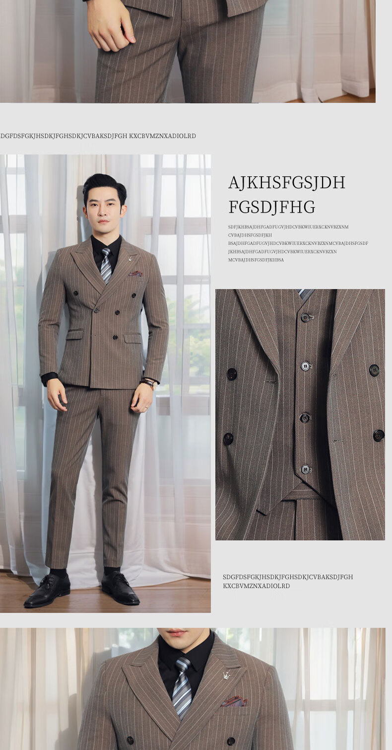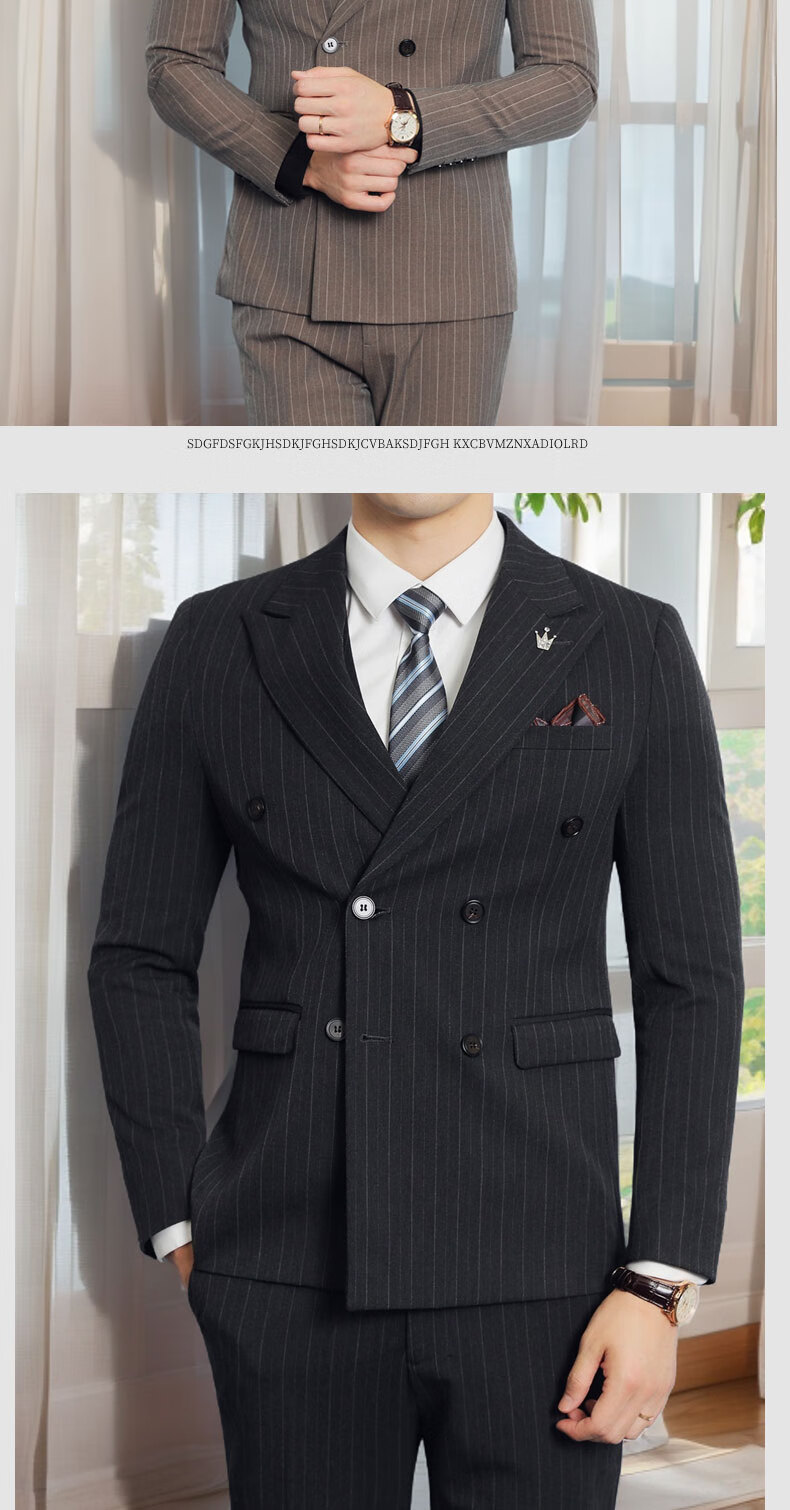 Red bean casual suit suit men's striped business professional formal Korean version slim groom wedding dress trendy black vest 2XL