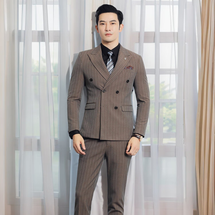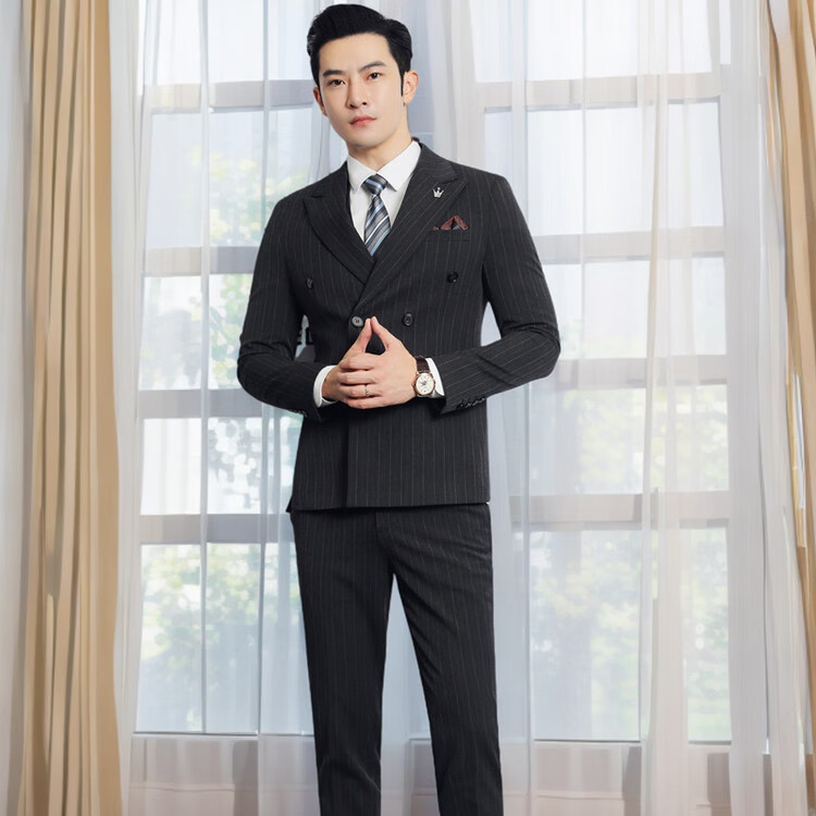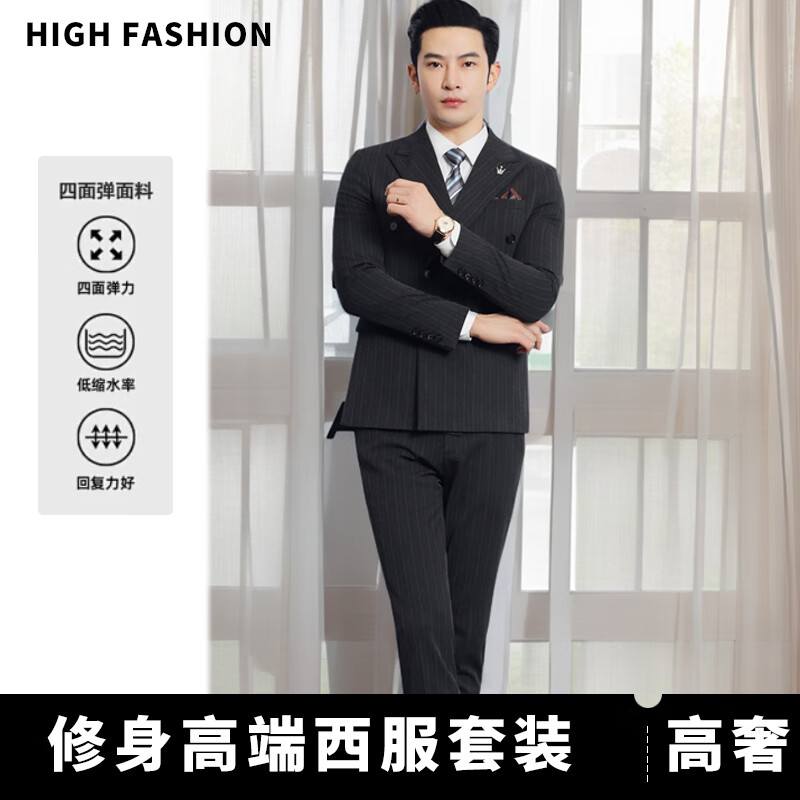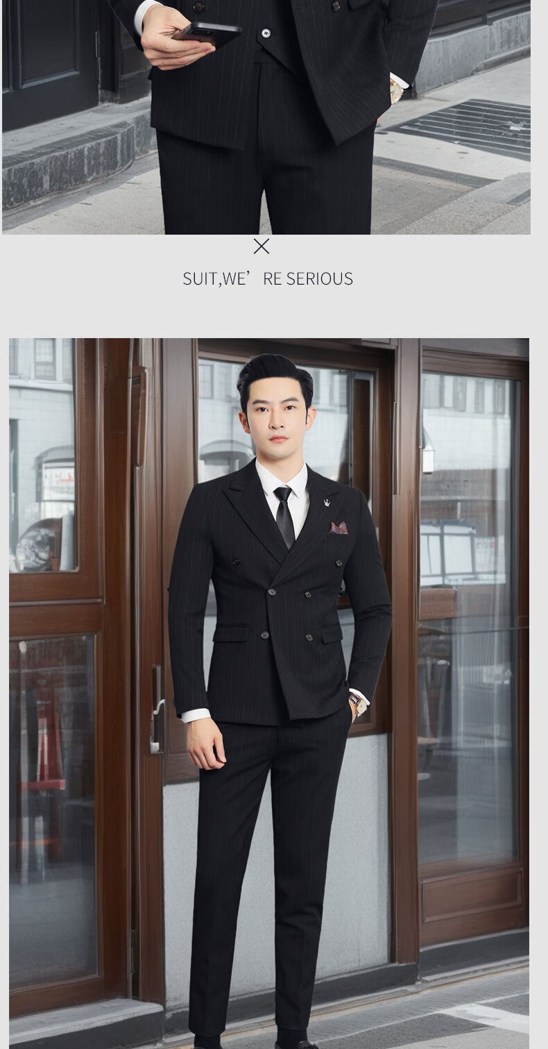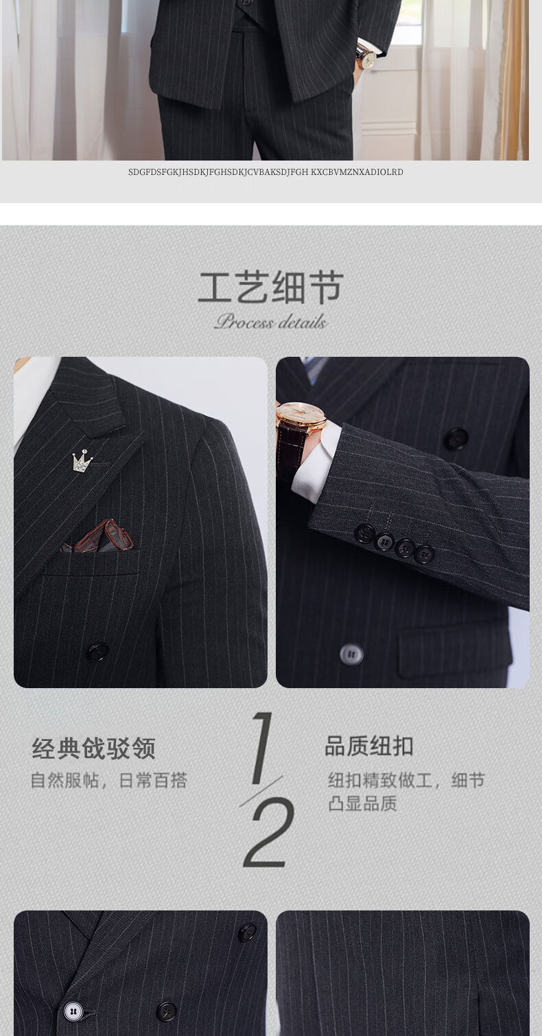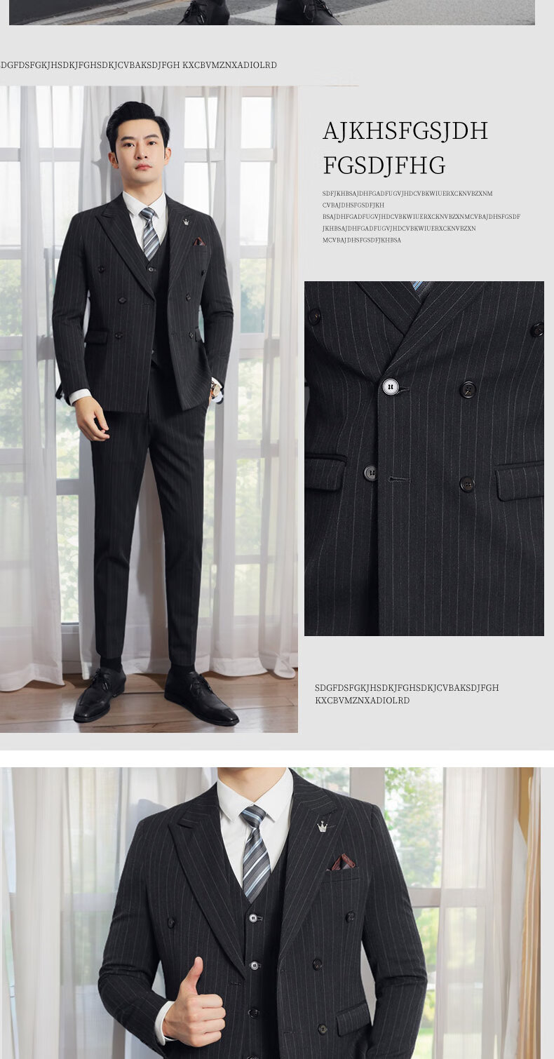 Red bean casual suit suit men's striped business professional formal Korean version slim groom wedding dress trendy black vest 2XL