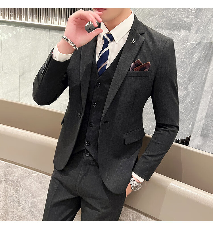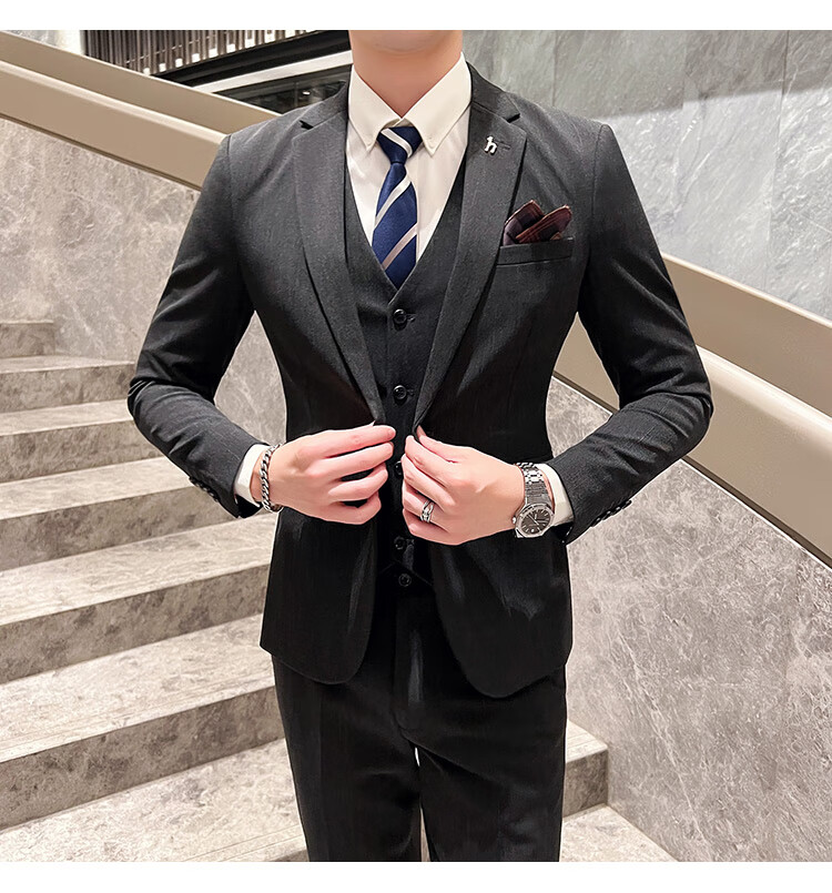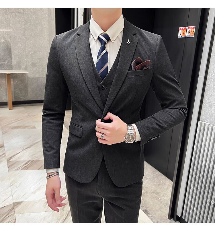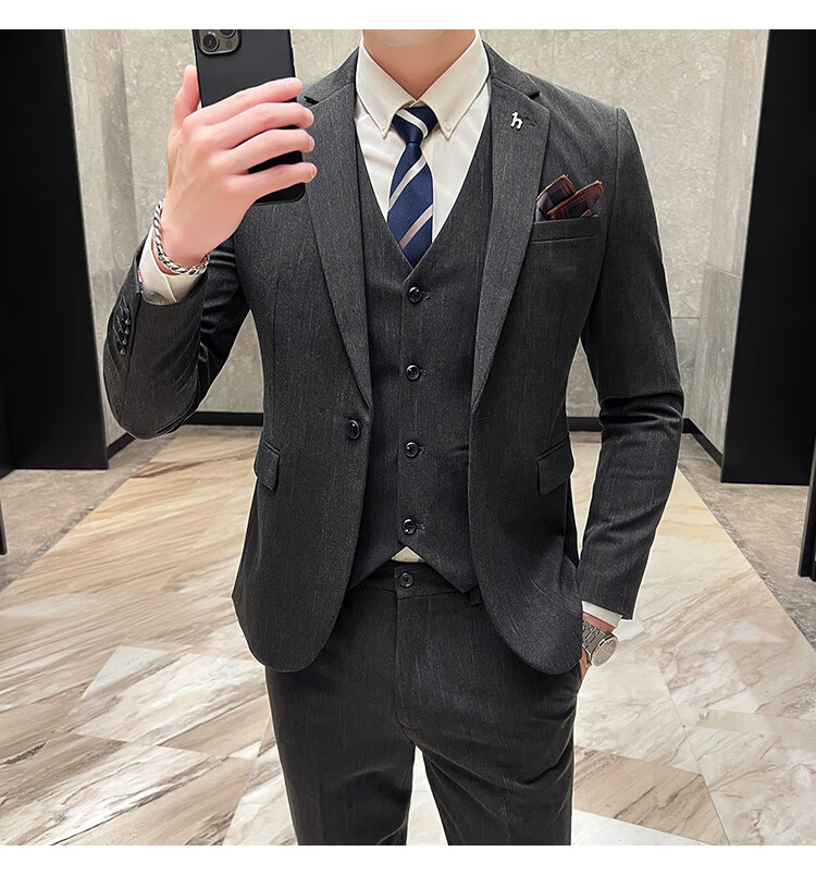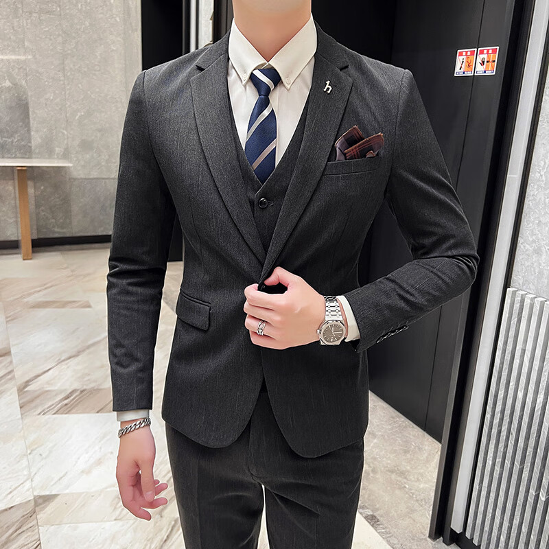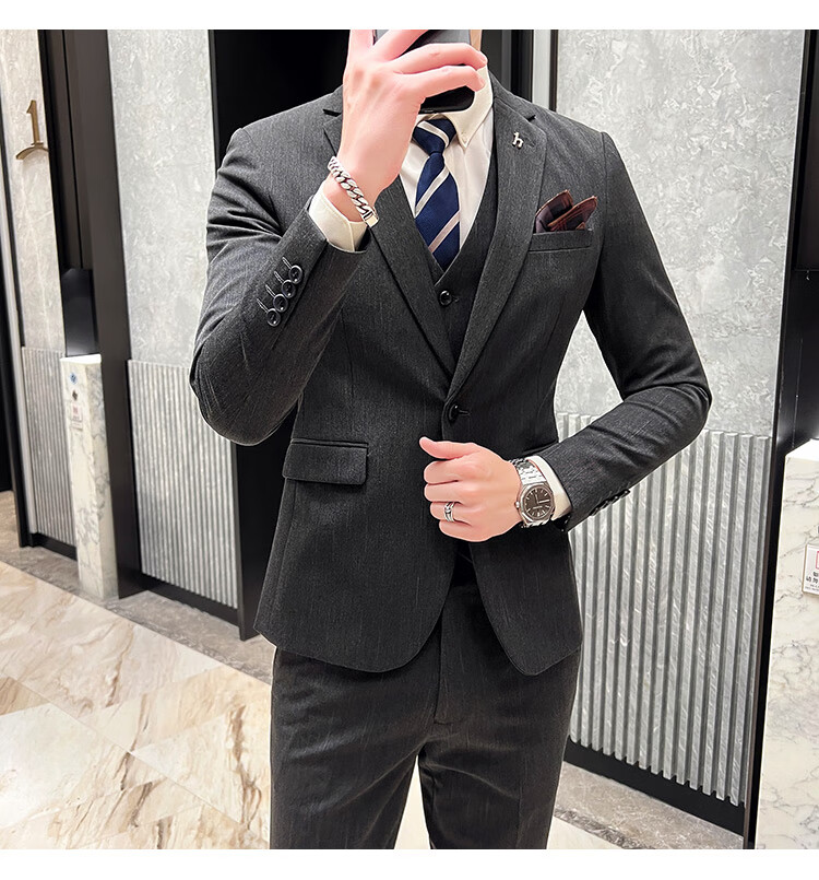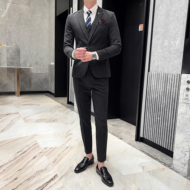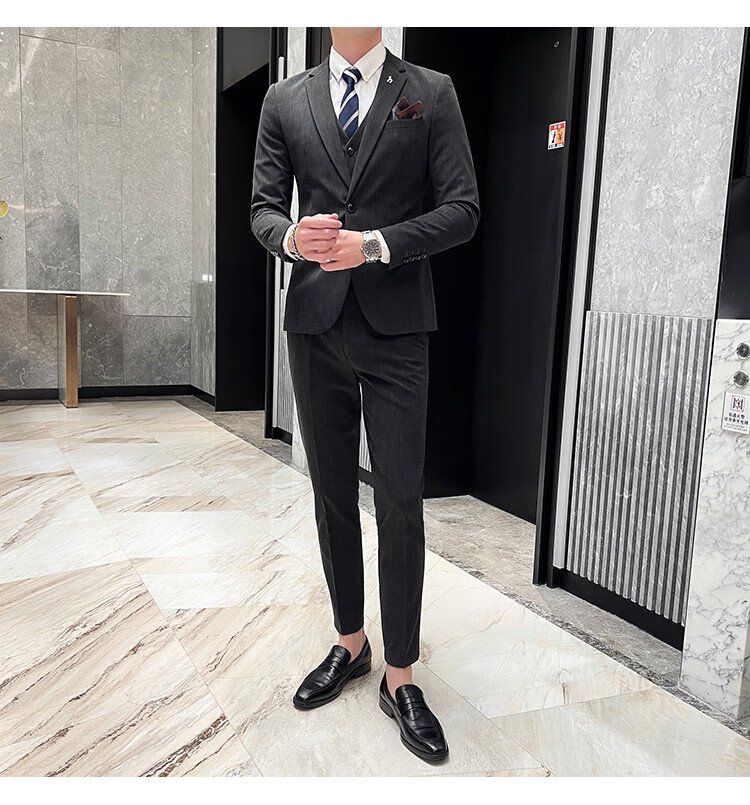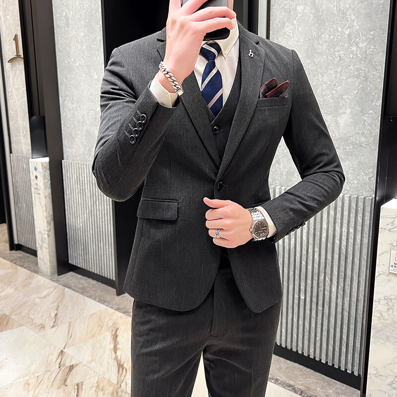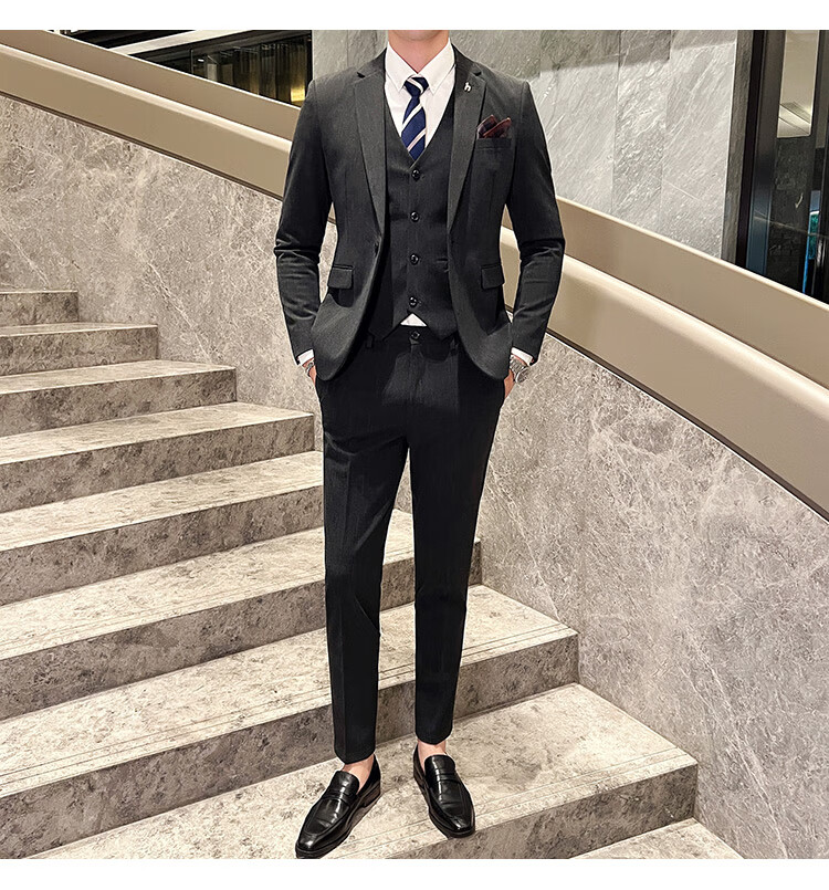 Hongdou men's suit suit 2025 autumn new wedding dress fashionable business professional suit three-piece suit for men dark gray single suit M