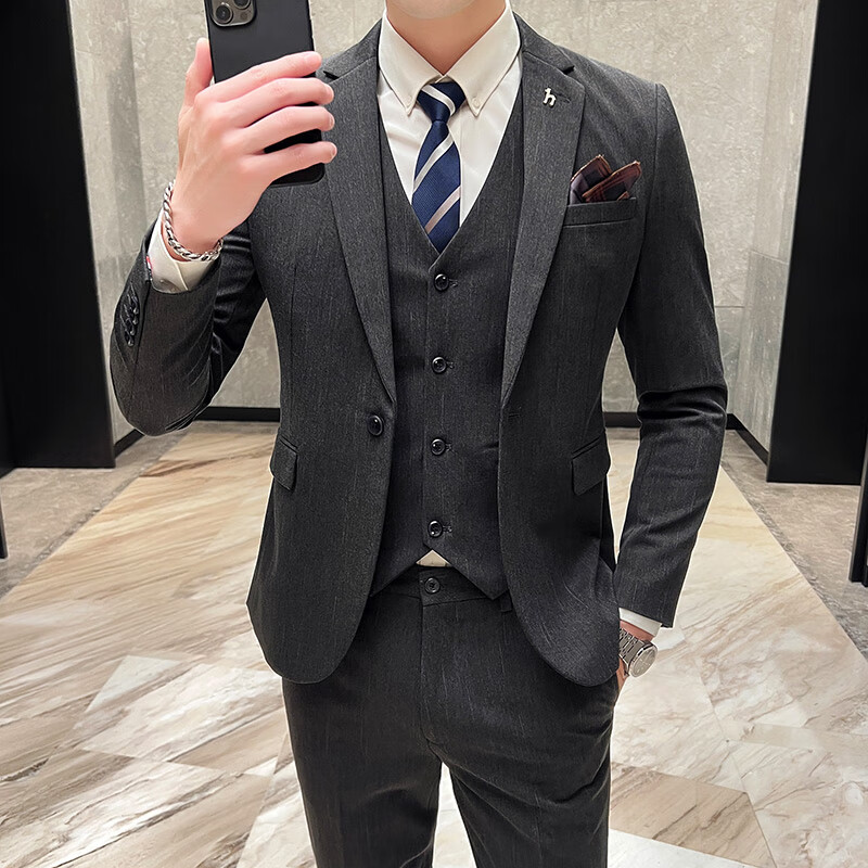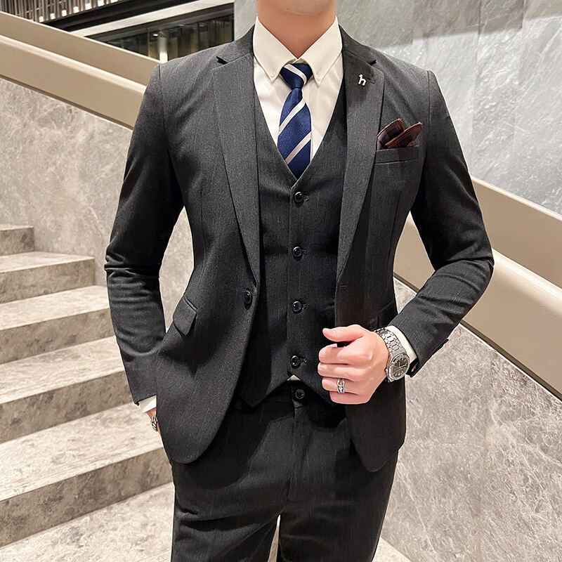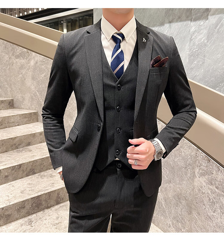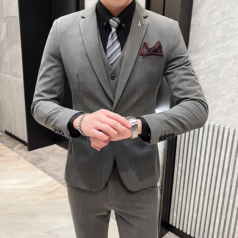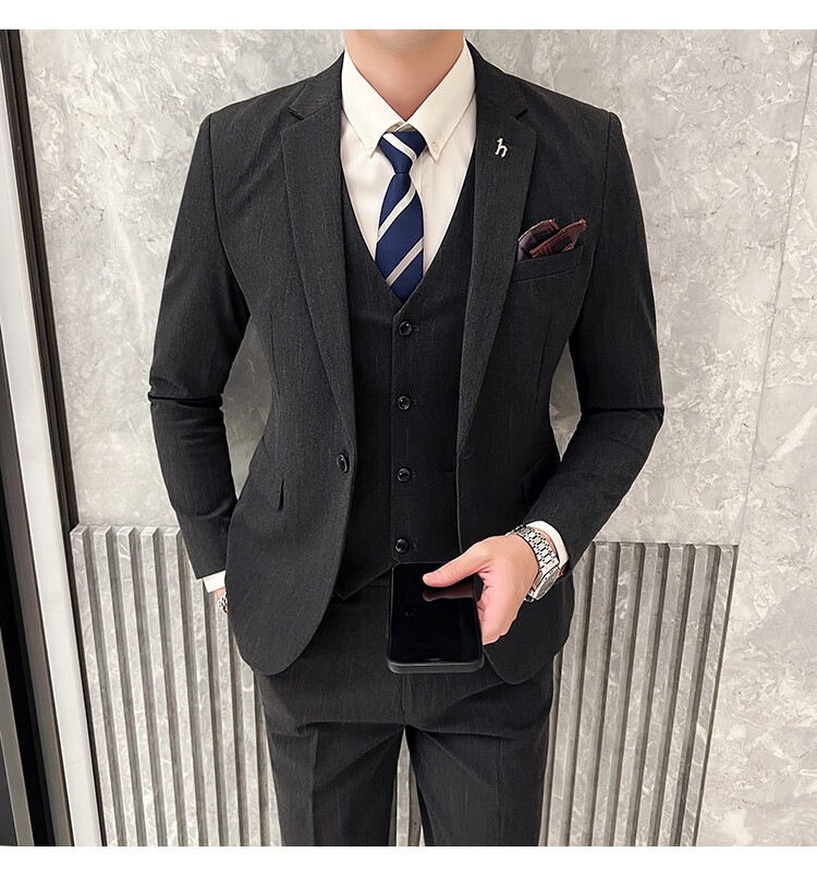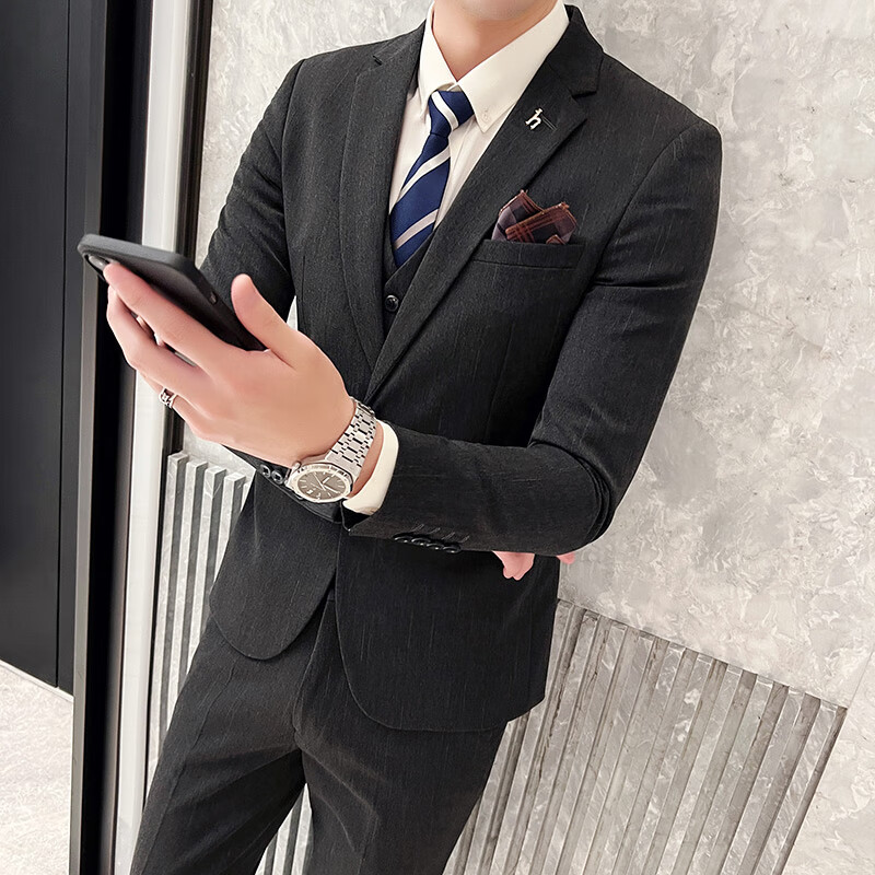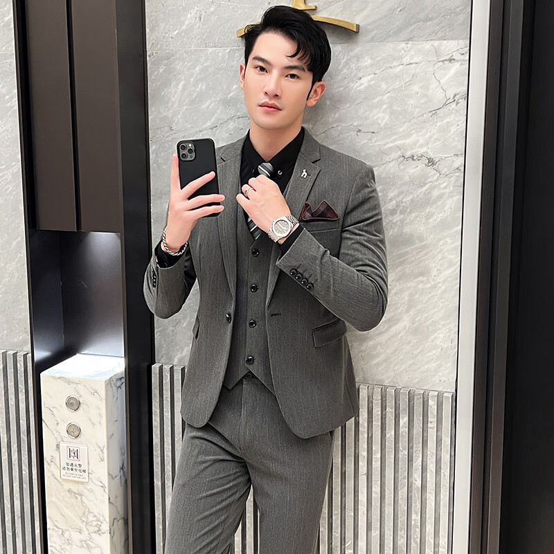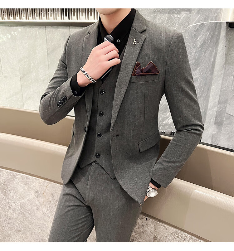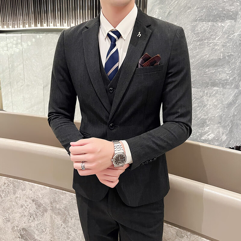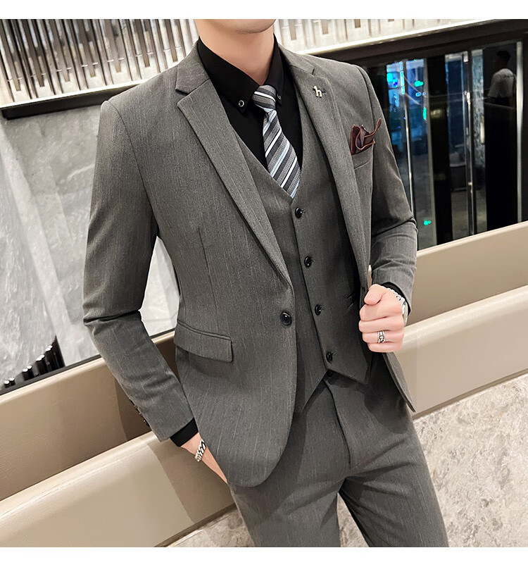 Hongdou men's suit suit 2025 autumn new wedding dress fashionable business professional suit three-piece suit for men dark gray single suit M
