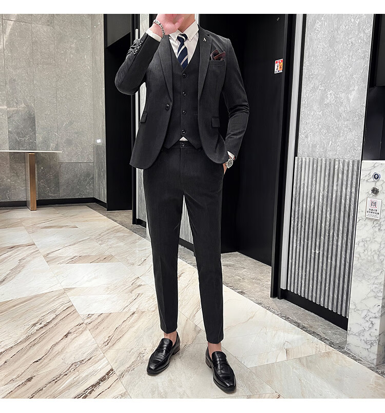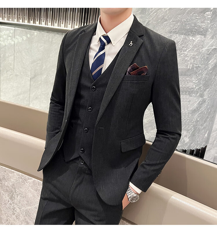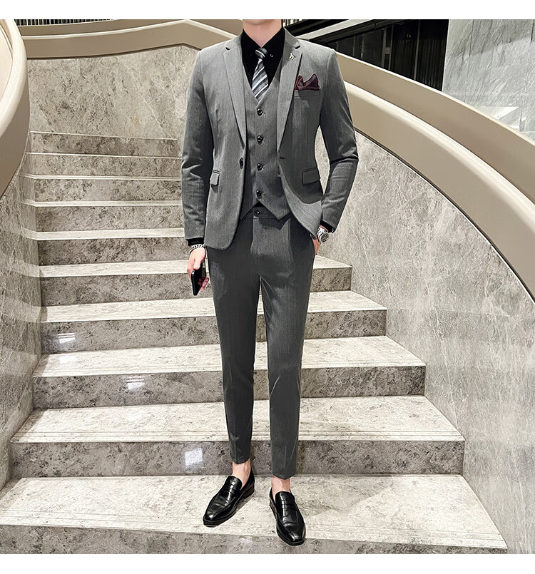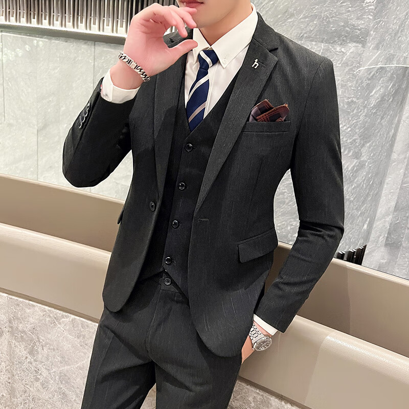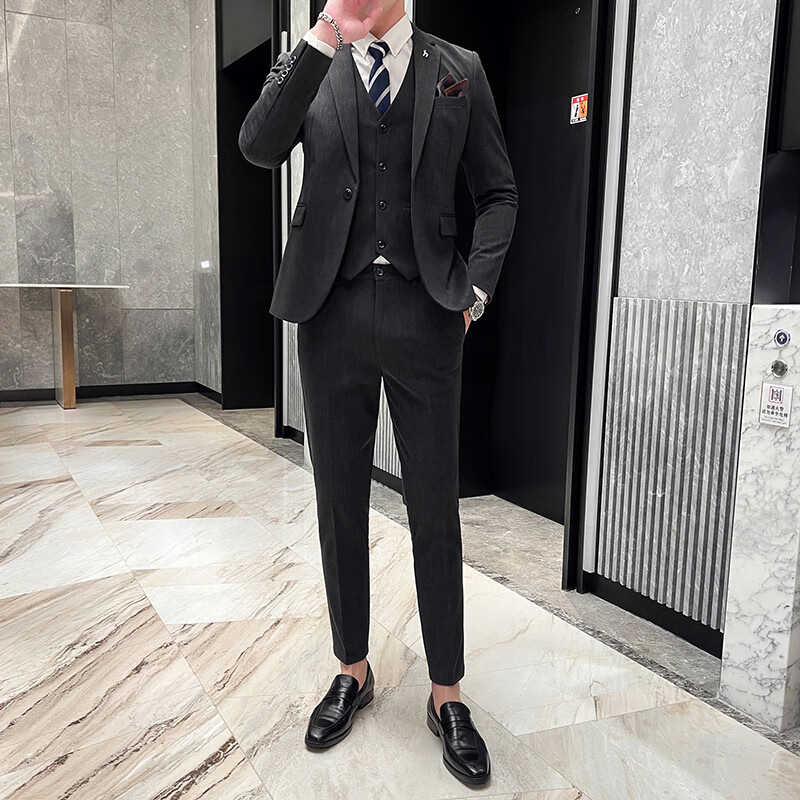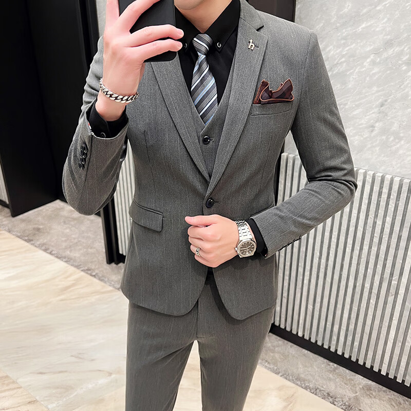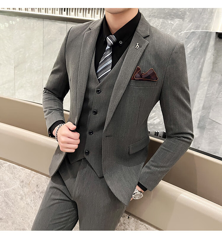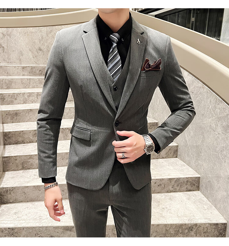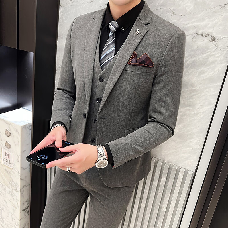 Hongdou men's suit suit 2025 autumn new wedding dress fashionable business professional suit three-piece suit for men dark gray single suit M