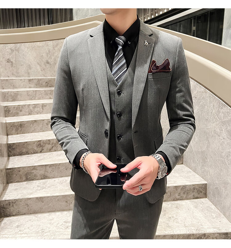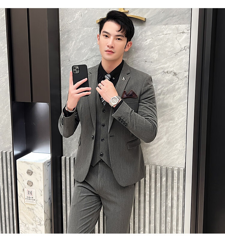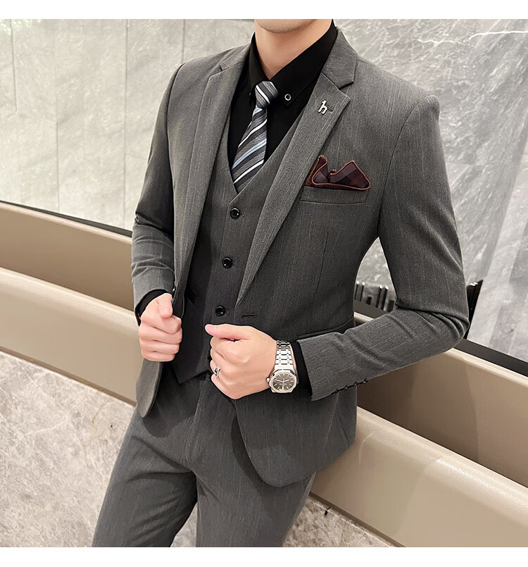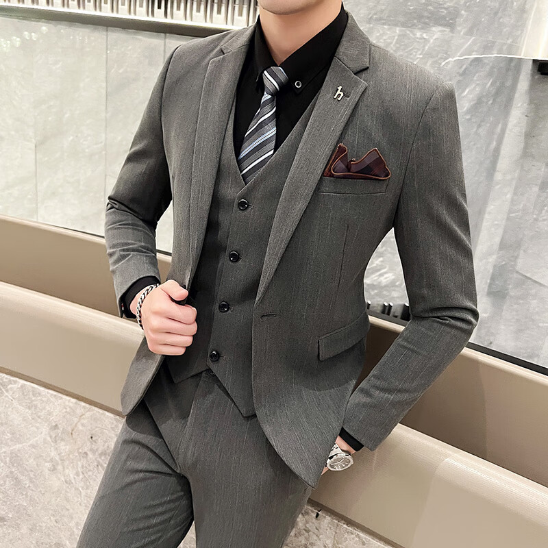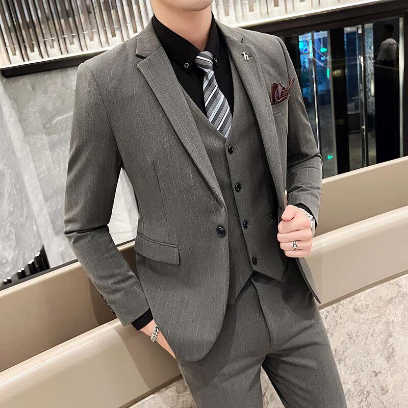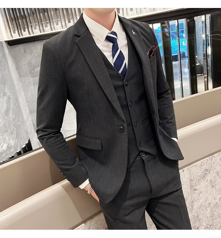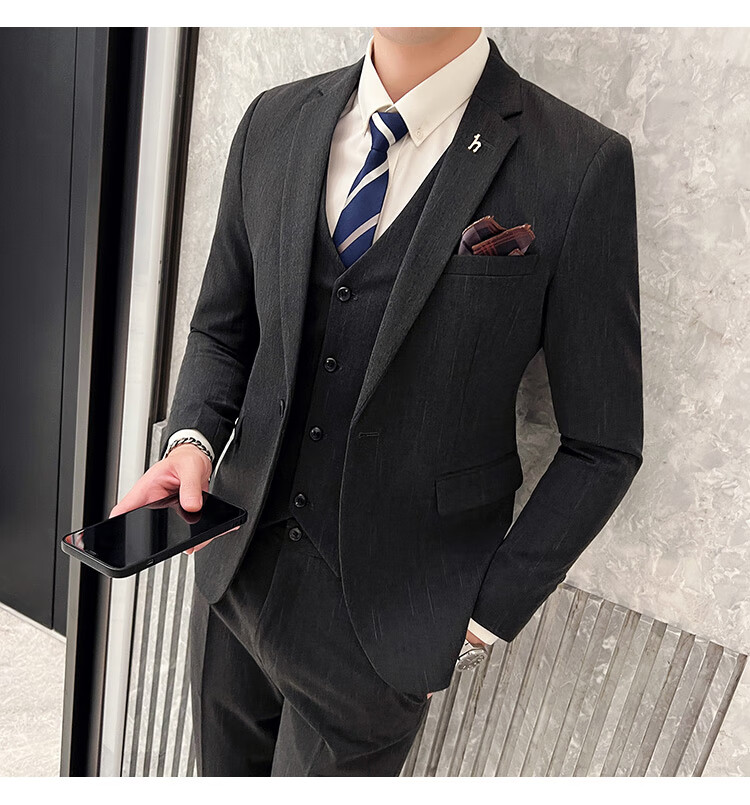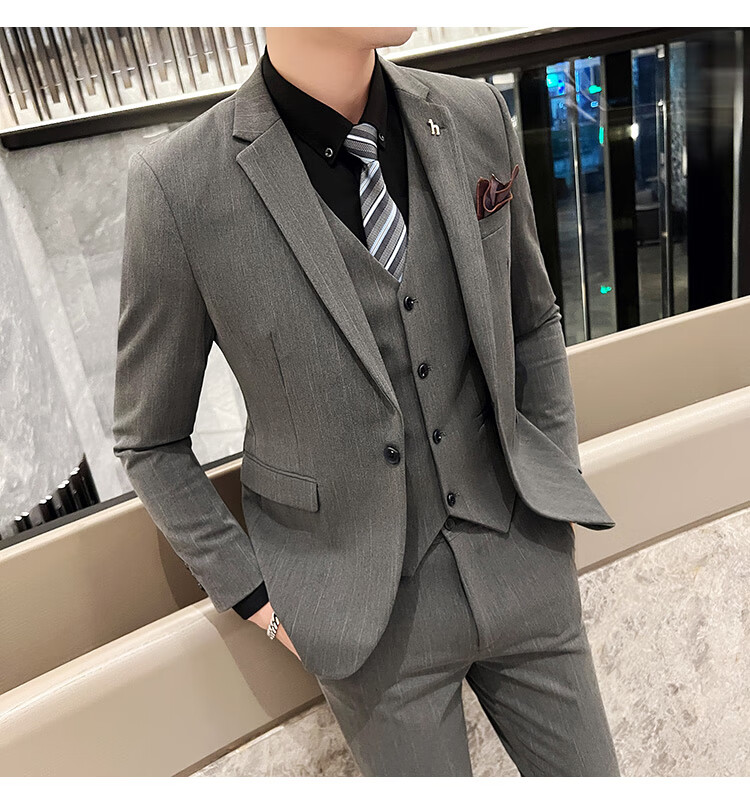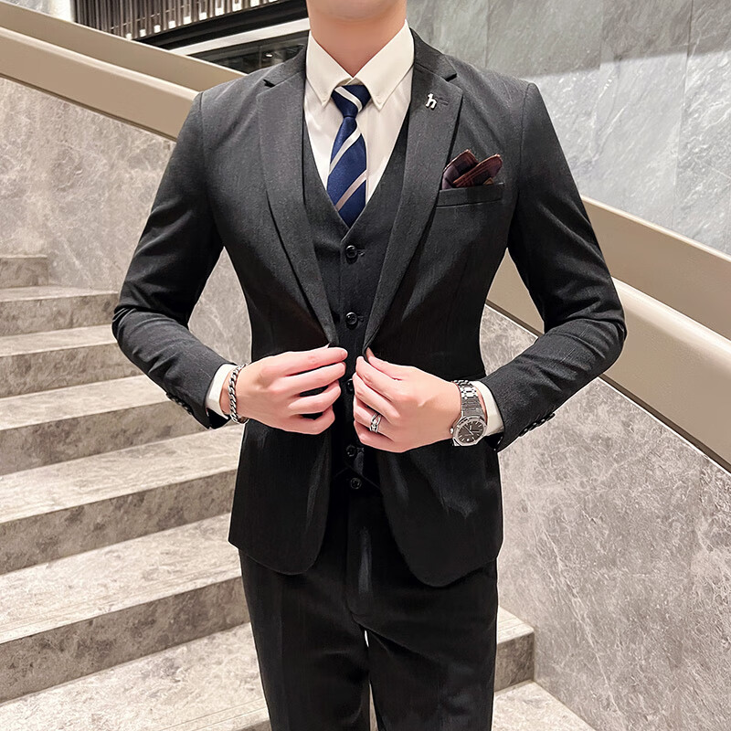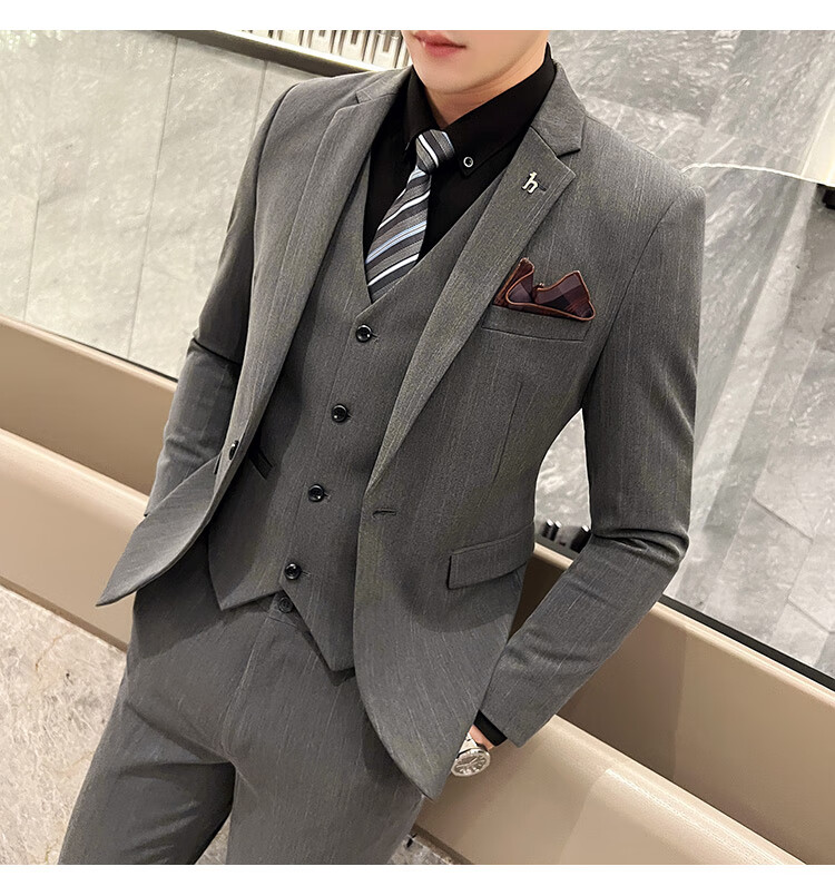 Hongdou men's suit suit 2025 autumn new wedding dress fashionable business professional suit three-piece suit for men dark gray single suit M