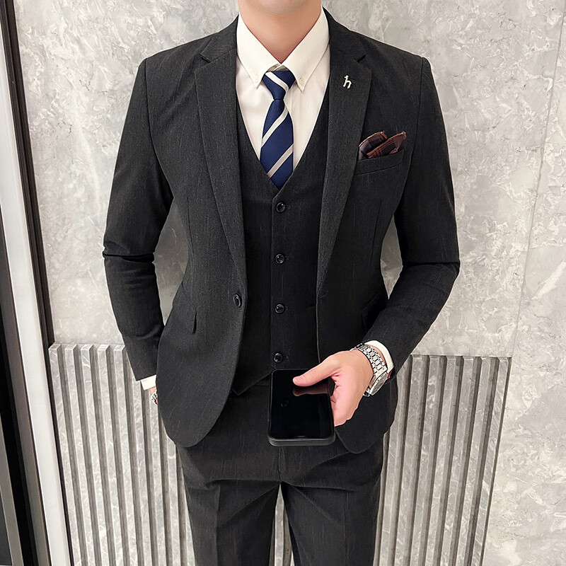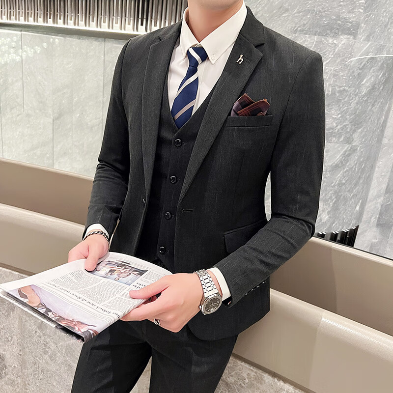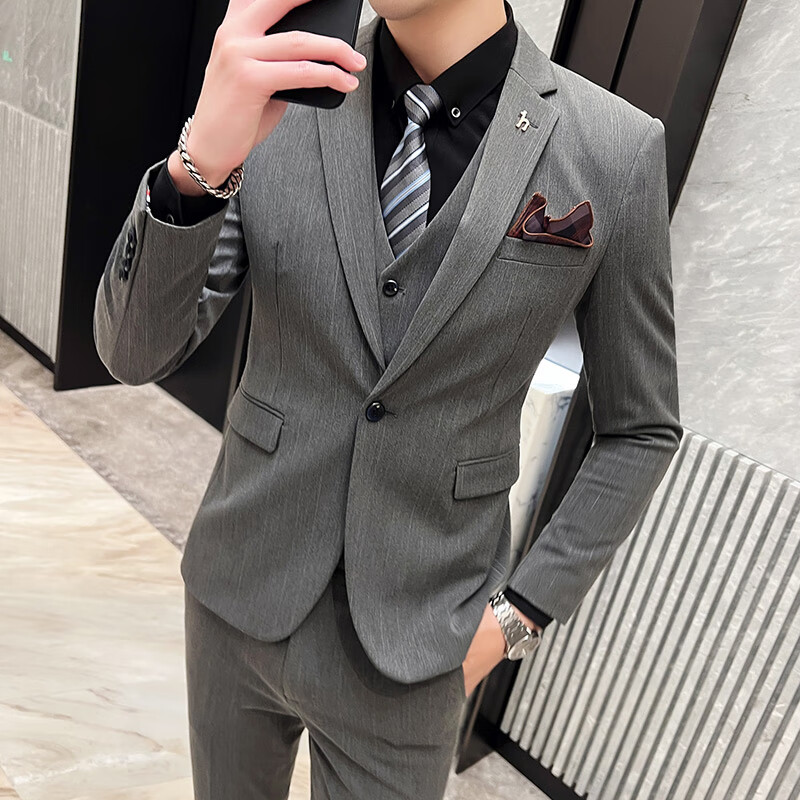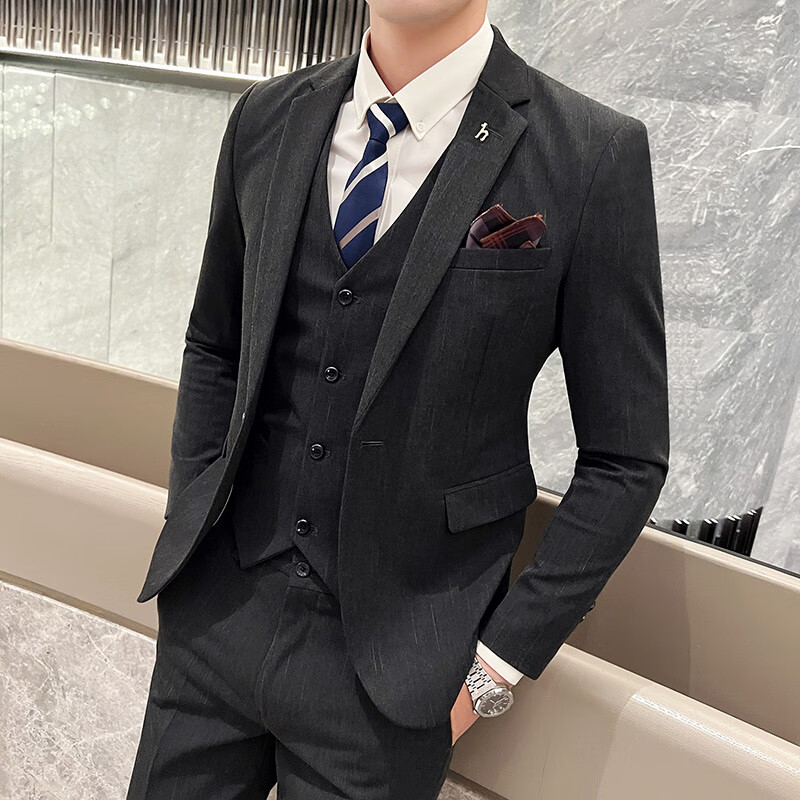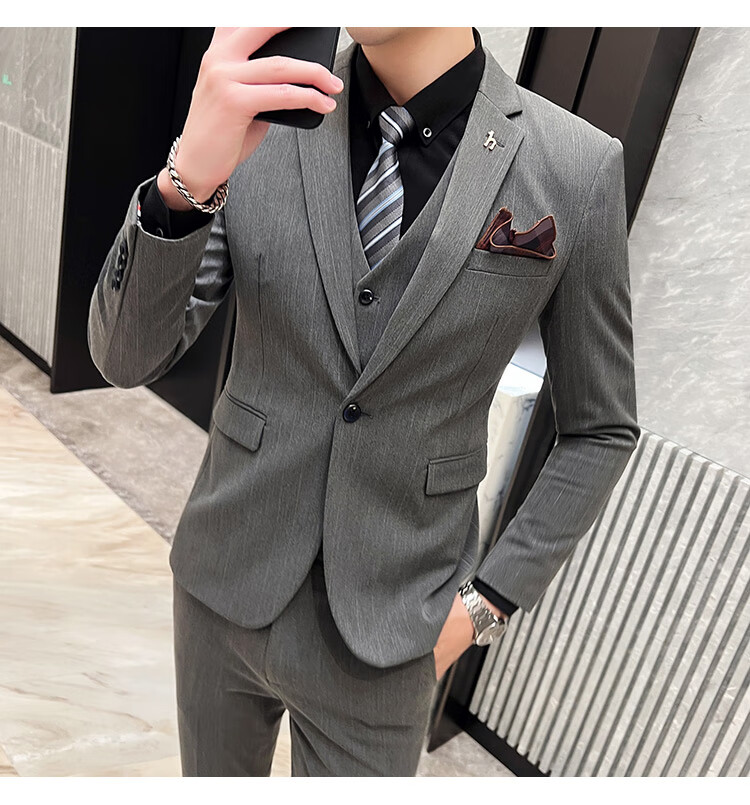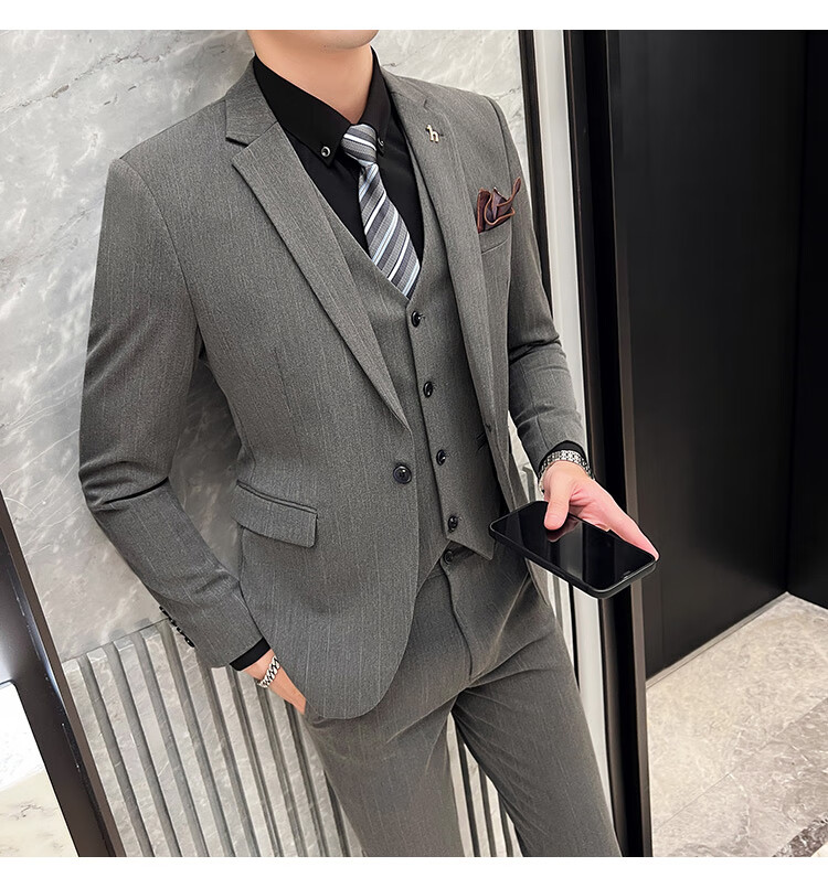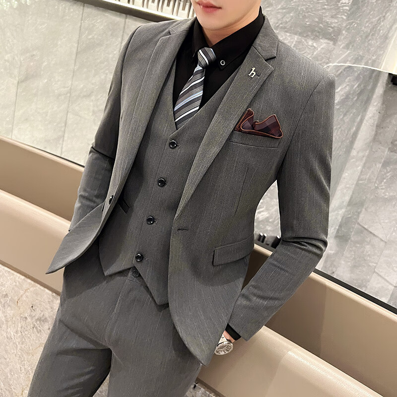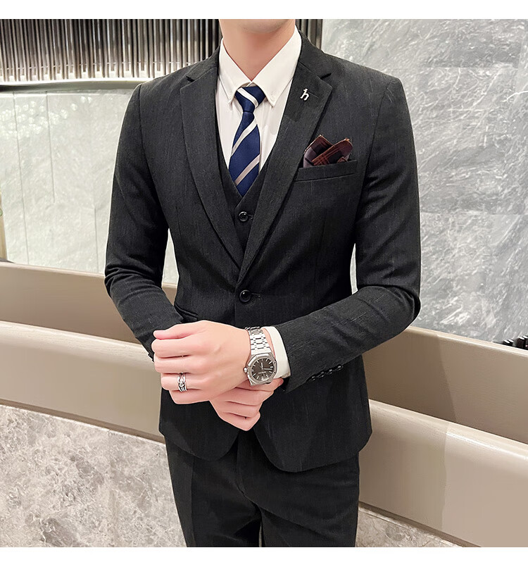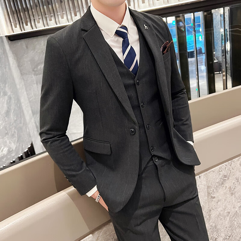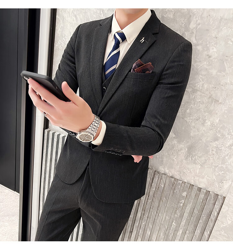 Hongdou men's suit suit 2025 autumn new wedding dress fashionable business professional suit three-piece suit for men dark gray single suit M