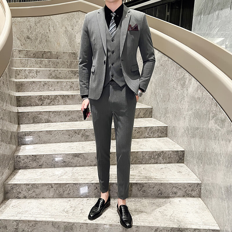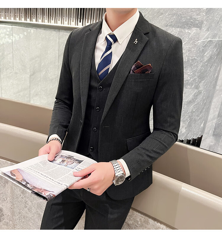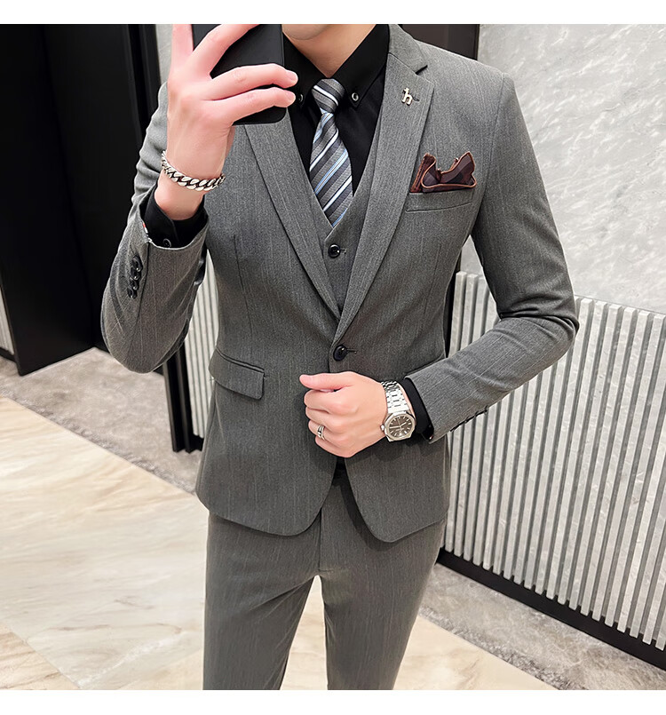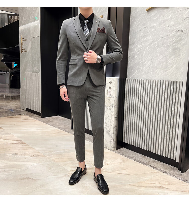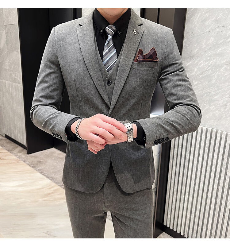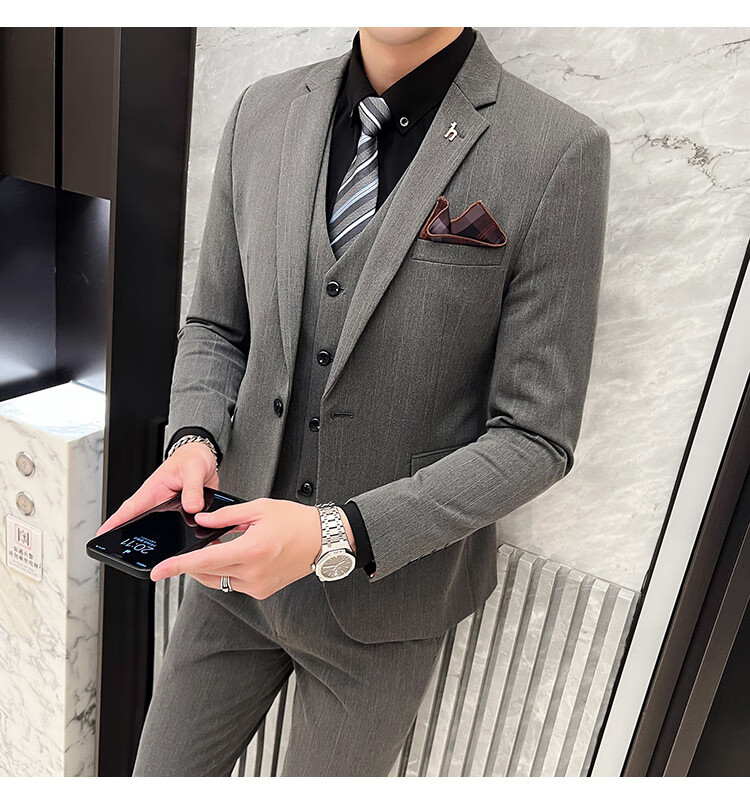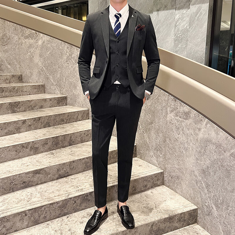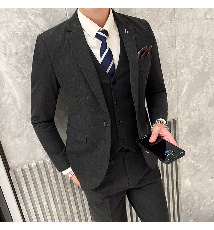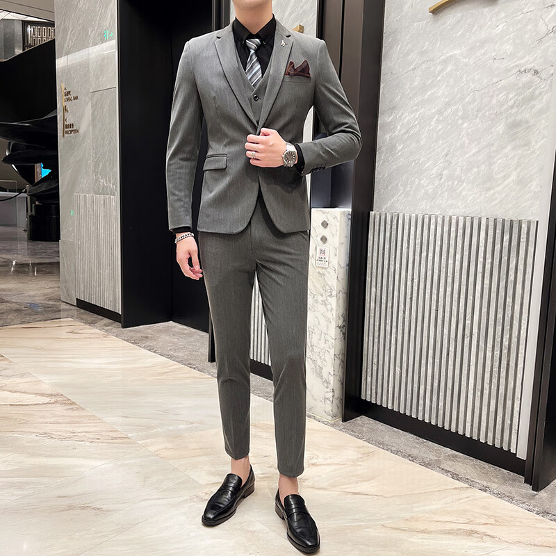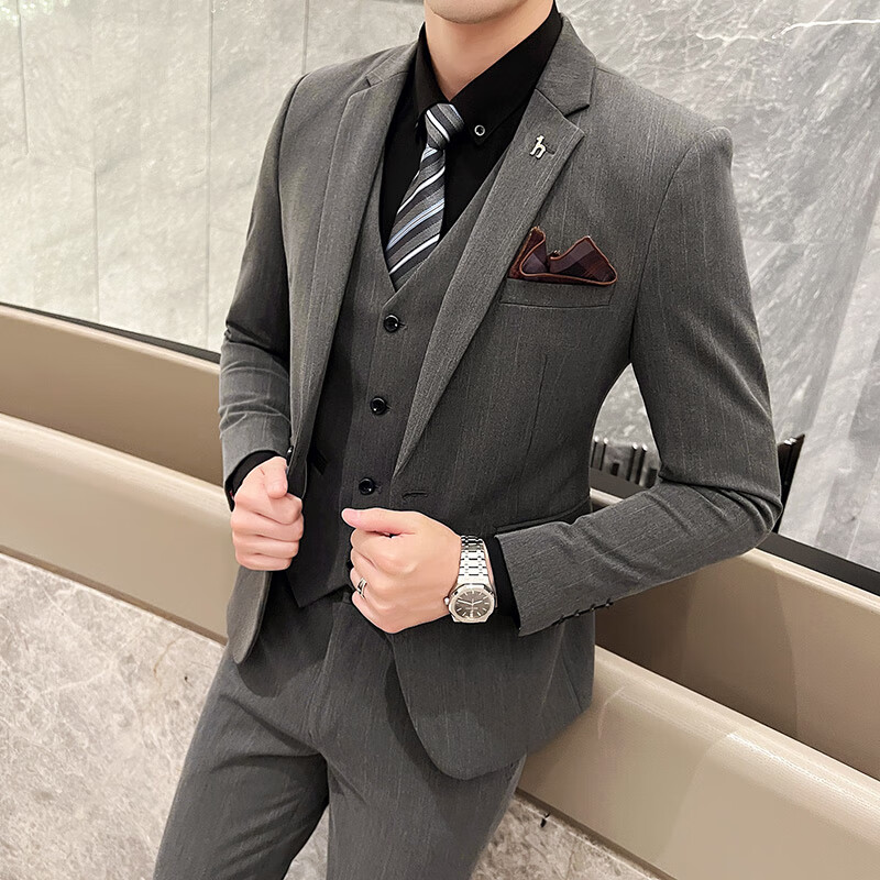 Hongdou men's suit suit 2025 autumn new wedding dress fashionable business professional suit three-piece suit for men dark gray single suit M
