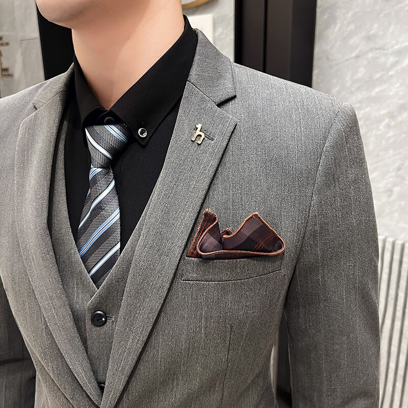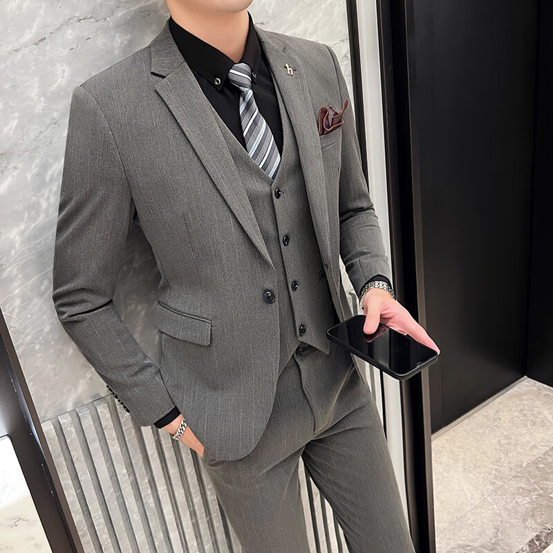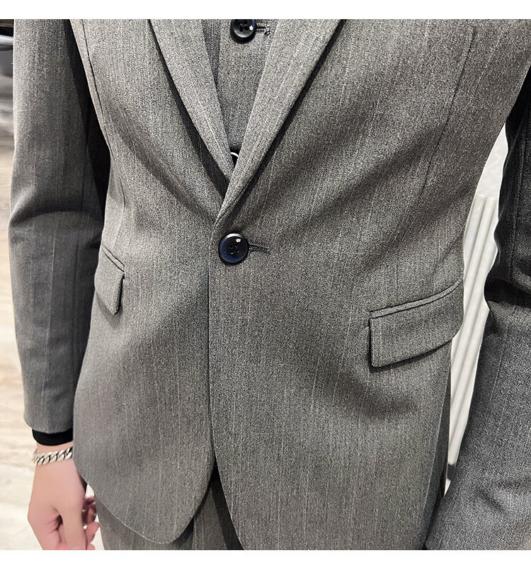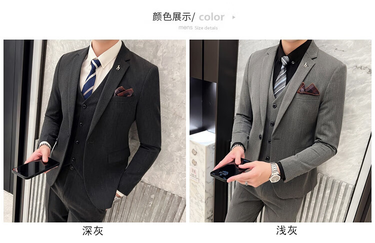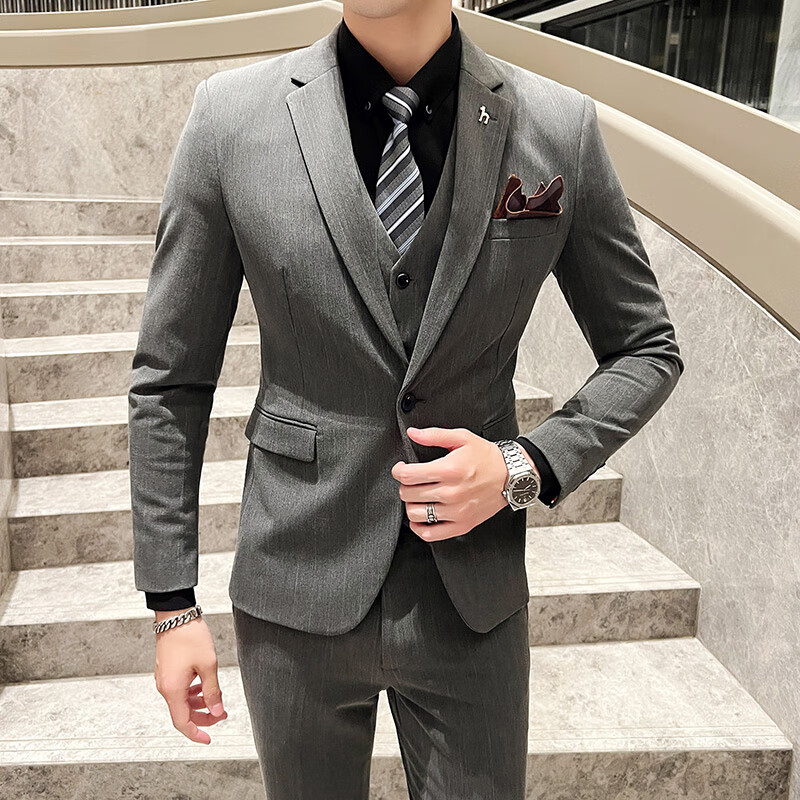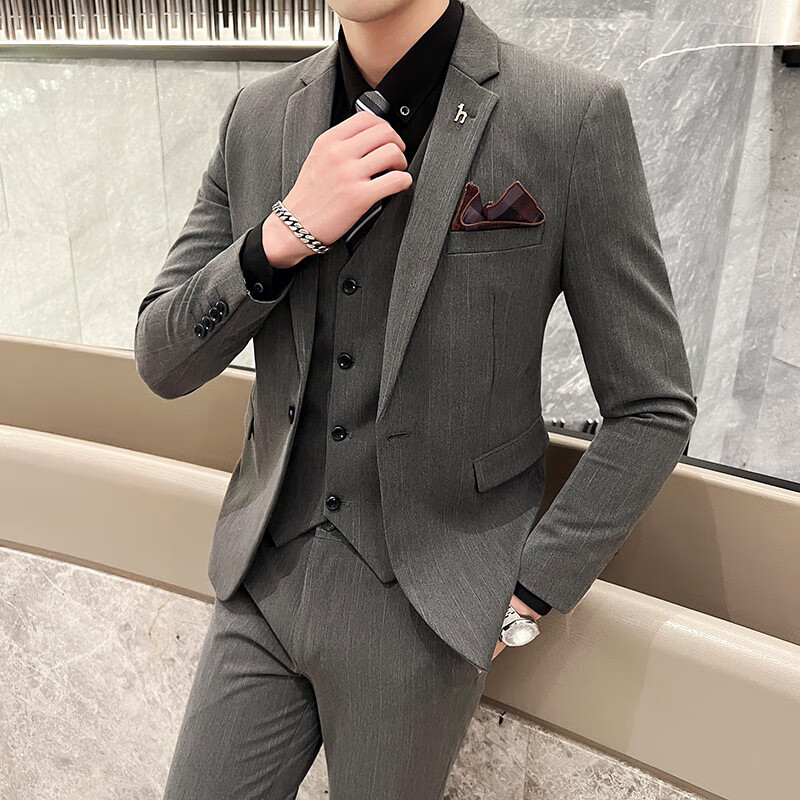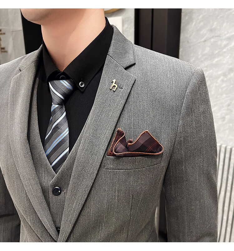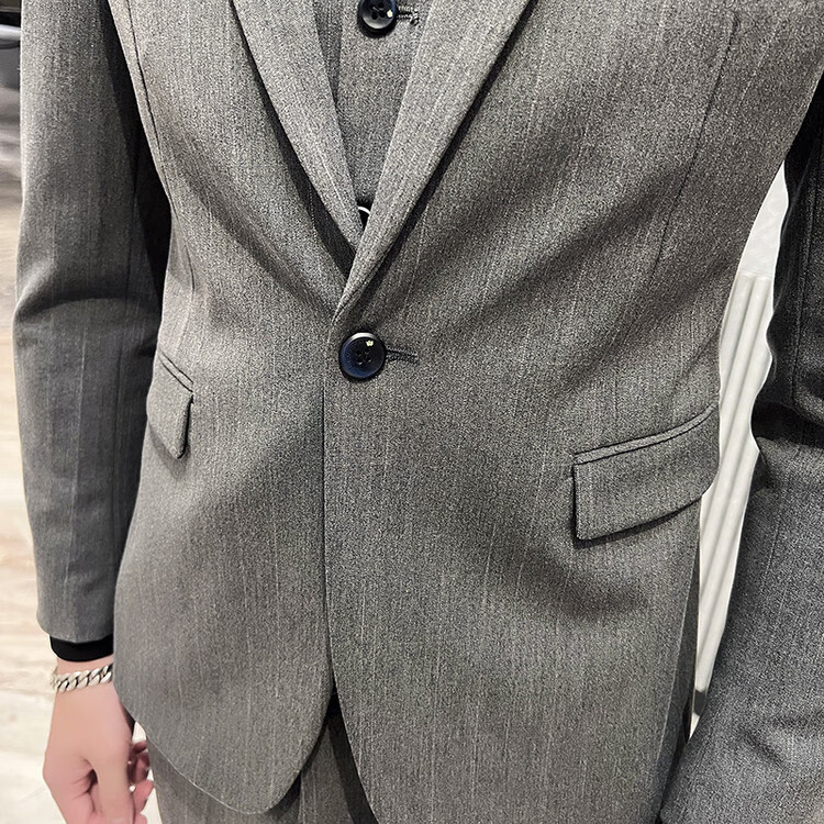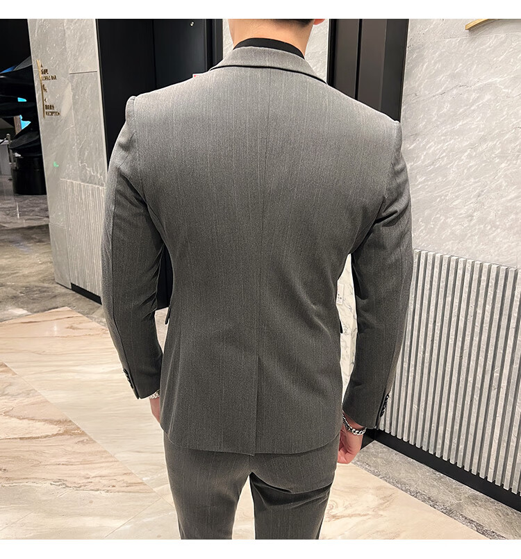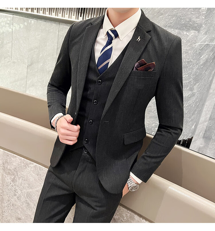 Hongdou men's suit suit 2025 autumn new wedding dress fashionable business professional suit three-piece suit for men dark gray single suit M