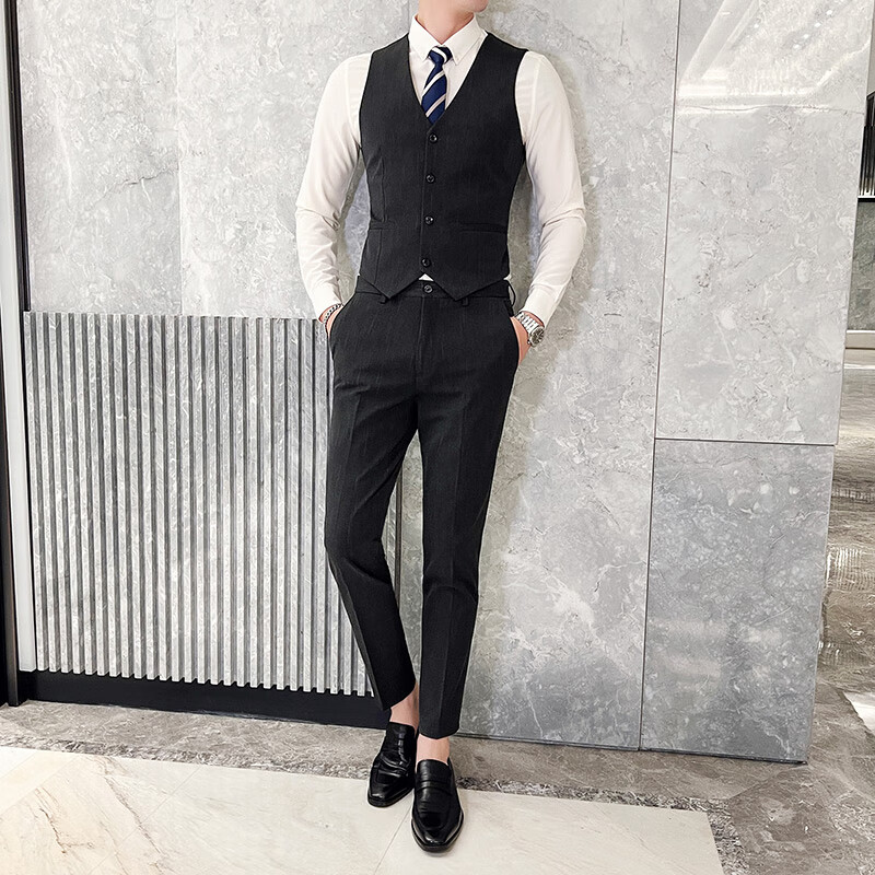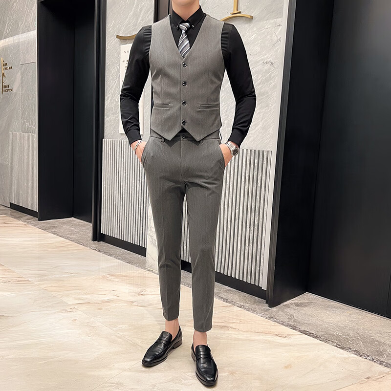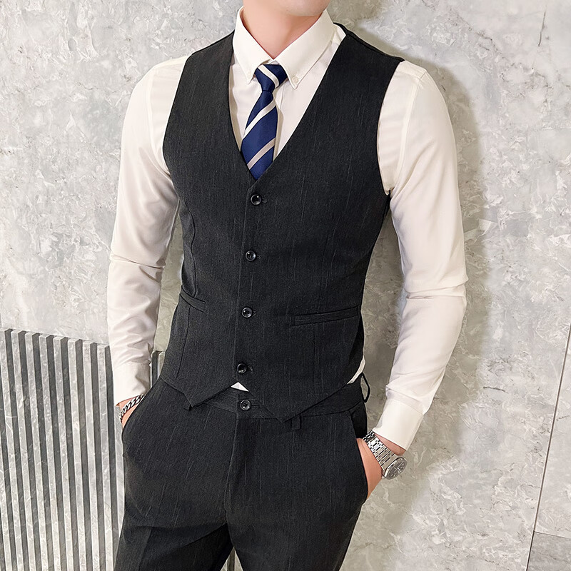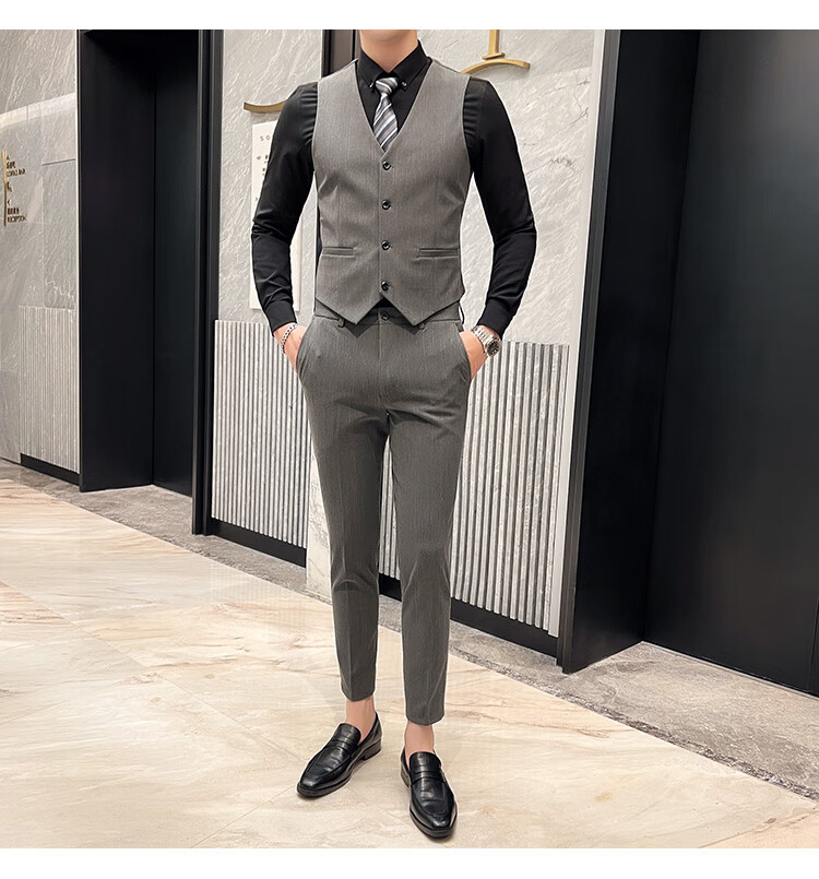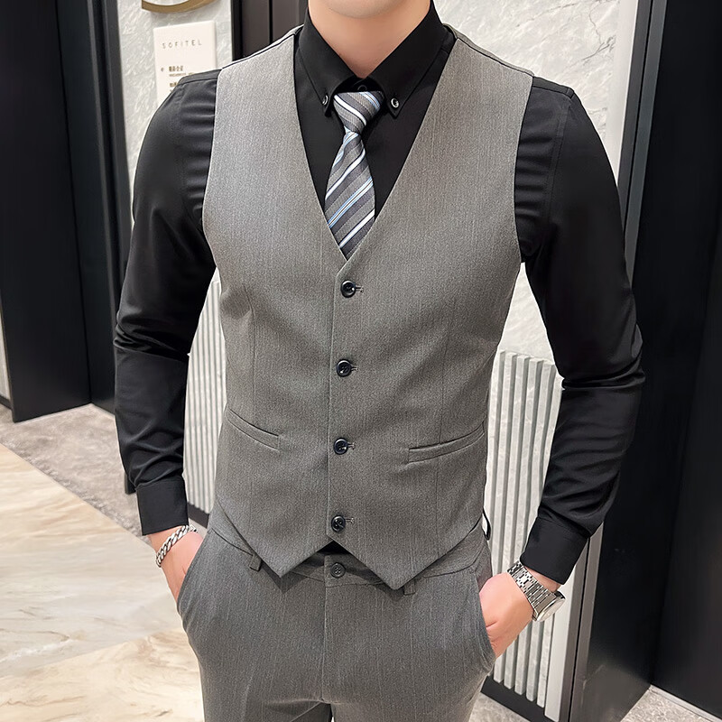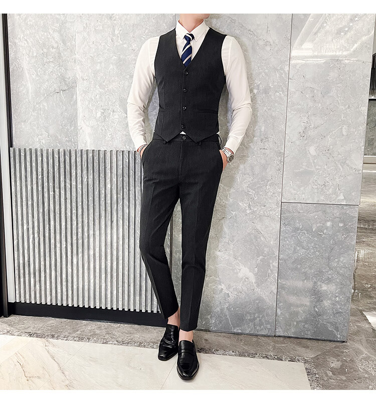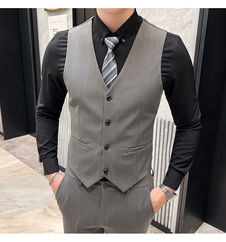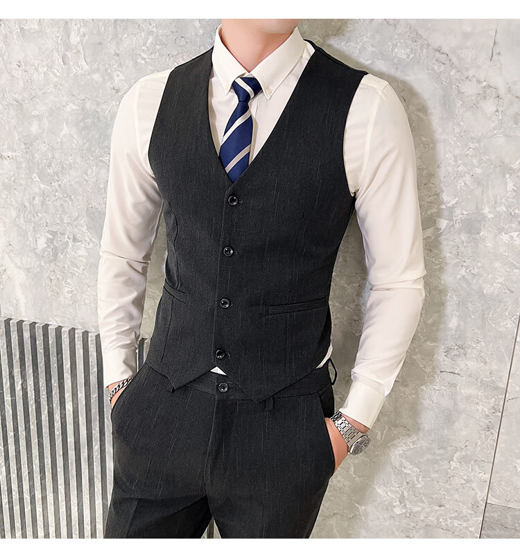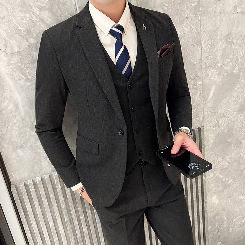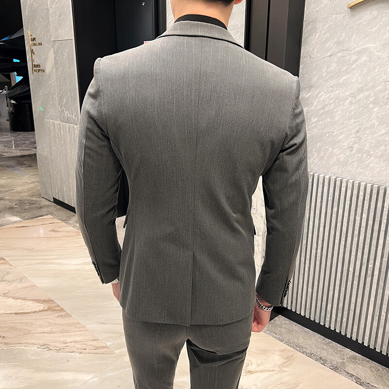 Hongdou men's suit suit 2025 autumn new wedding dress fashionable business professional suit three-piece suit for men dark gray single suit M