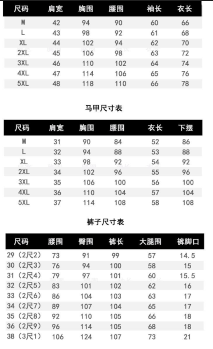 China (cm) 160-165/84-86 165-170 / 88-90 167-172 / 92-96 168-173 / 98-102 170-176 / 106-110