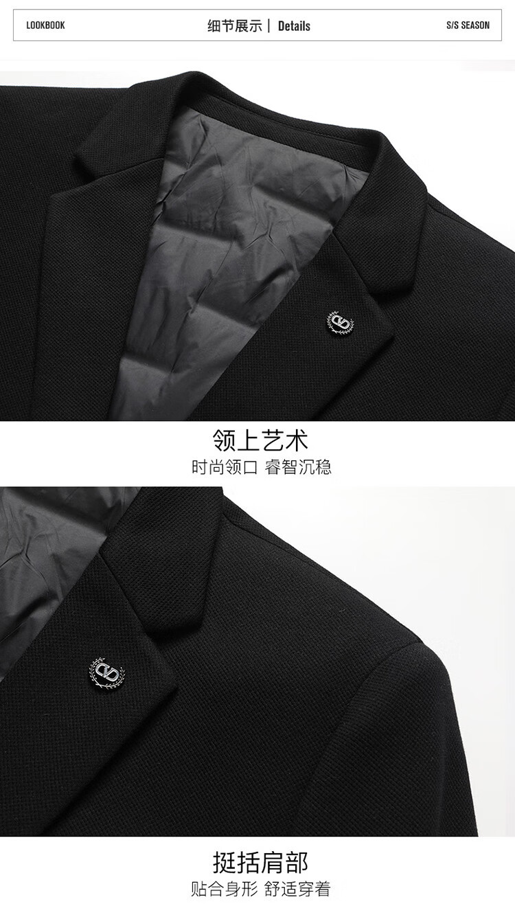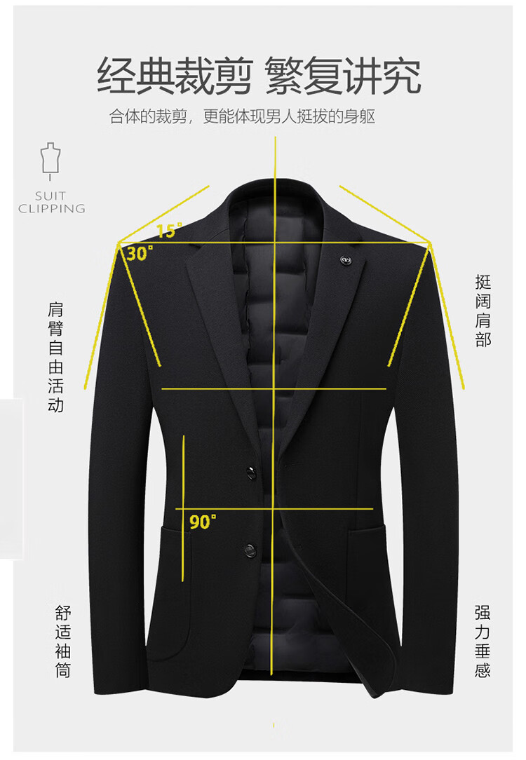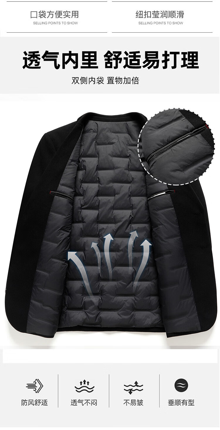 Hongdou Autumn and Winter Business Casual Wool Suit Down Suit Warm Down Jacket Thickened Jacket 2025 New Black M 170