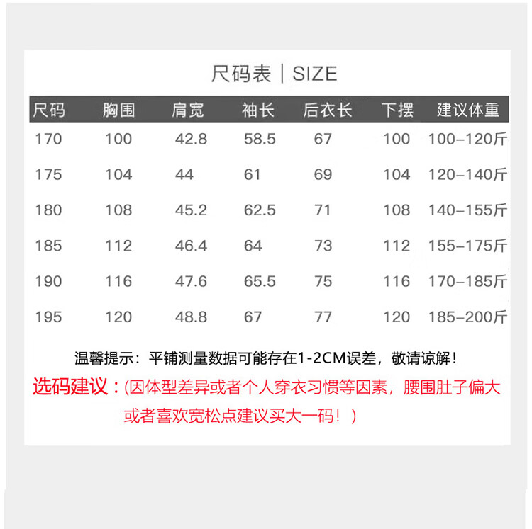 China (cm) 165 / 88-90 170 / 96-98 175 / 108-110 180 / 118-122 185 / 126-130