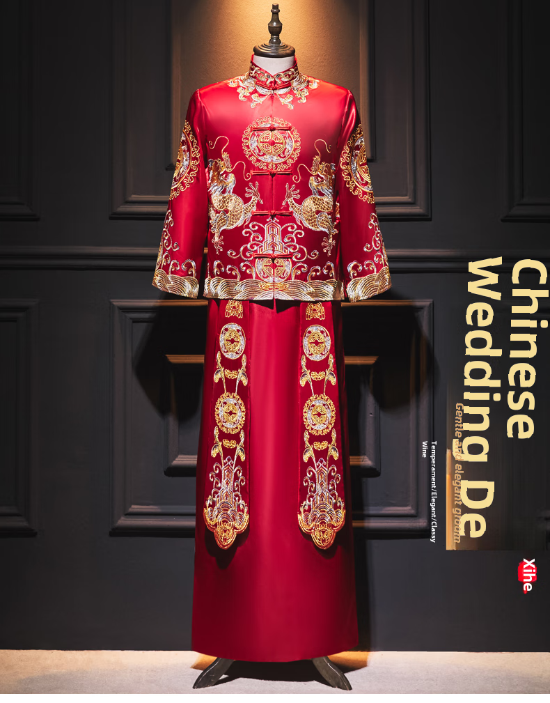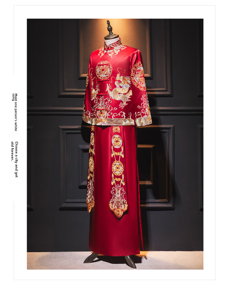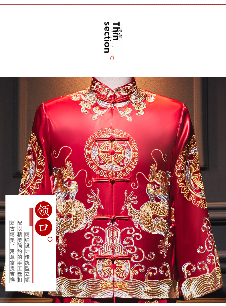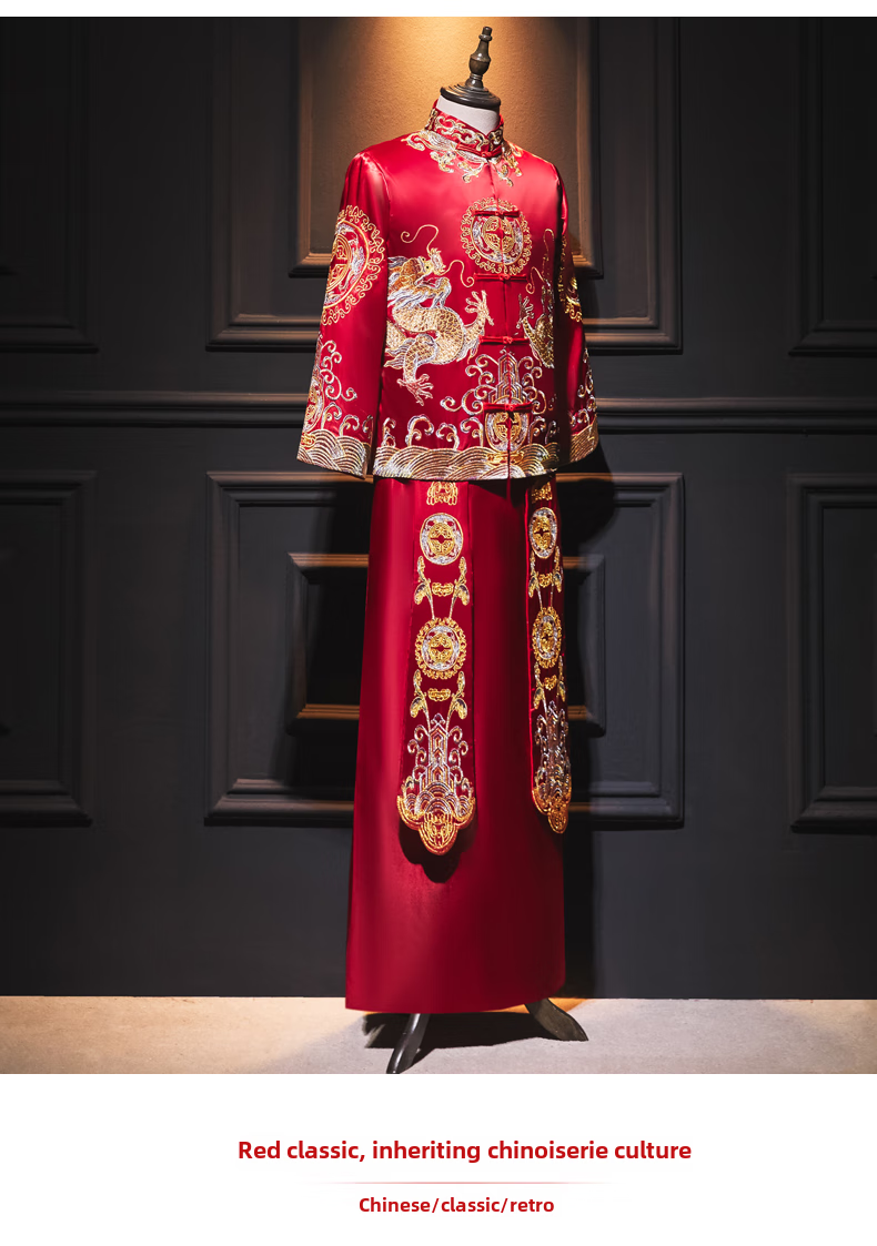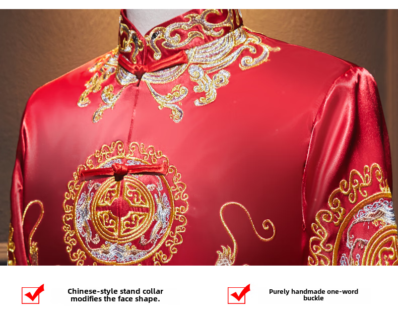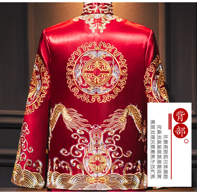 ROAR UTHAUG men's embroidered kimono 2025 new Chinese style groom's suit wedding dress slim dragon and phoenix dress men's embroidered kimono large size red 2103 S