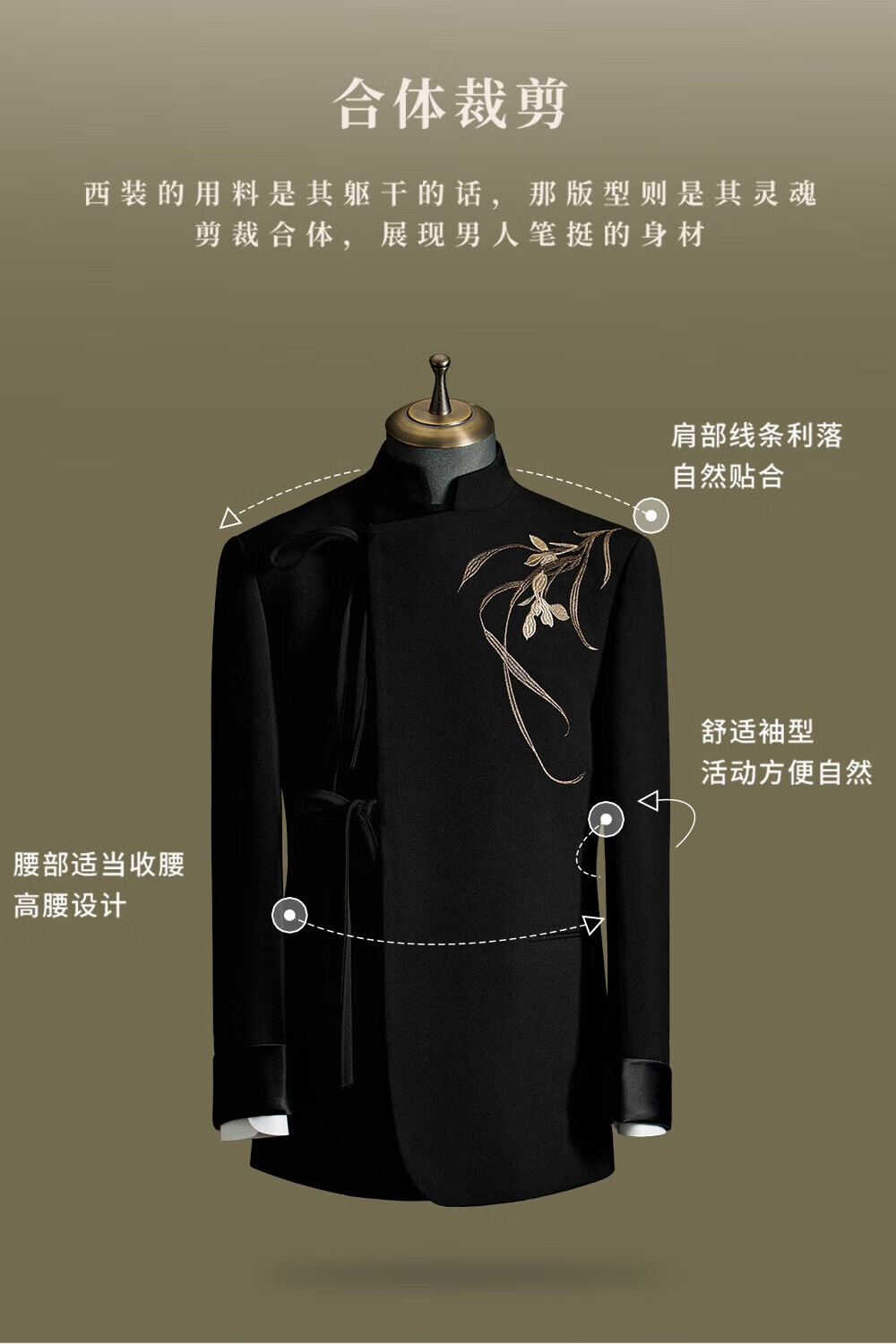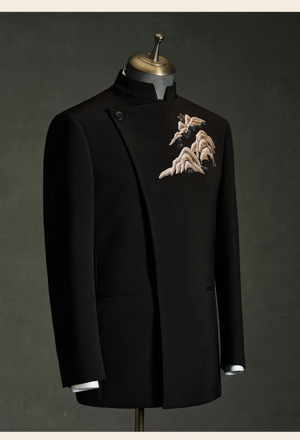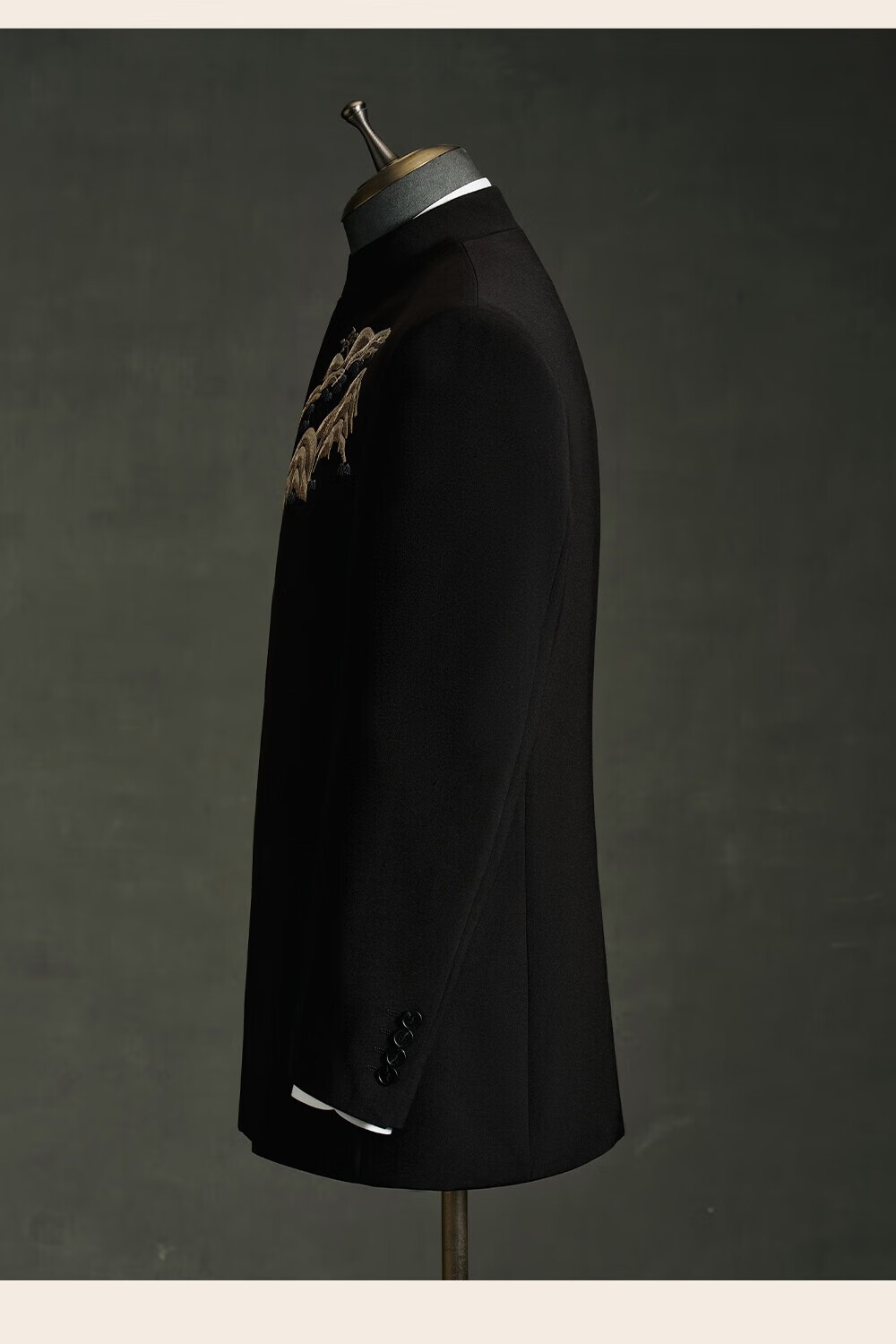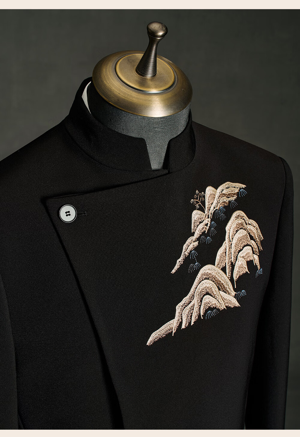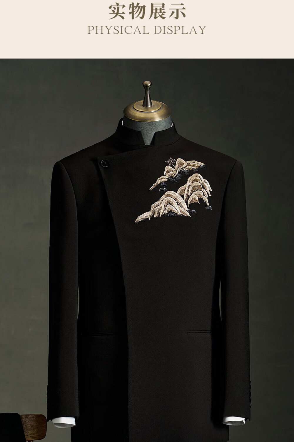 Xiuta Orchid Embroidery New Chinese Style Black Mao Suit Groom Wedding Engagement Chinese Style Gentleman Suit Formal Orchid Embroidery Top + Pants Two-piece Set XS 46A