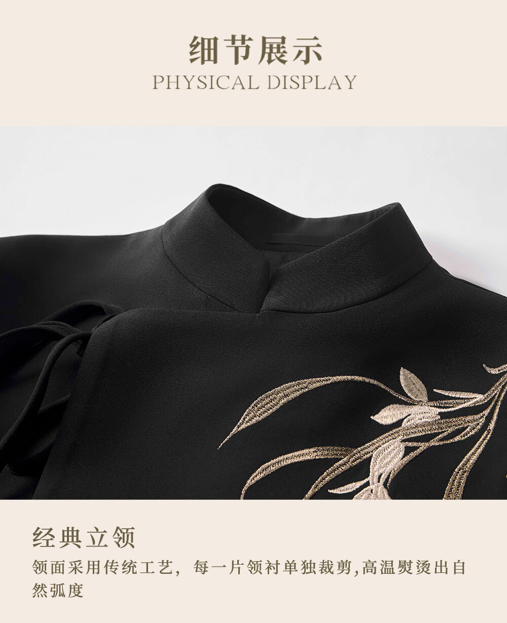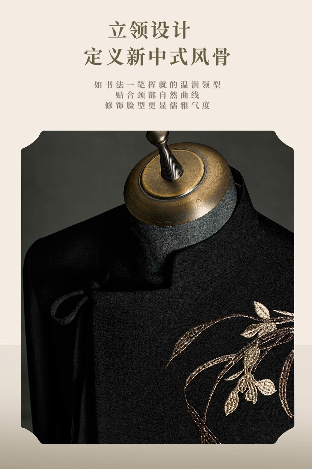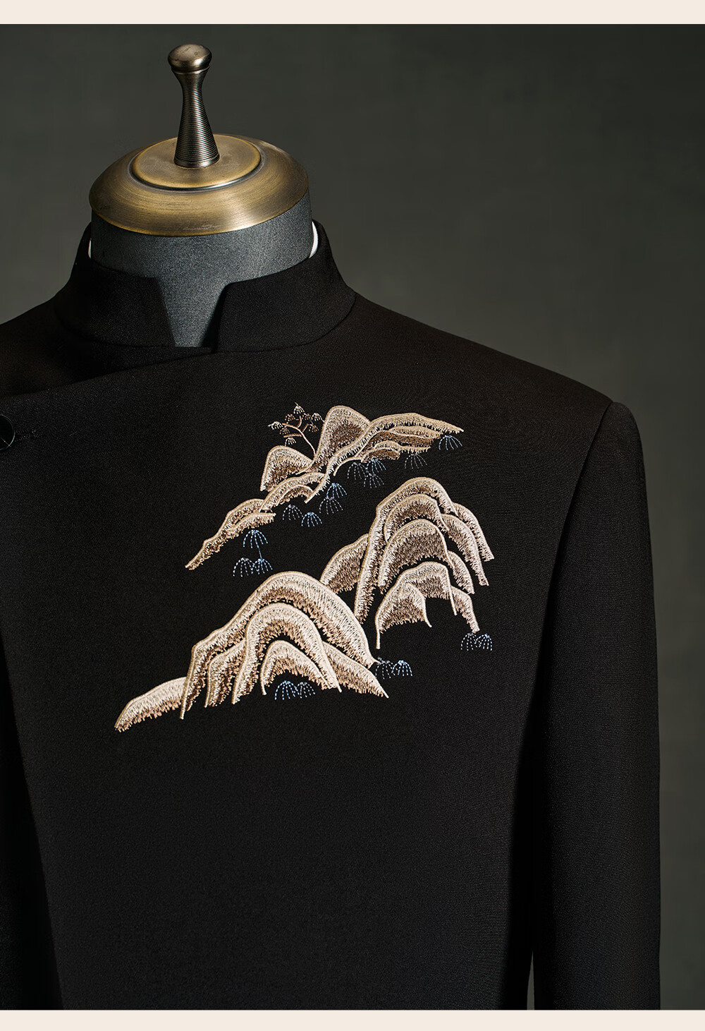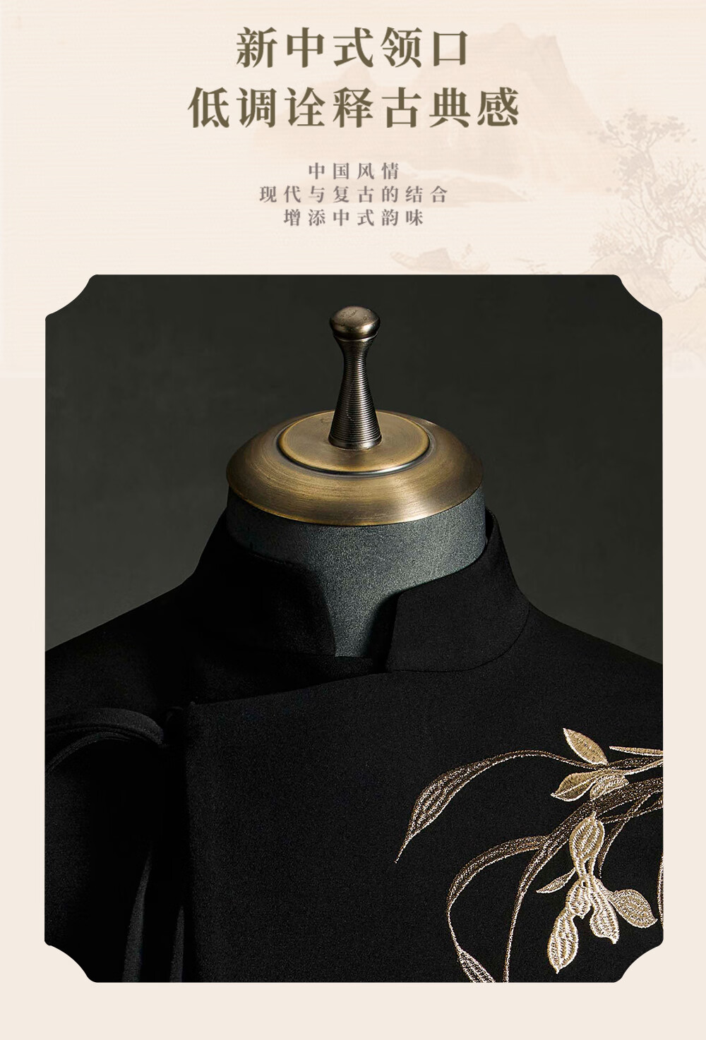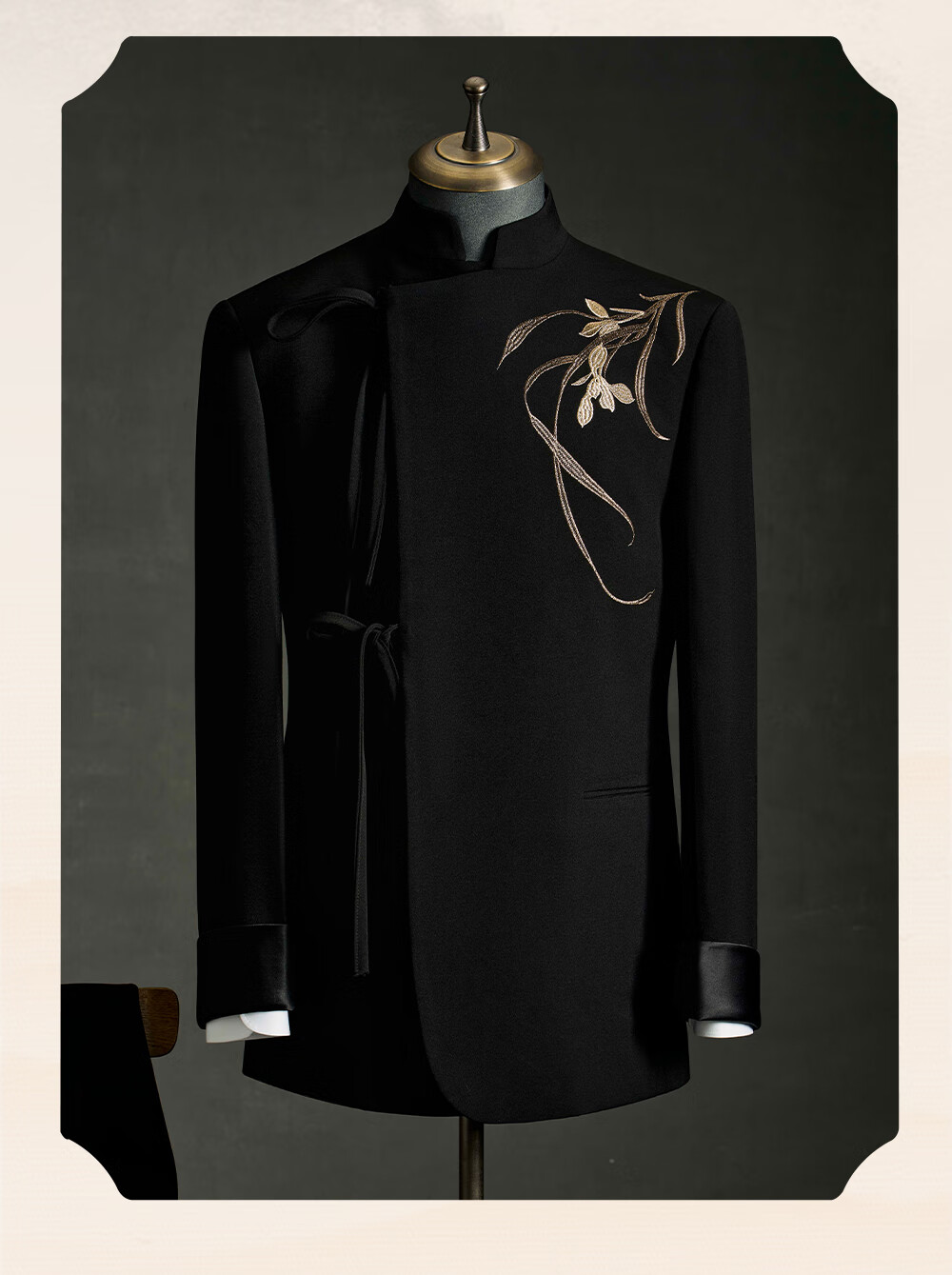 Xiuta Orchid Embroidery New Chinese Style Black Mao Suit Groom Wedding Engagement Chinese Style Gentleman Suit Formal Orchid Embroidery Top + Pants Two-piece Set XS 46A