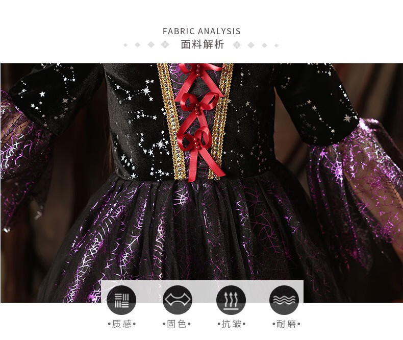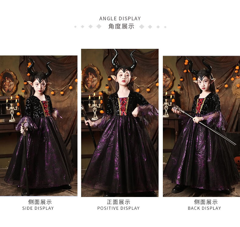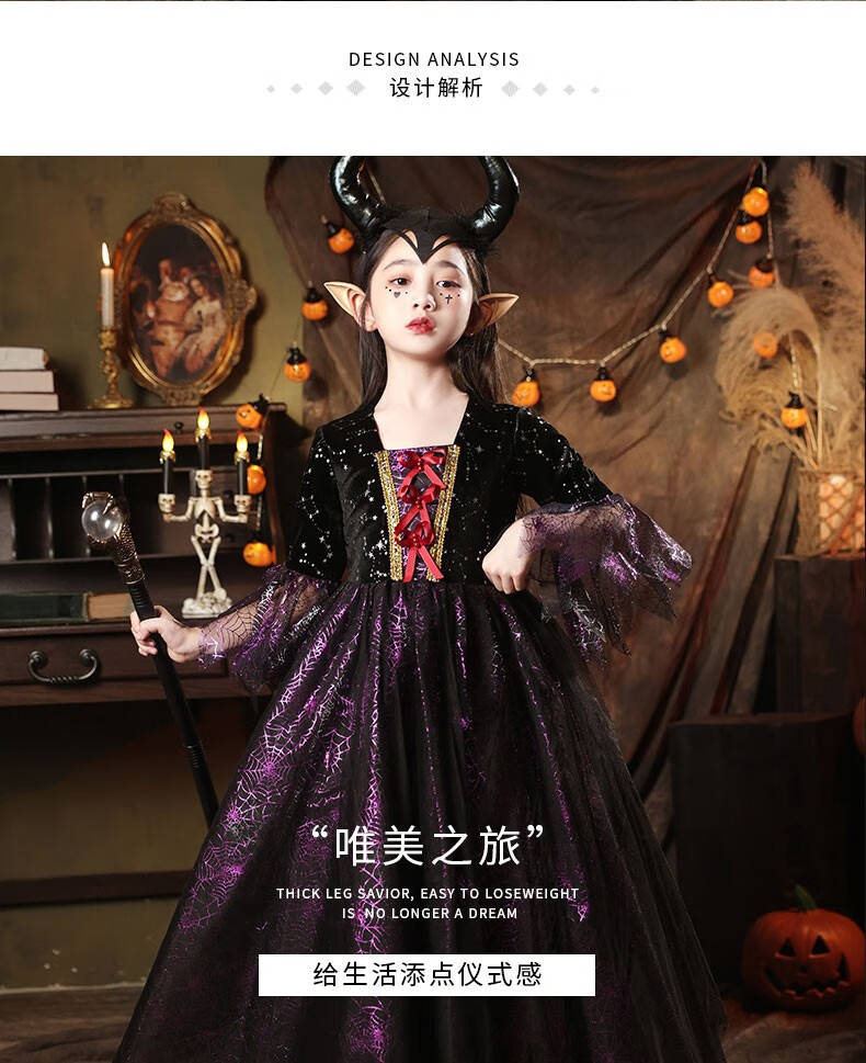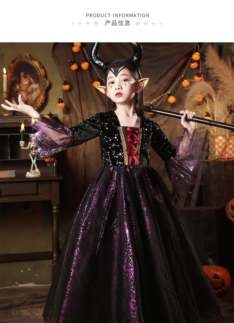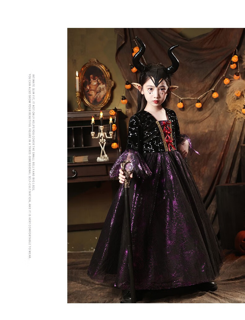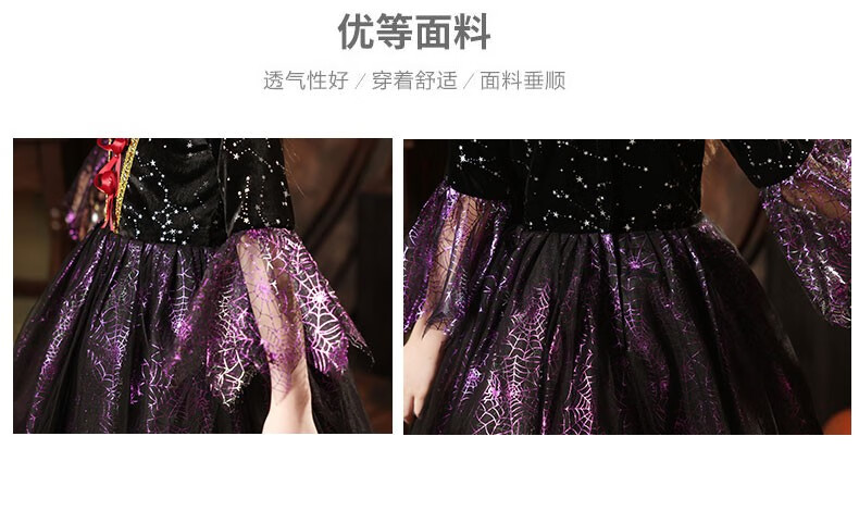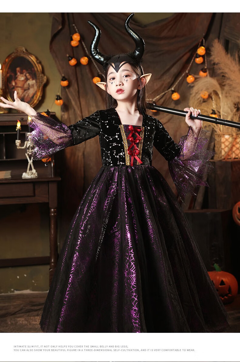 Xiaokayinon Halloween children's costume girl cosplay witch dress up girl little devil masquerade performance dress Halloween black and purple costume + hat + shawl 150