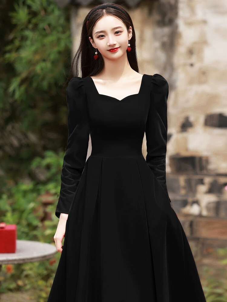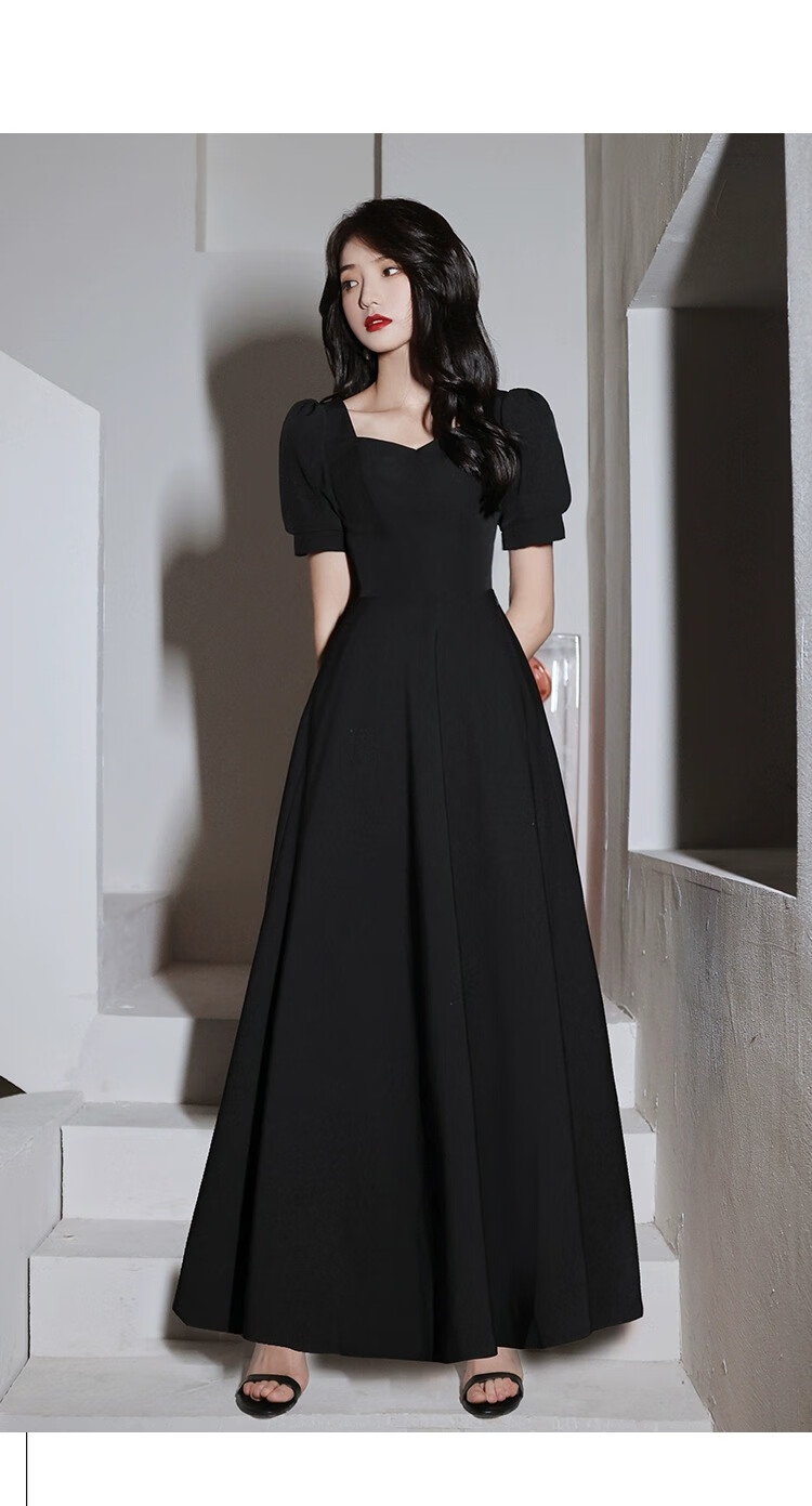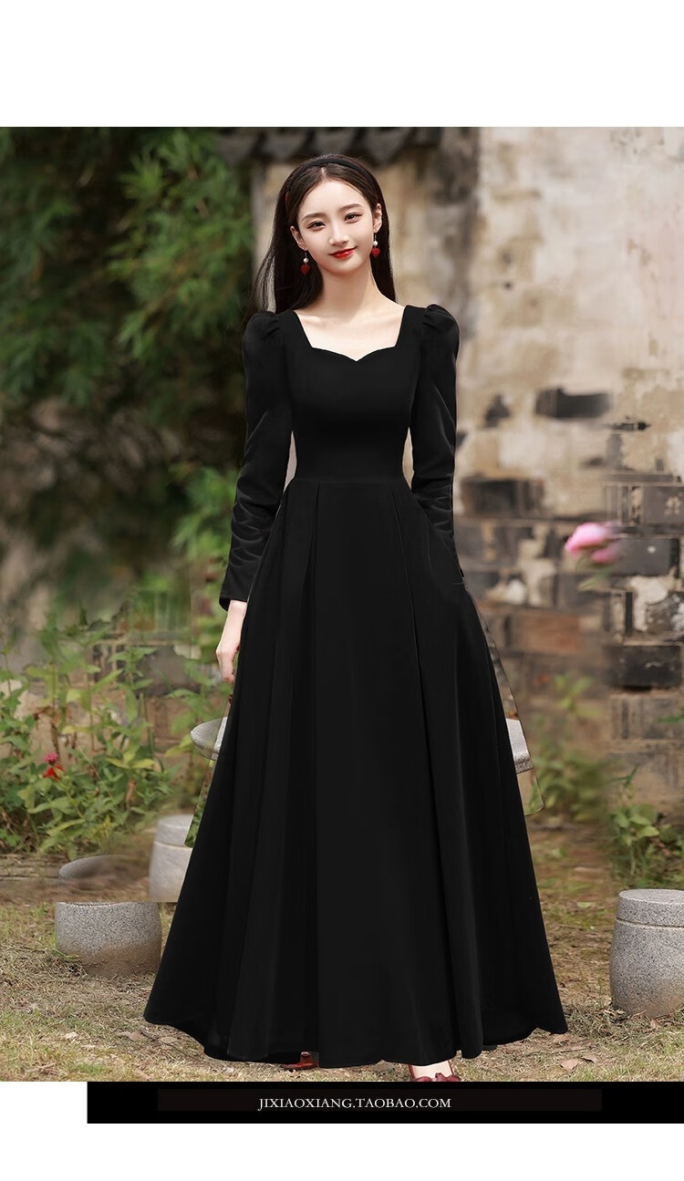Li Baixin black evening dress annual meeting velvet light luxury niche high-end sense vocal music art test birthday banquet dress host black velvet long long sleeves M
