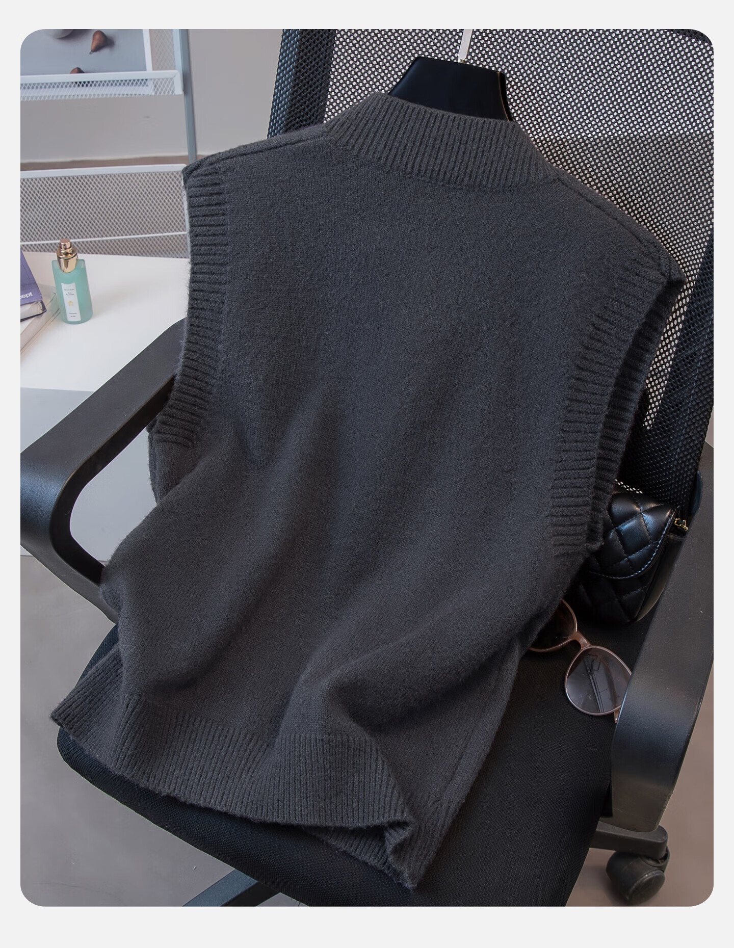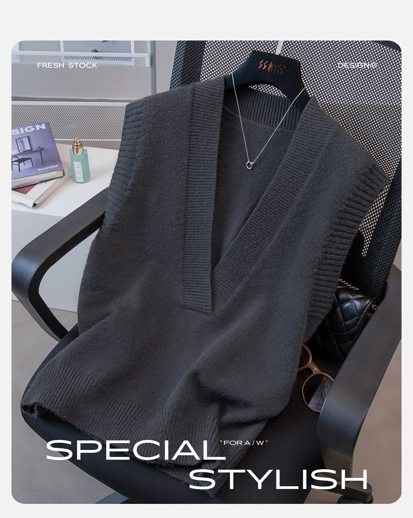 Sibaishe solid color V-neck stacked vest for women 2025 autumn new fashion simple knitted pullover vest