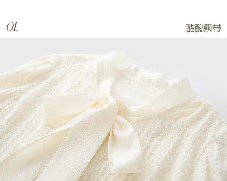 Sancai 2025 new winter style bow ribbon V-neck shirt loose lace shirt lantern sleeves stacked M
