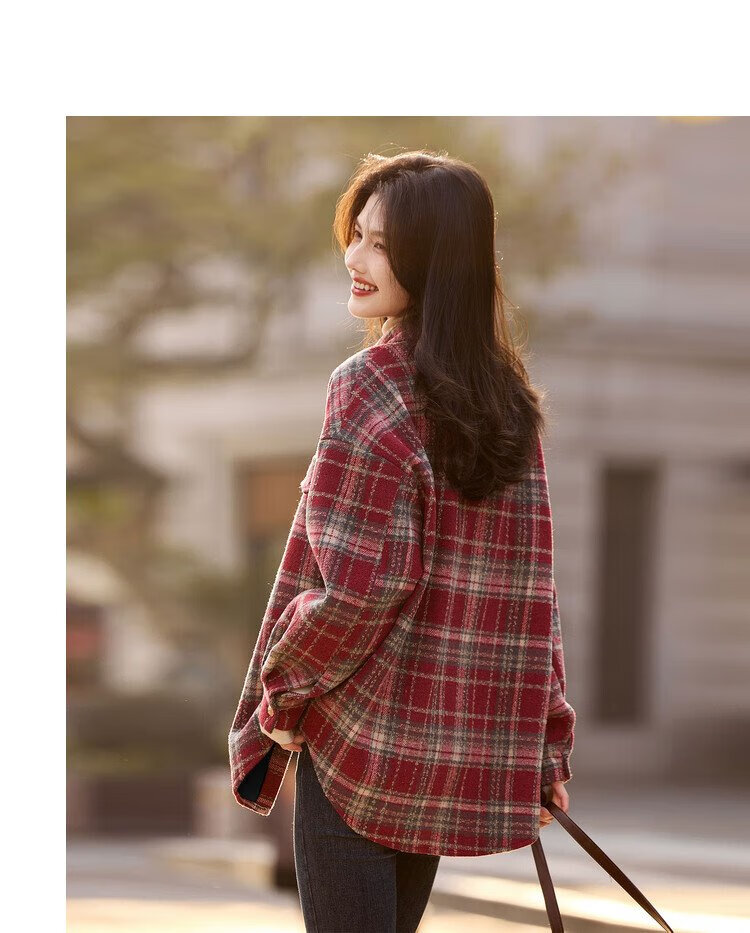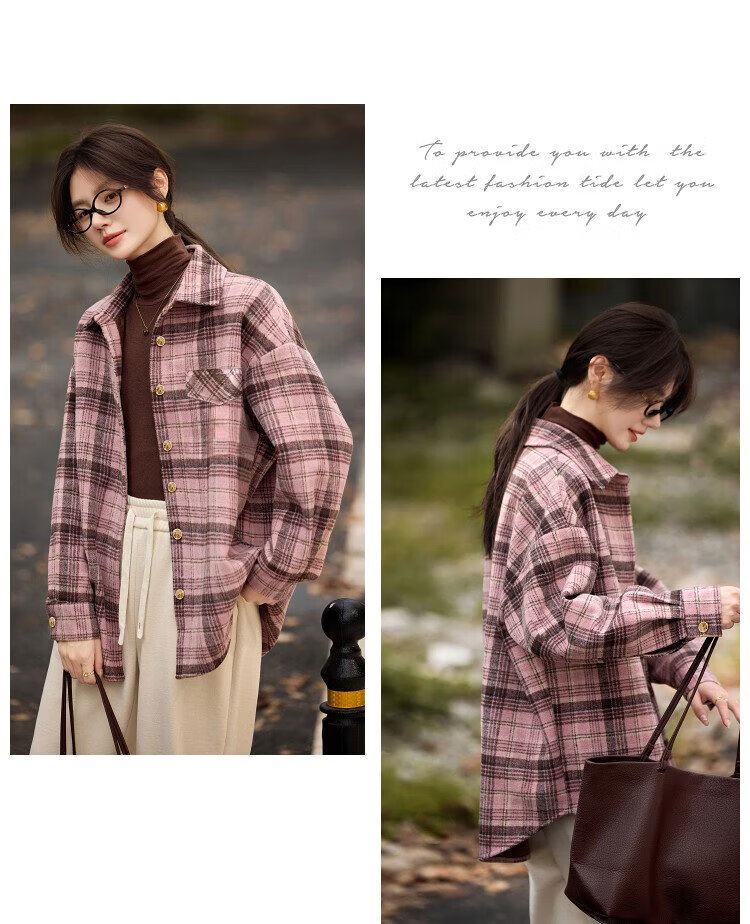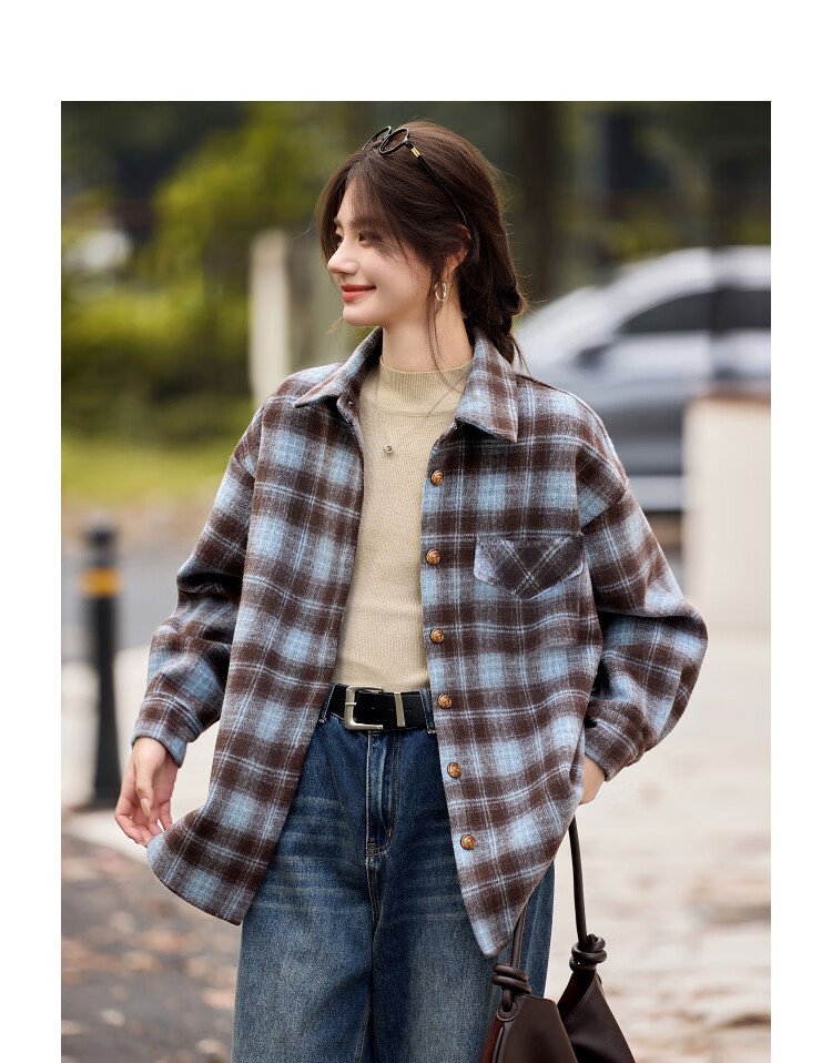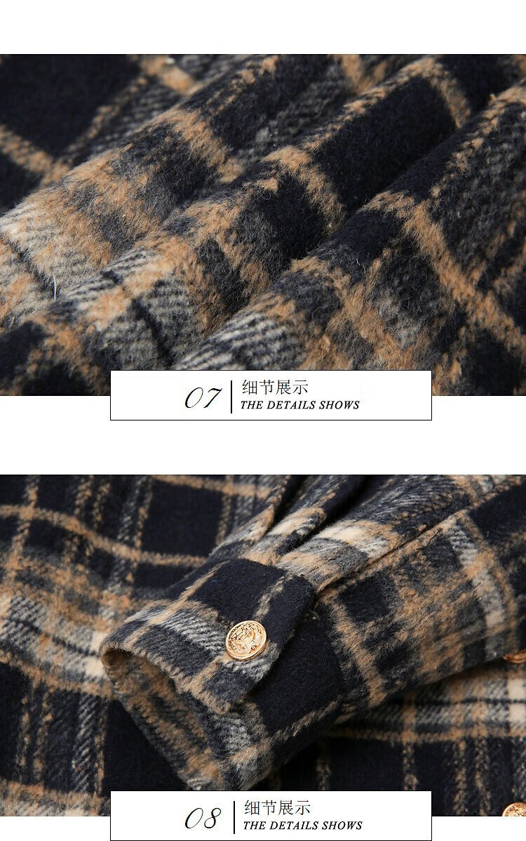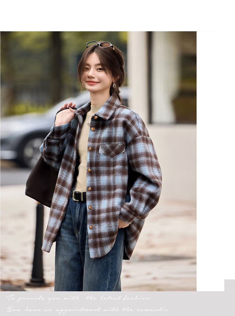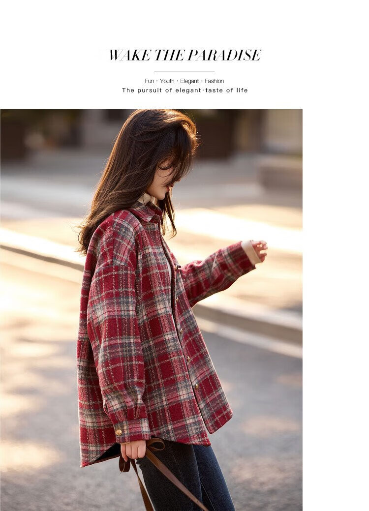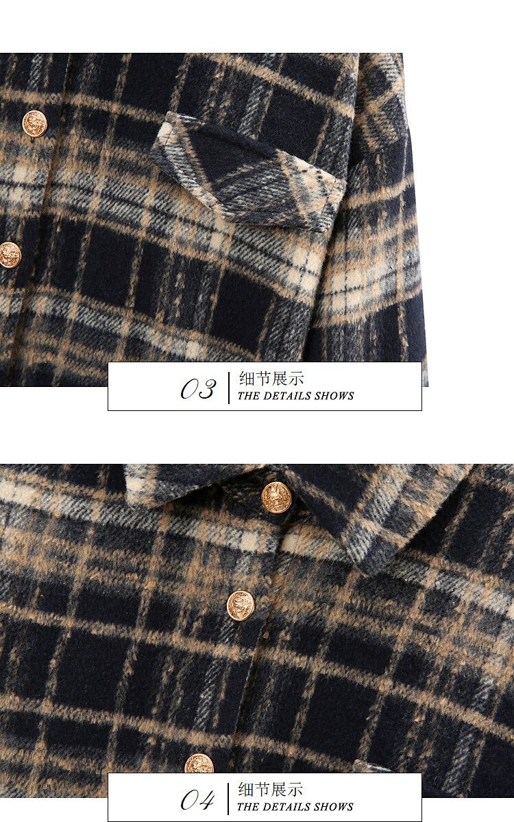 Awakening Paradise Winter Fashion Temperament Versatile Velvet Single-Breasted Thick Plaid Shirt Loose Slim Jacket Navy XL
