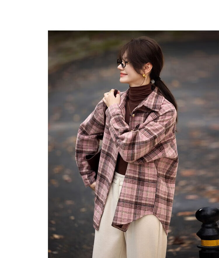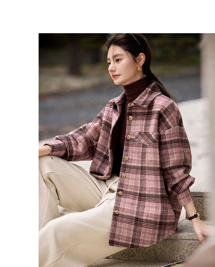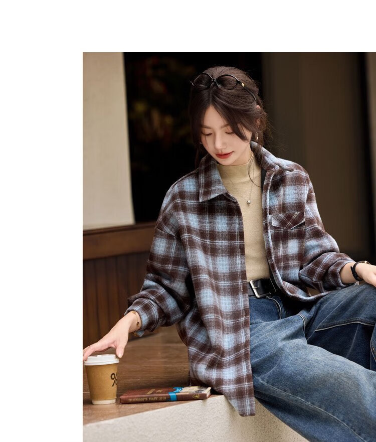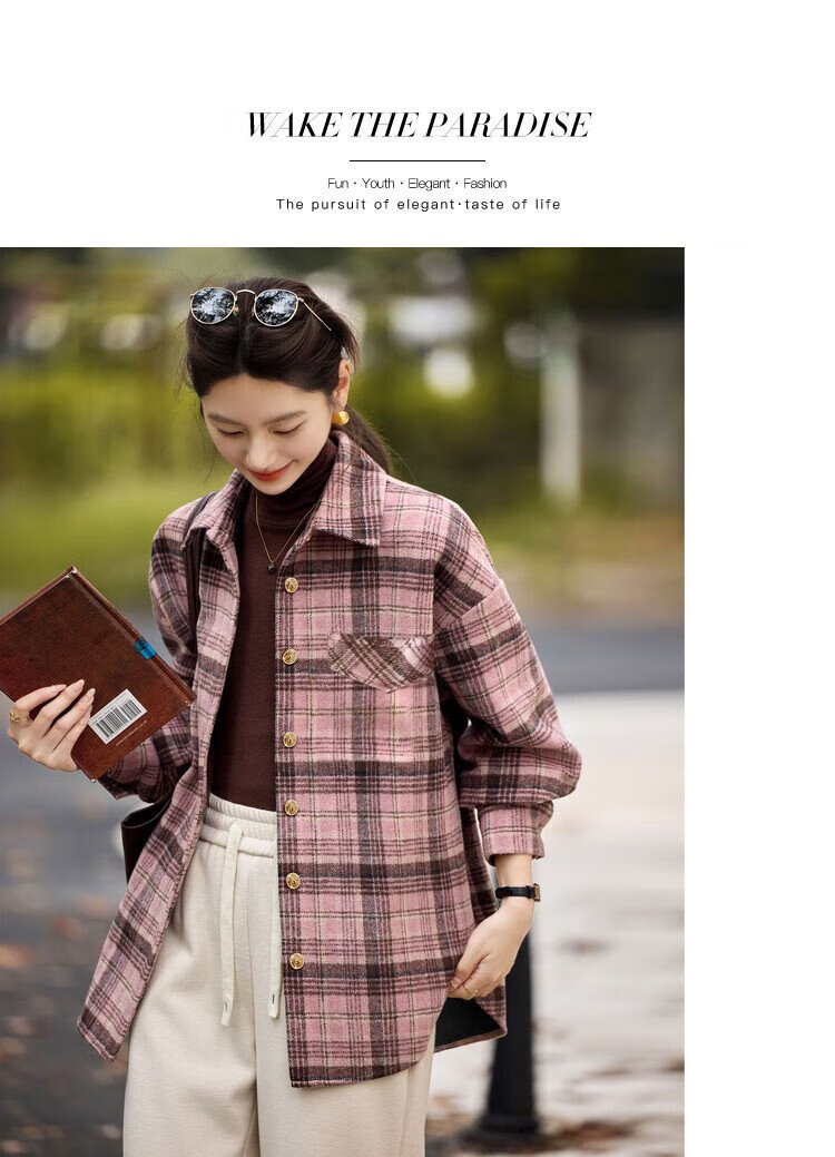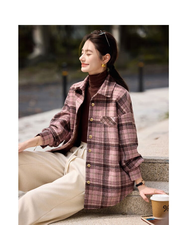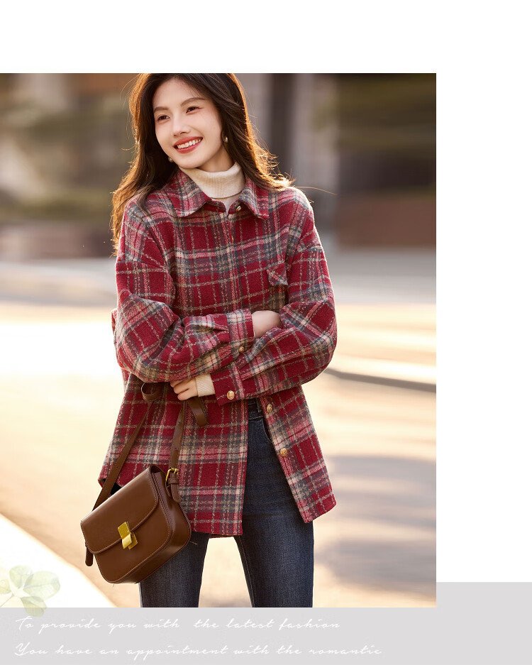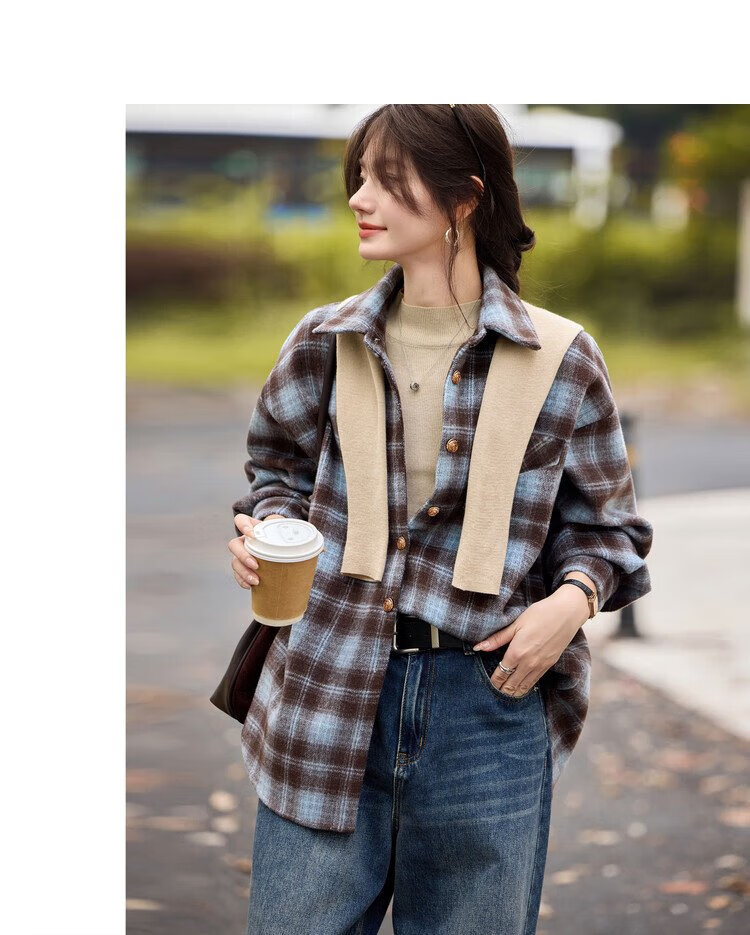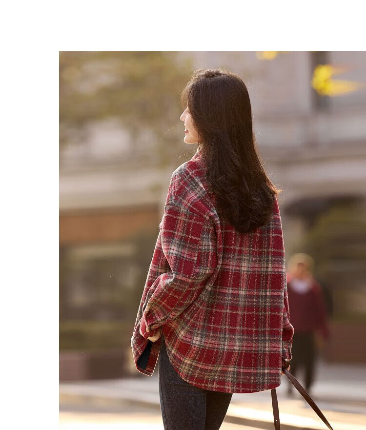 Awakening Paradise Winter Fashion Temperament Versatile Velvet Single-Breasted Thick Plaid Shirt Loose Slim Jacket Navy XL