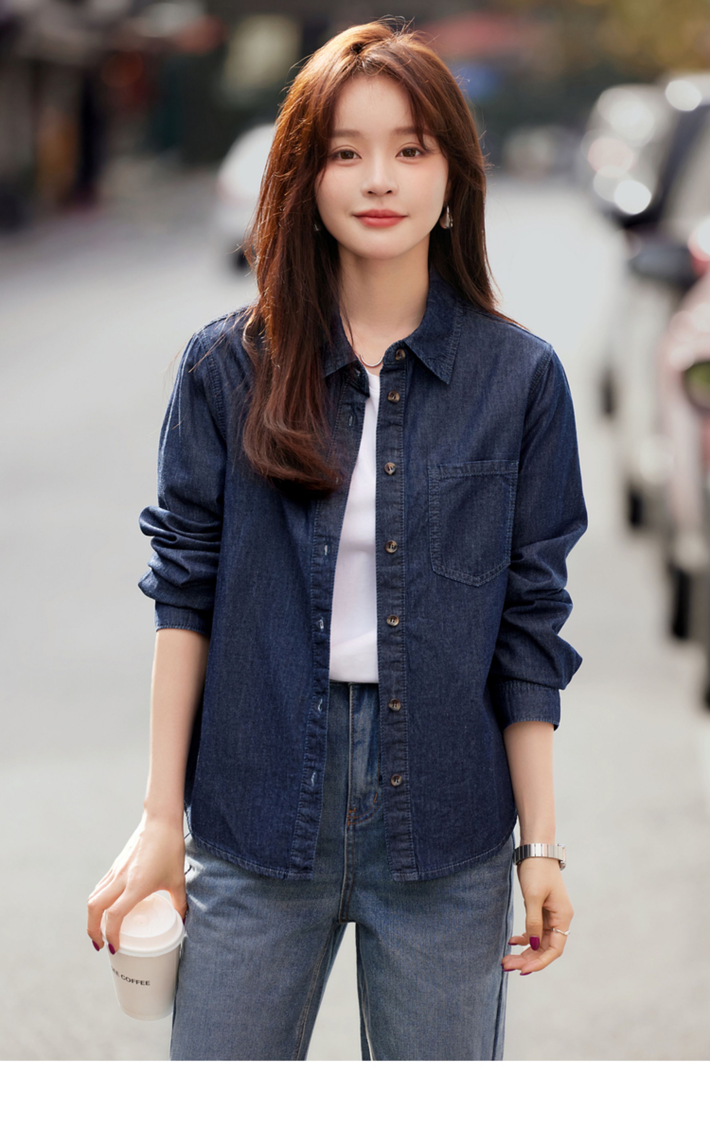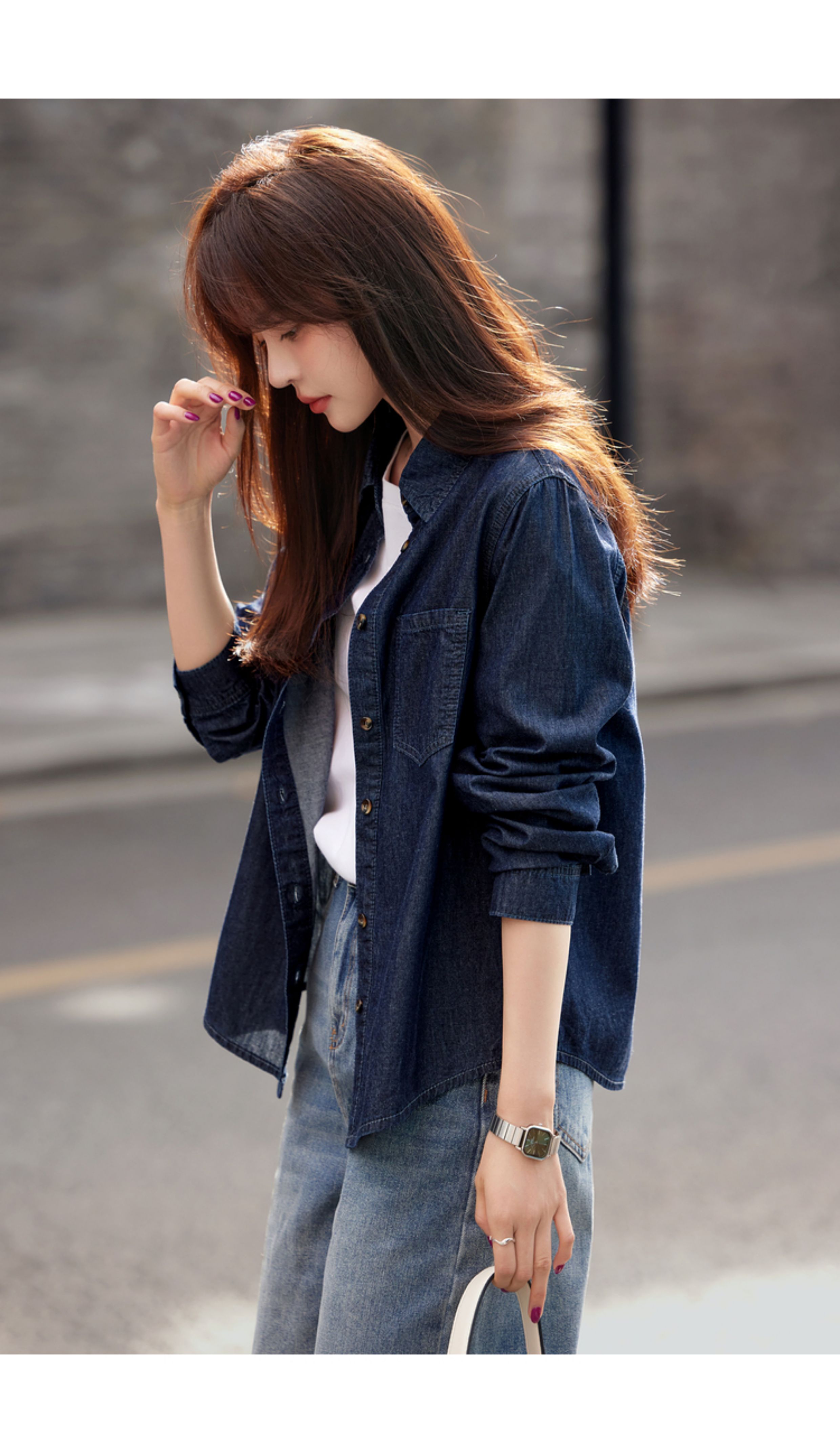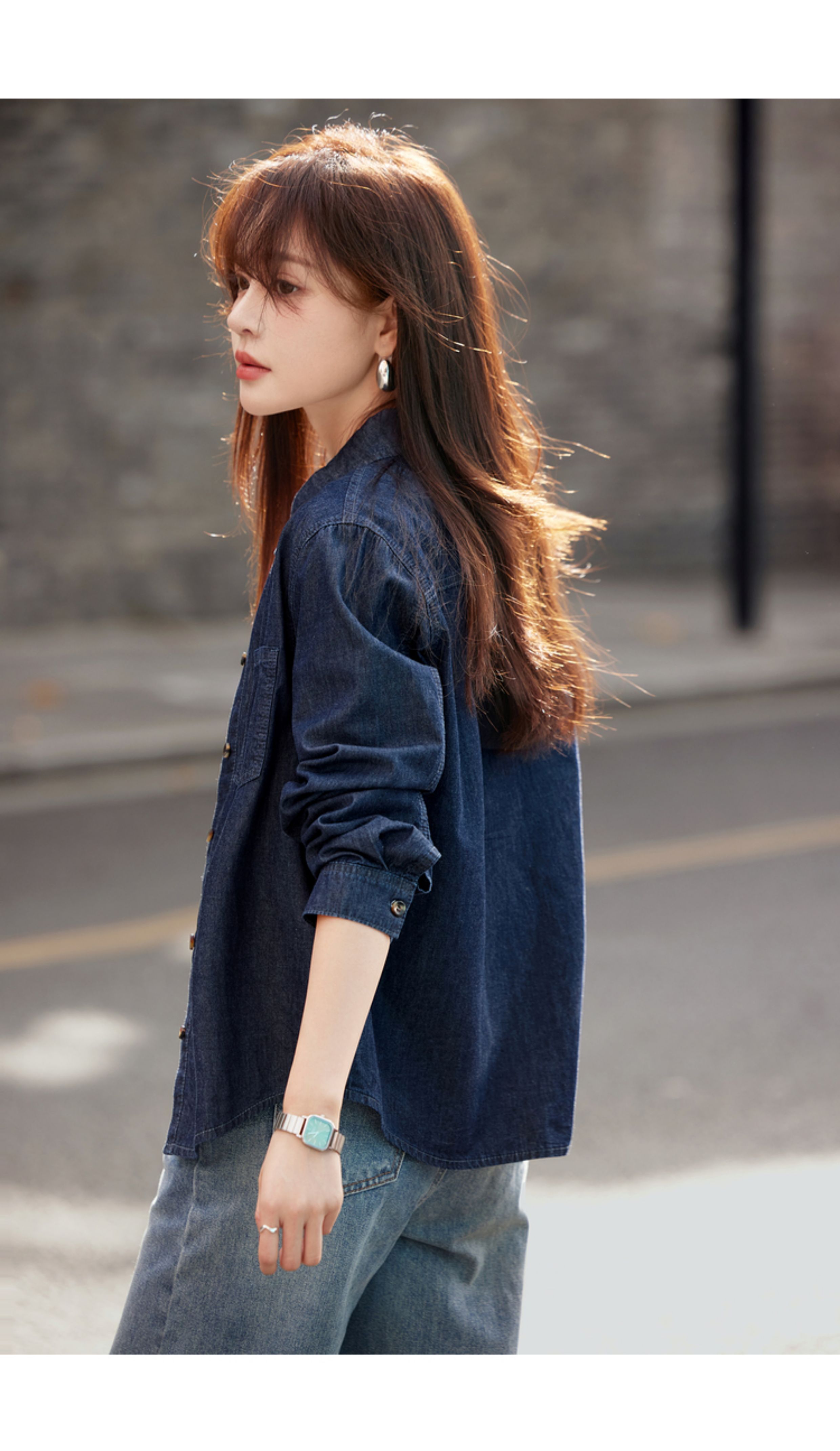 Mohan Yimei retro washed denim shirt thin jacket 2025 autumn new shirt temperament women's top