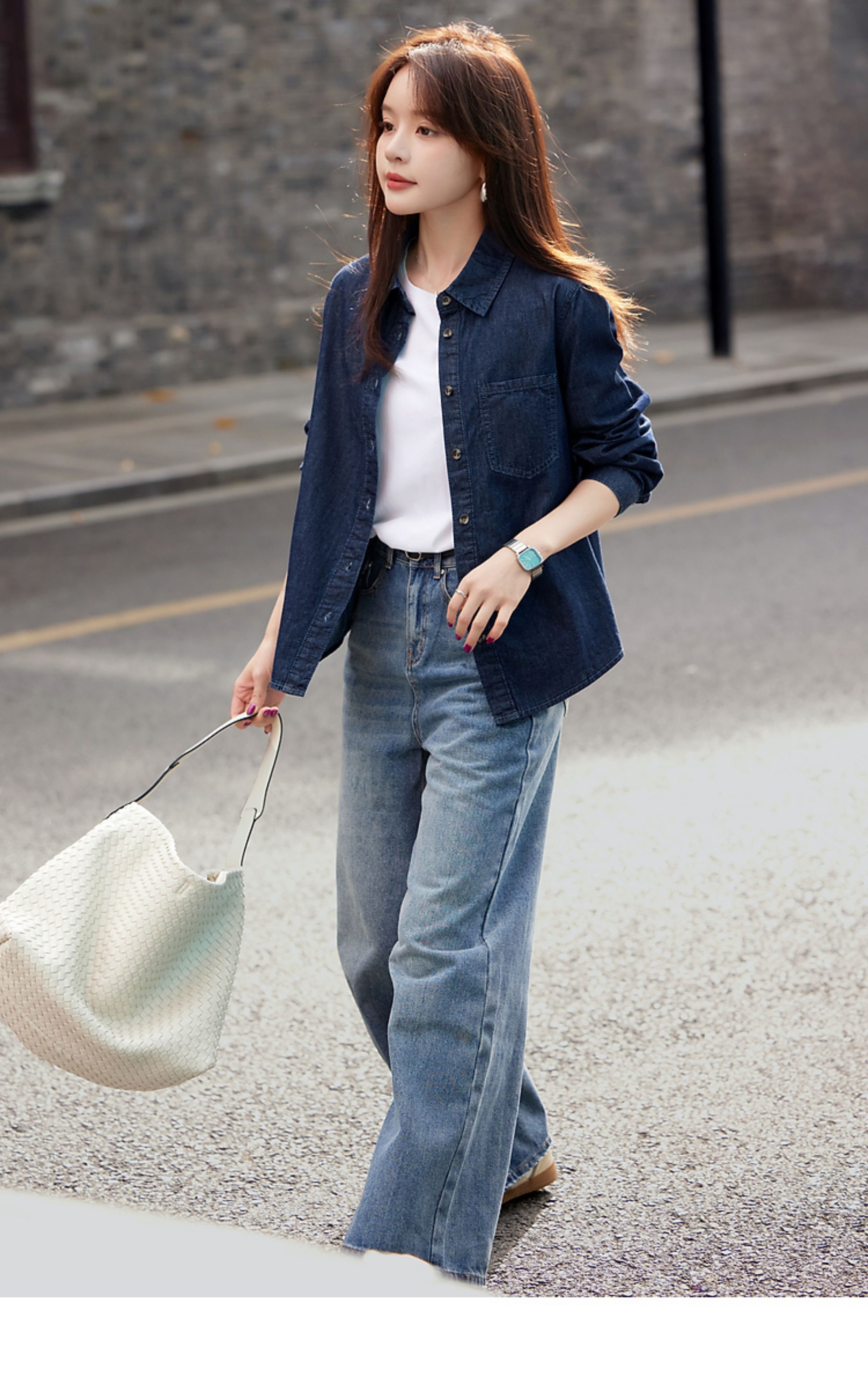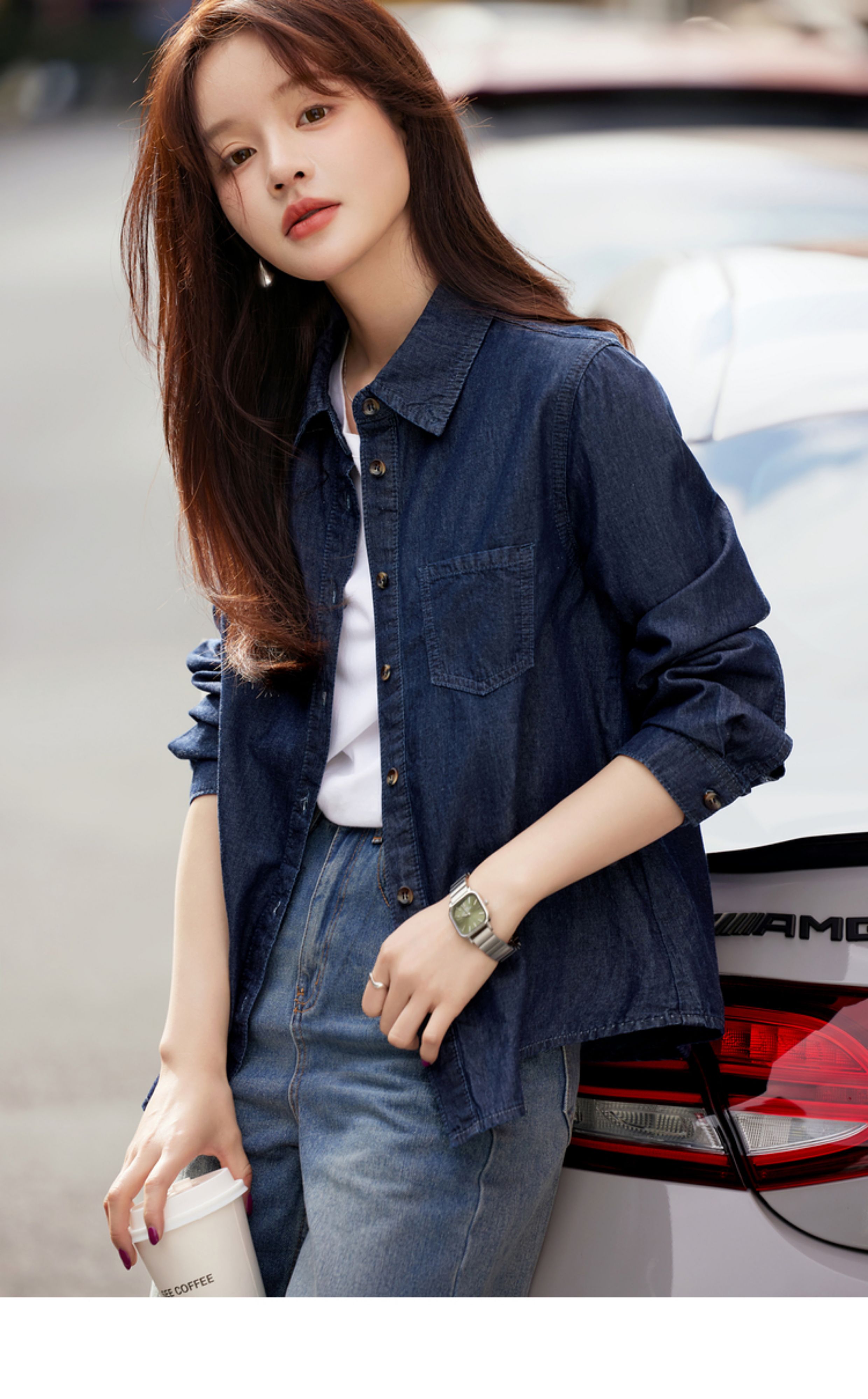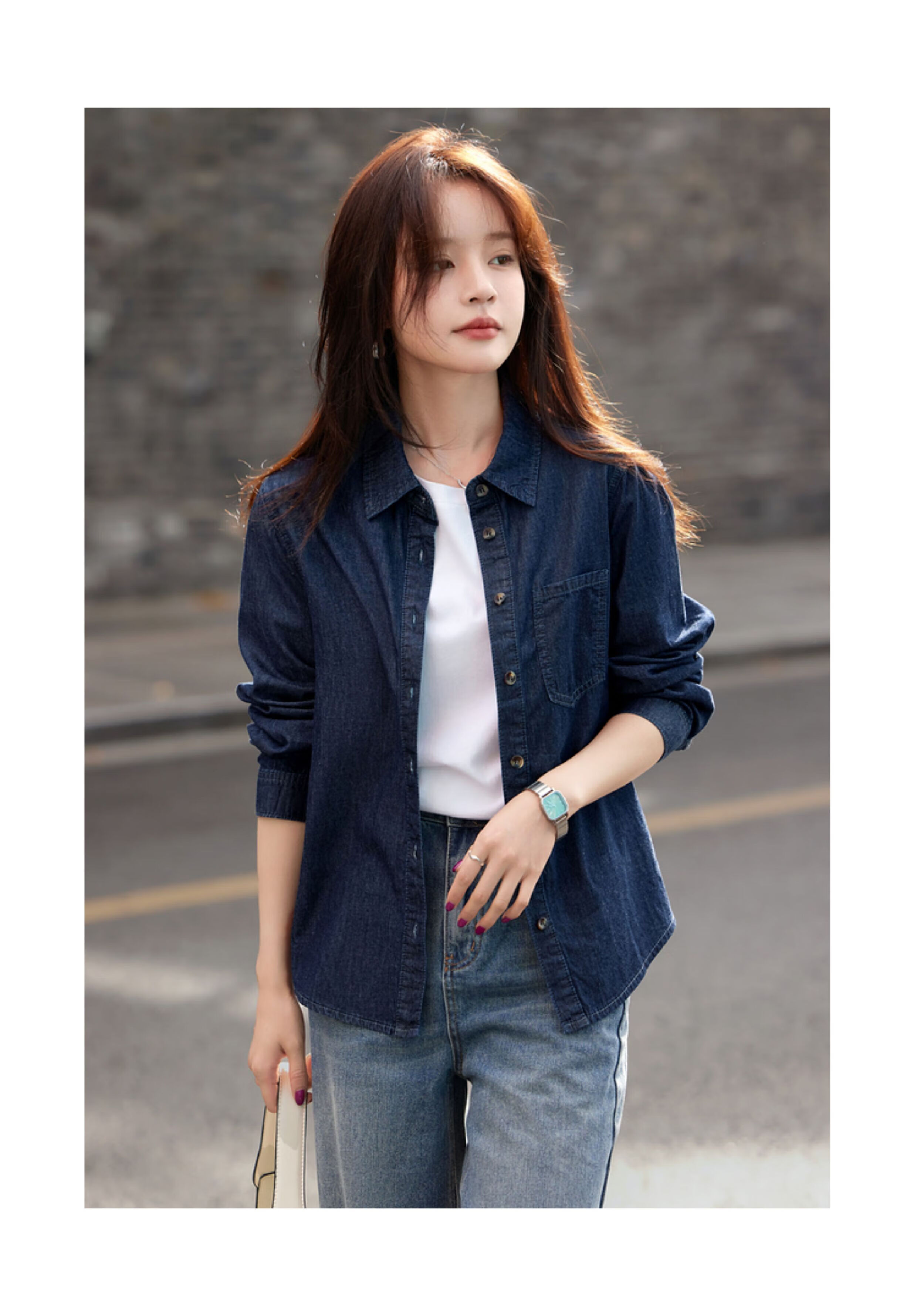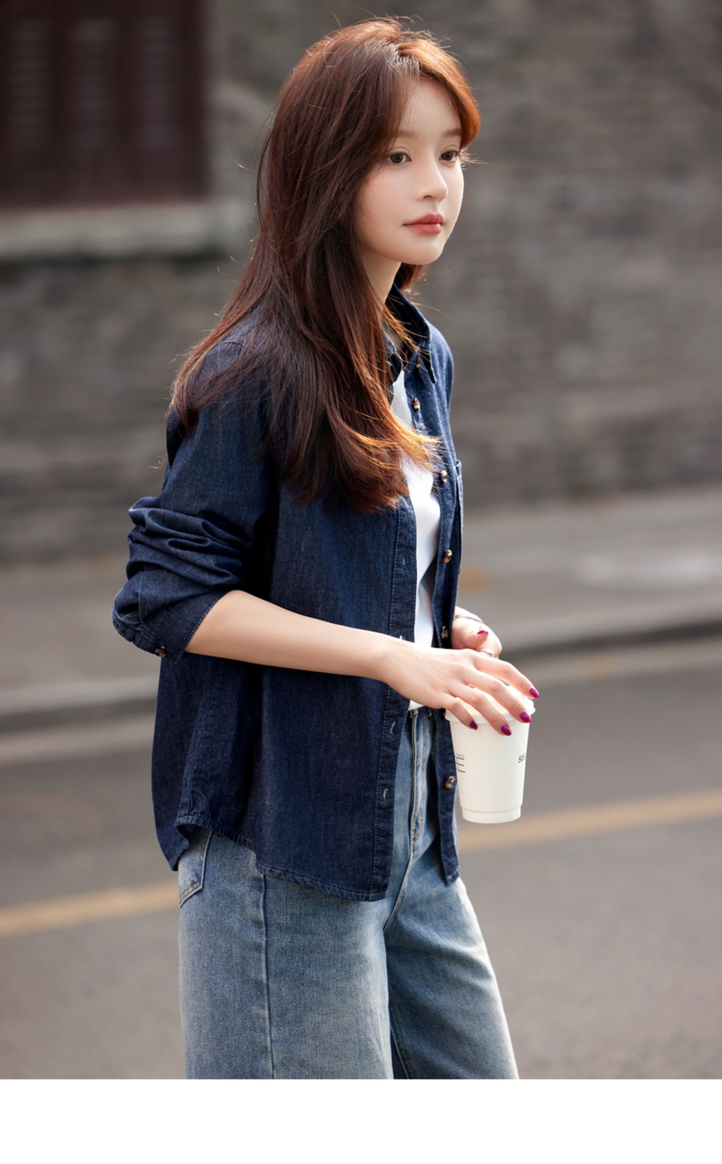 Mohan Yimei retro washed denim shirt thin jacket 2025 autumn new shirt temperament women's top