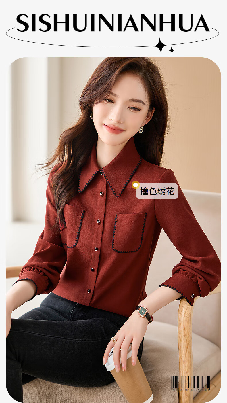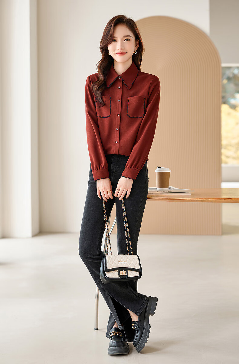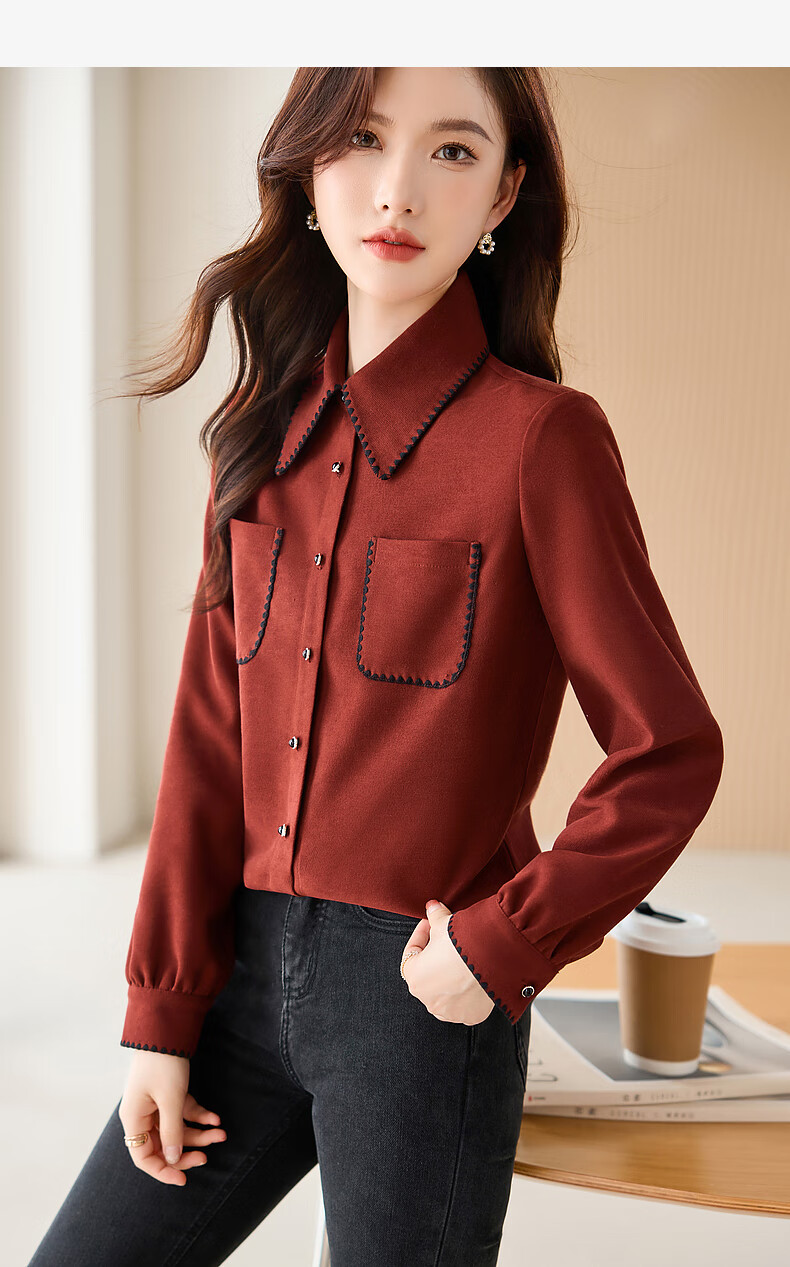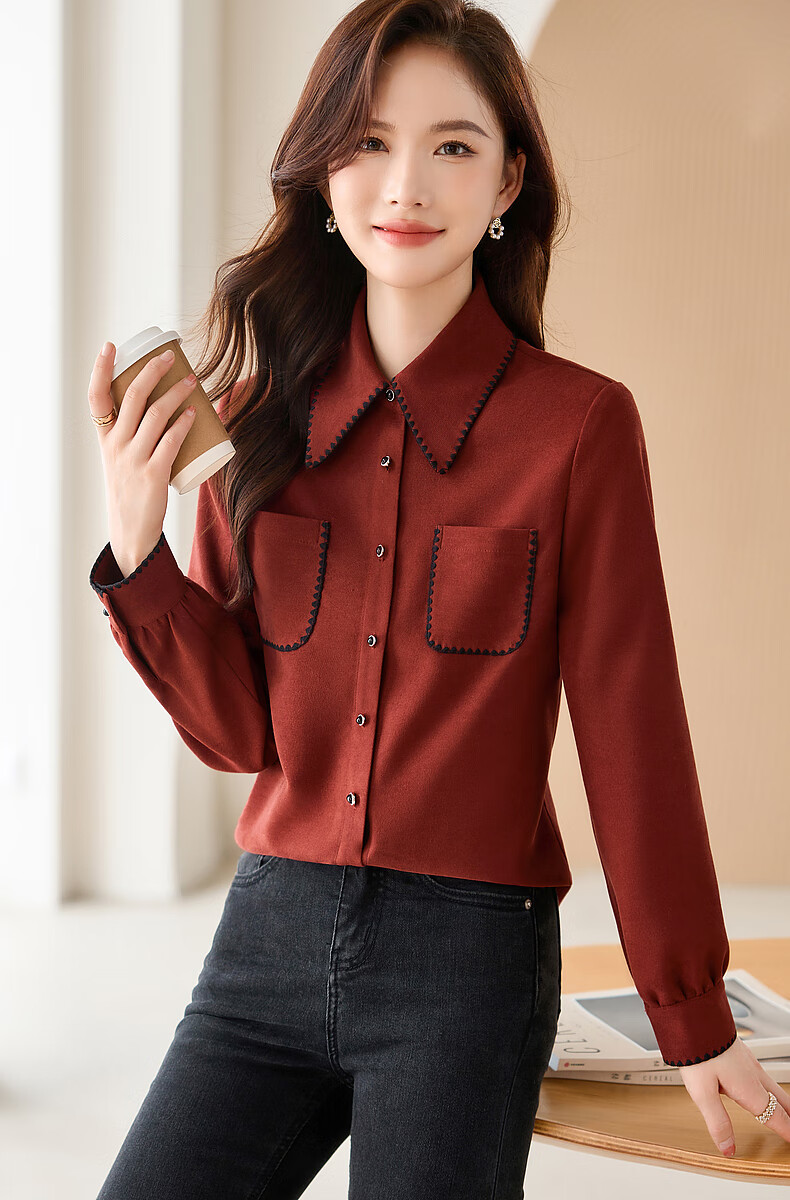 Recommended outfits for the coming winter: red and black stitching design, niche fashion slimming petite women’s shirt 11 red M