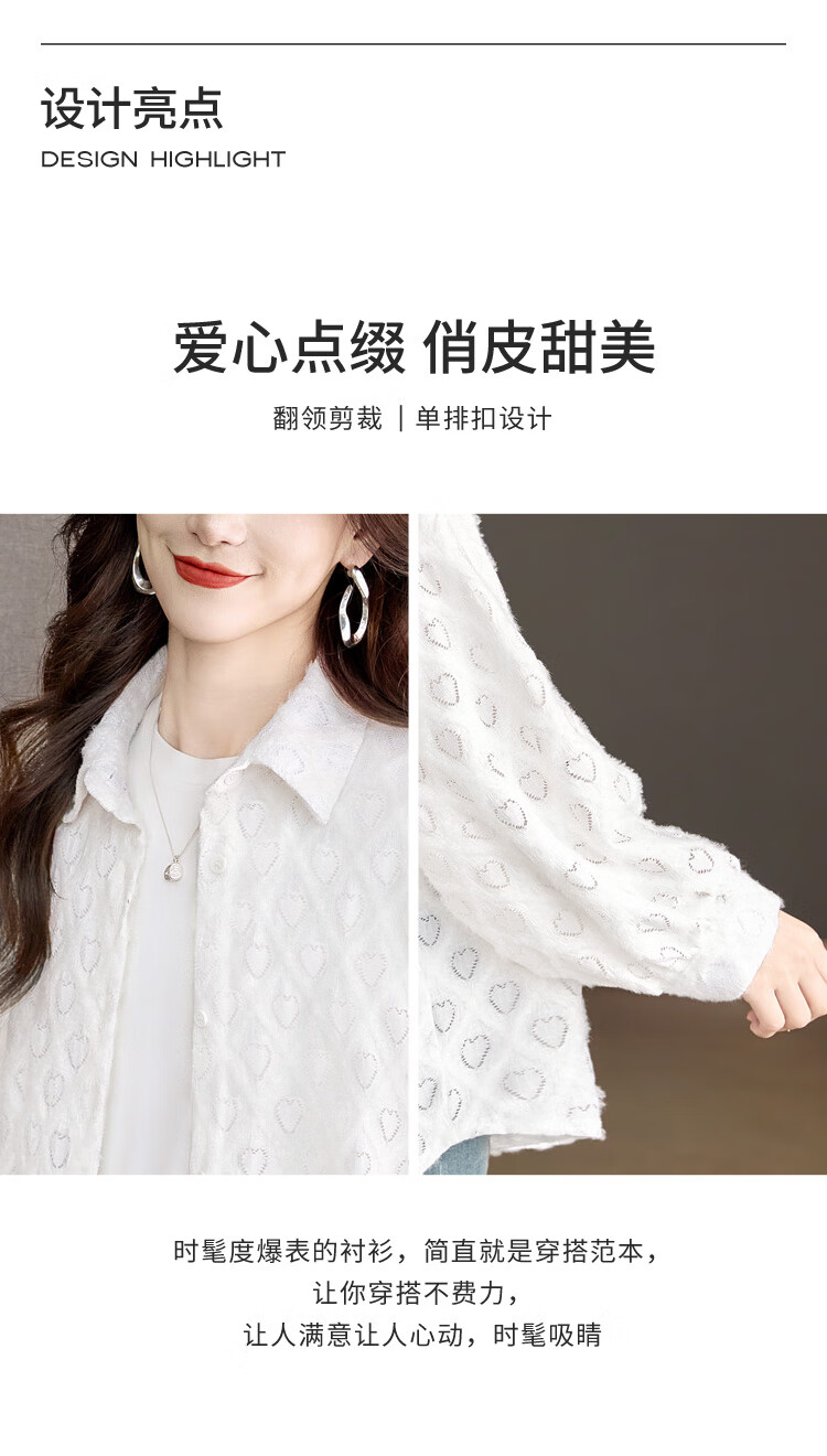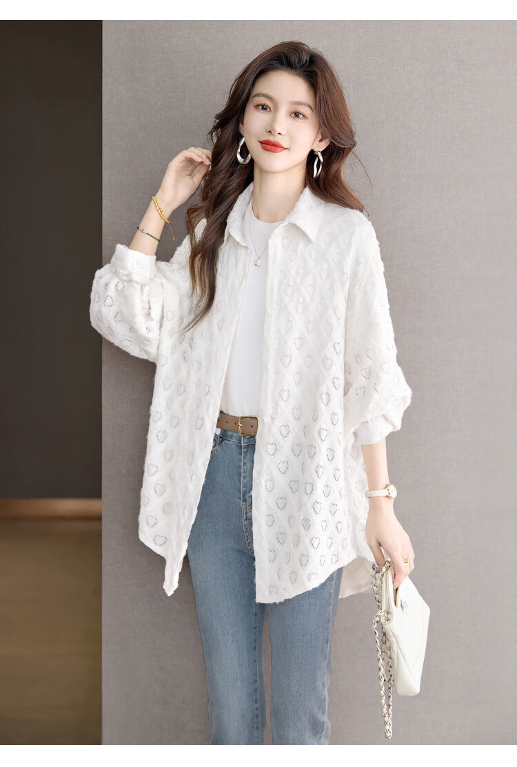 Cypress Lapel Shirt 2025 Autumn New Women's Fashion Loose Style Single-Breasted Heart-Shaped Casual Top Off-White M