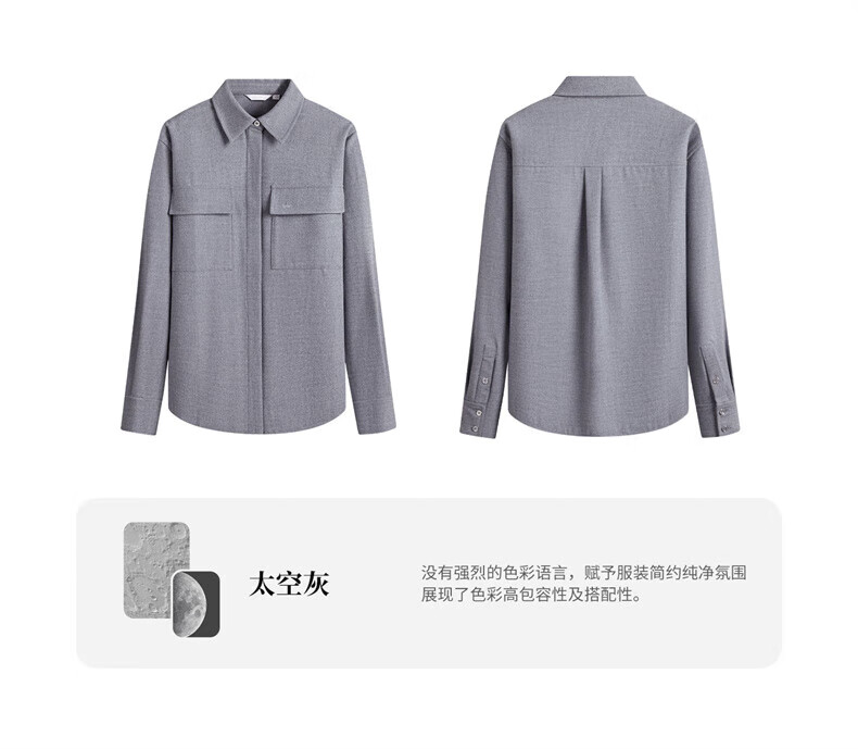 Navigare Italian small sailing women's long-sleeved shirt 2025 autumn and winter new brushed warm shirt simple top for women space gray M