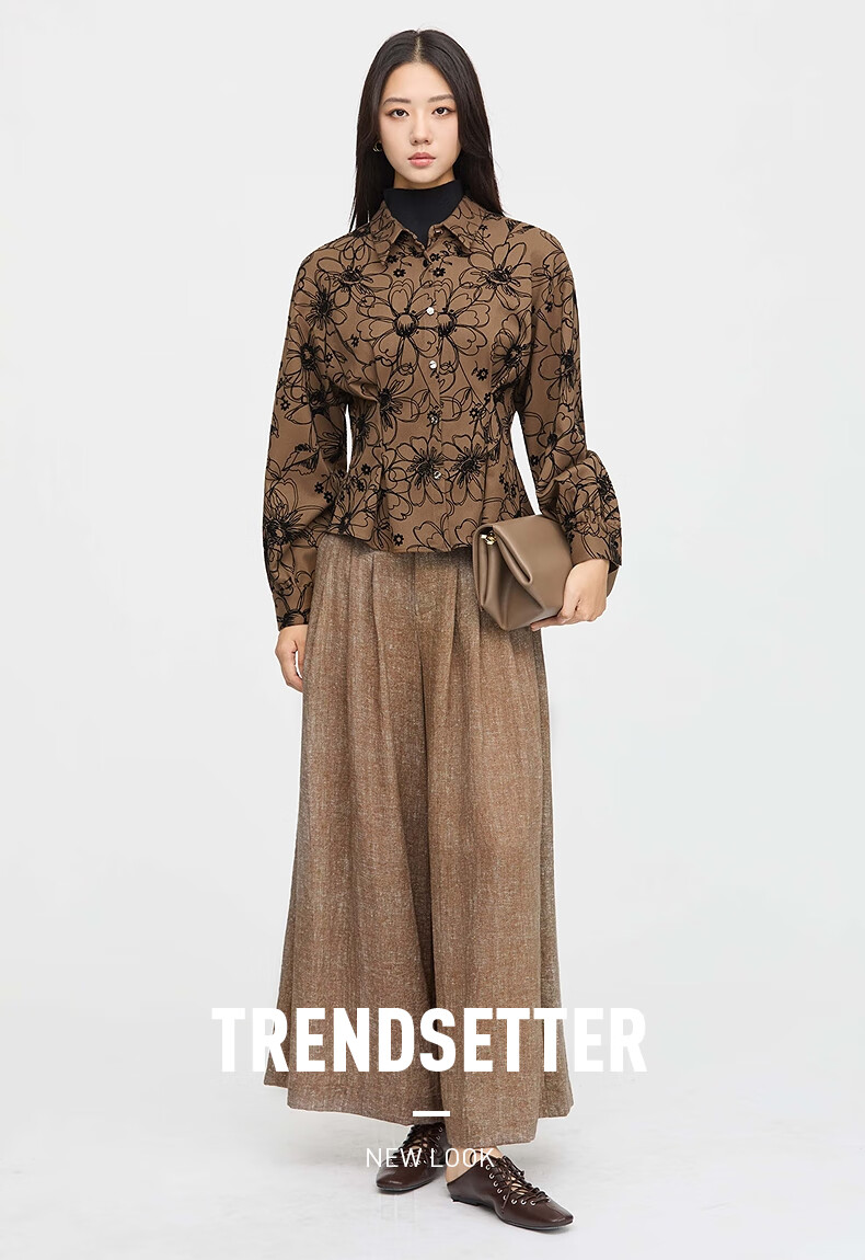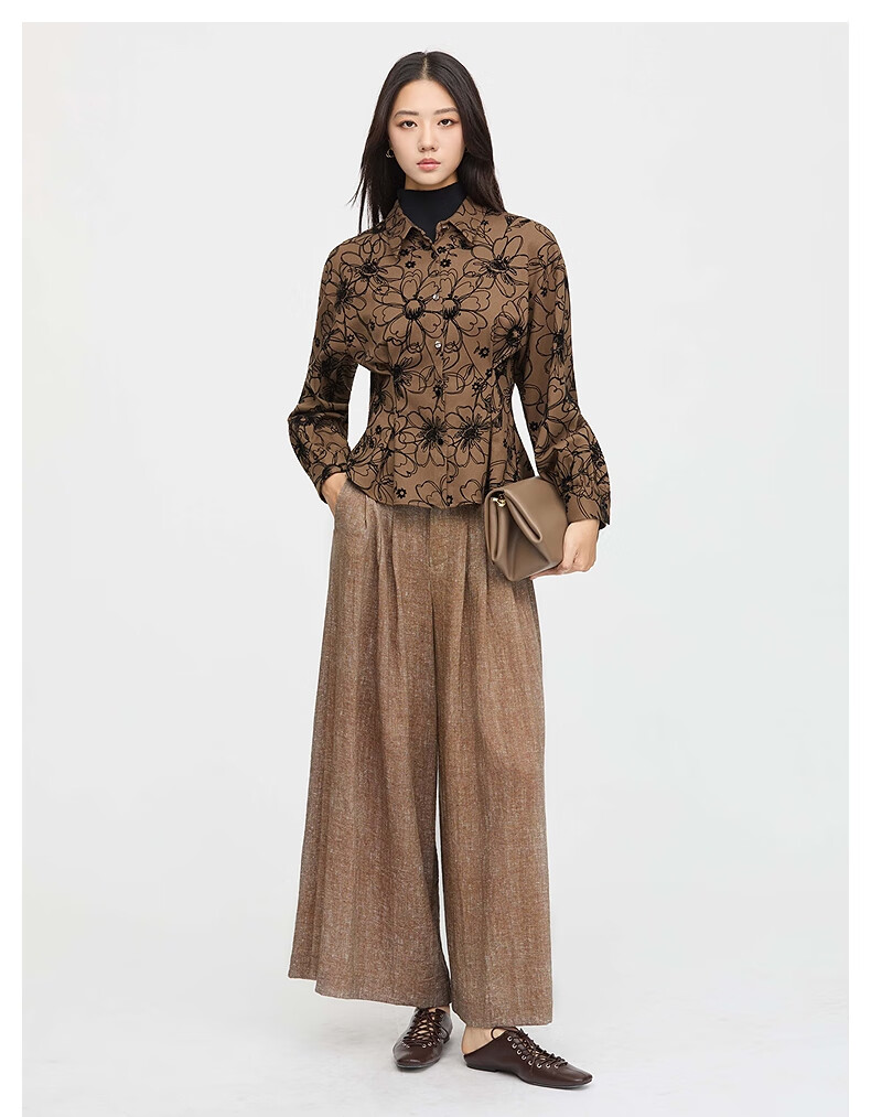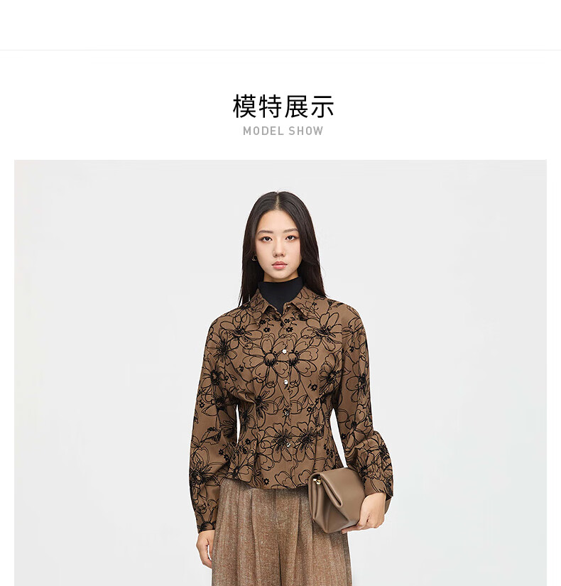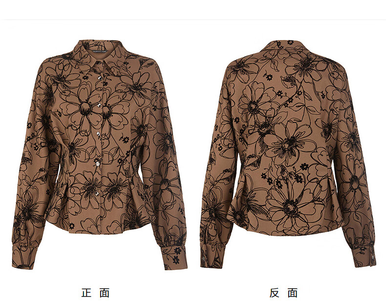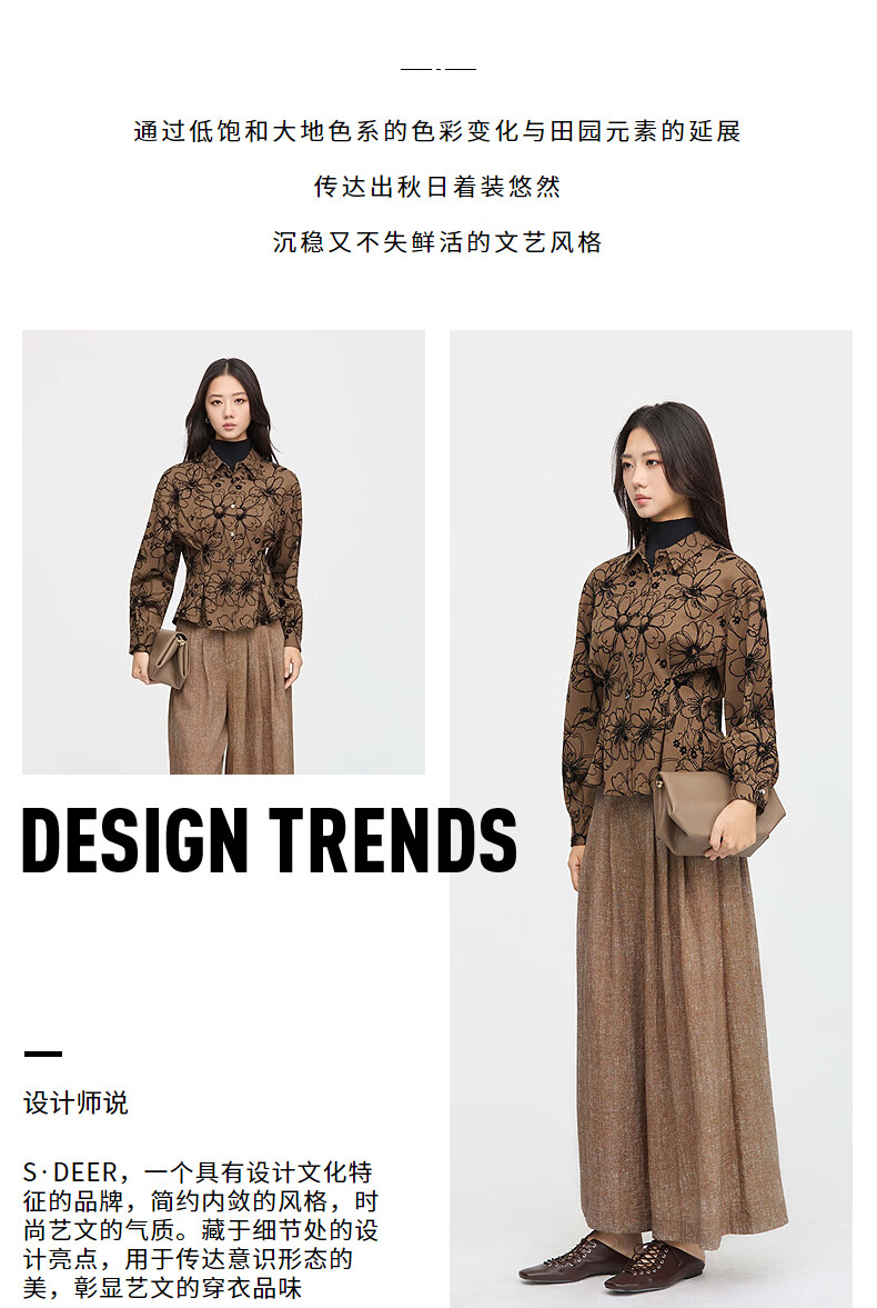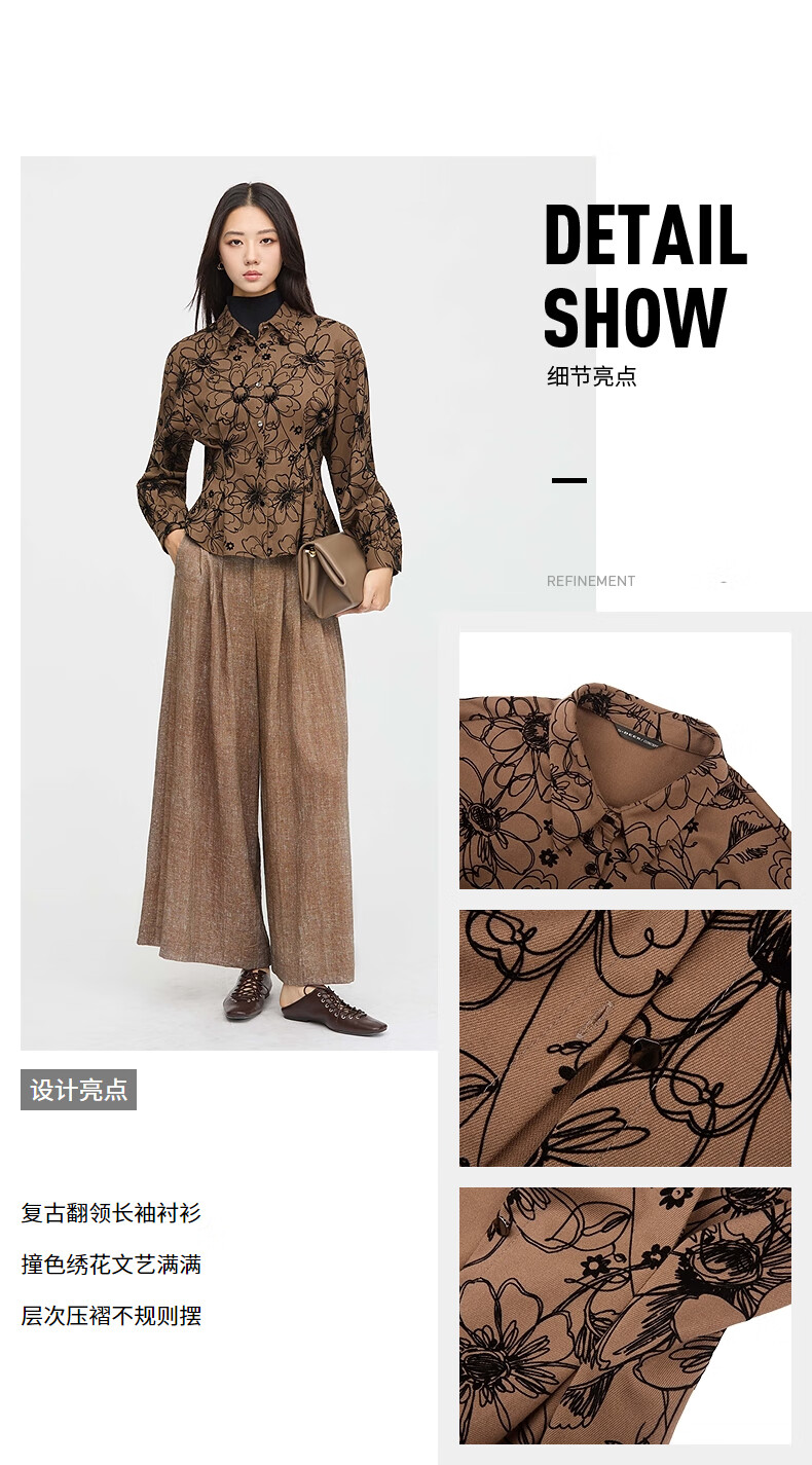 S.DEER women's 25-year new retro lapel embroidered irregular long-sleeved shirt S253Z0503 dark brown red/09 M
