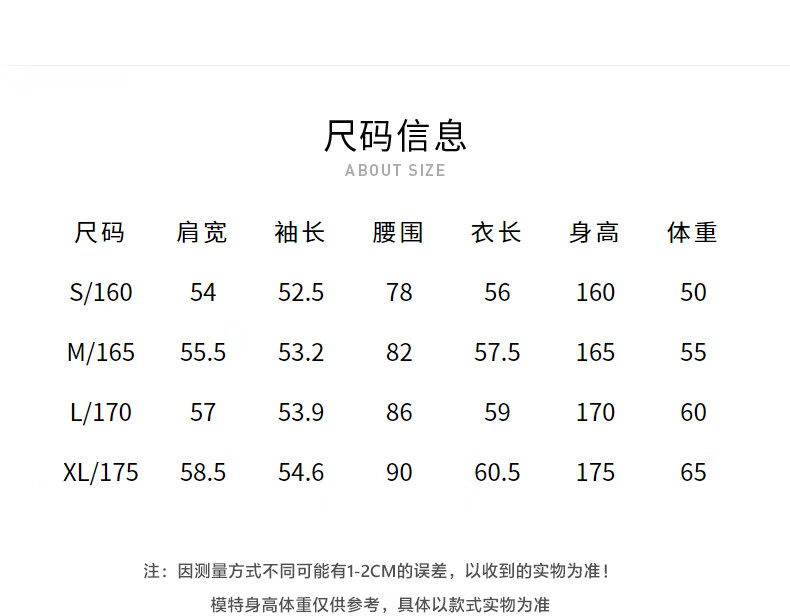 China (cm) 160-165/84-86 165-170 / 88-90 167-172 / 92-96 168-173 / 98-102 170-176 / 106-110