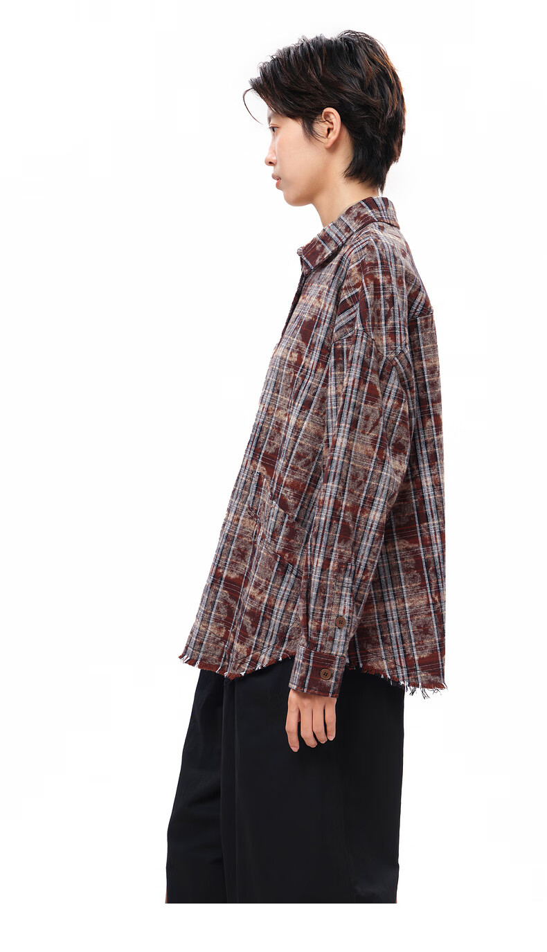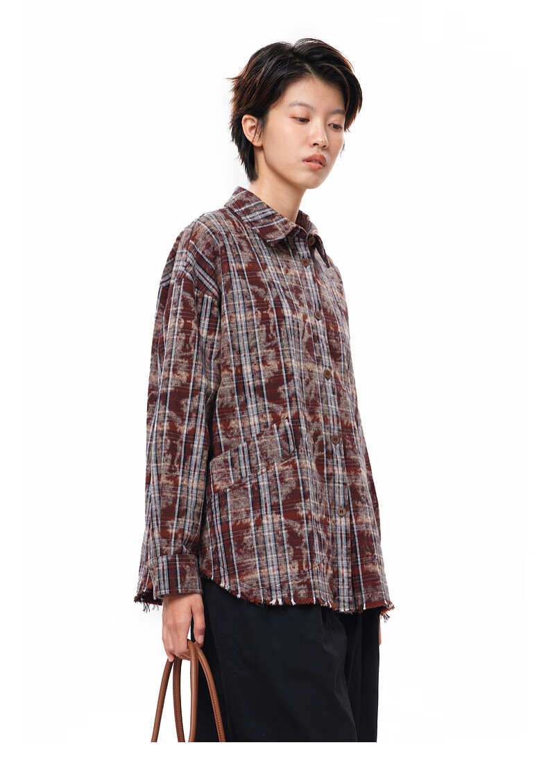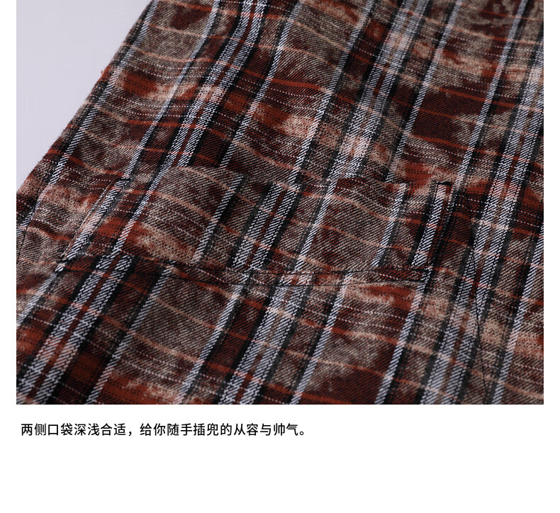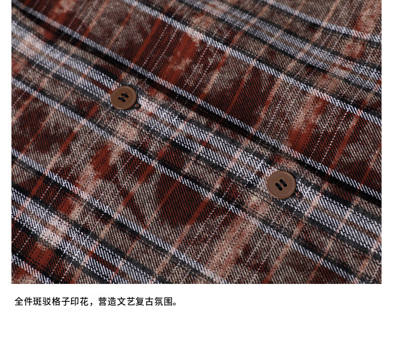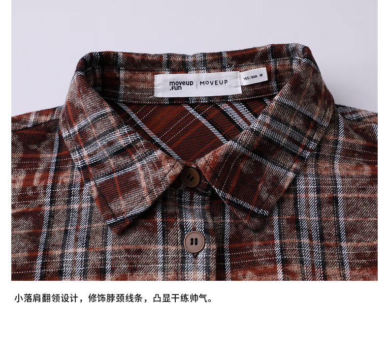 MOVEUP 2025 winter new style.FUN series lapel plaid printed loose edge retro short shirt for women coffee plaid L