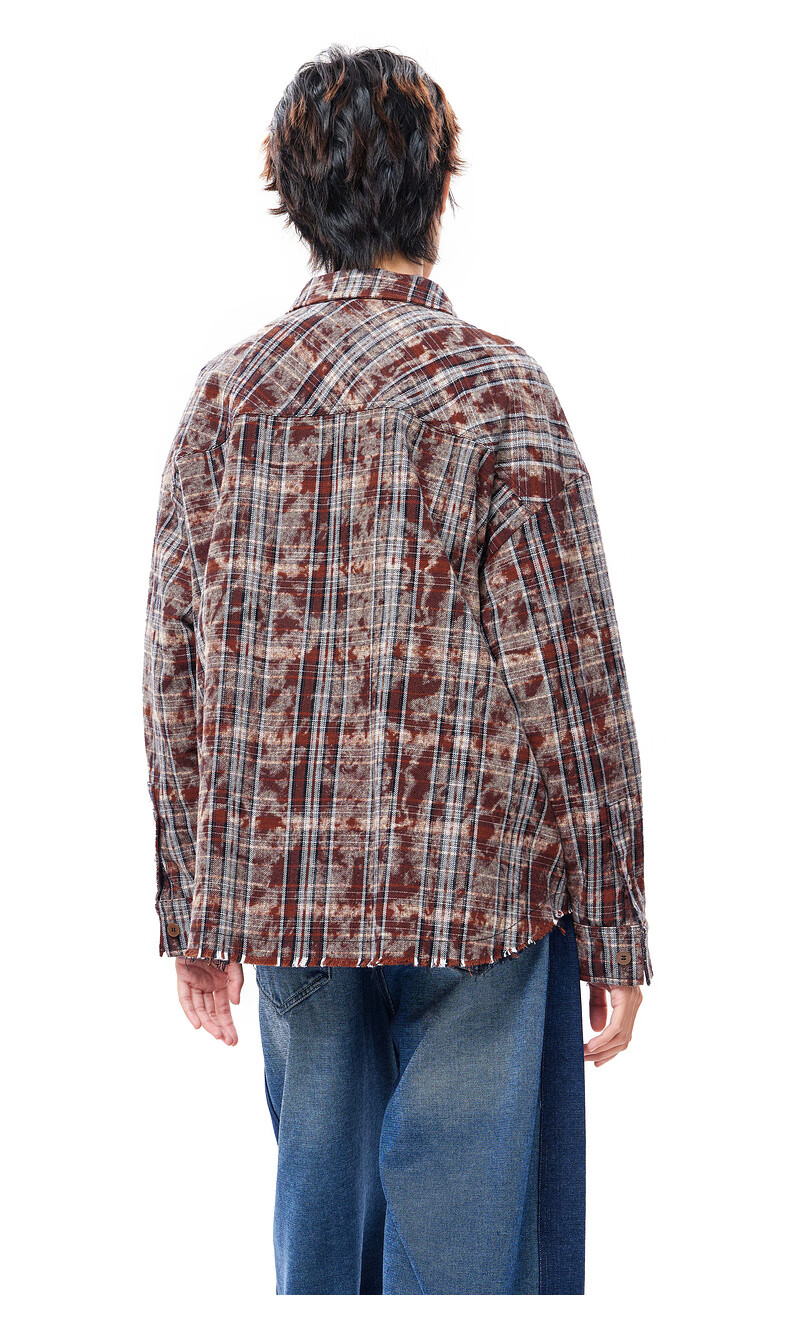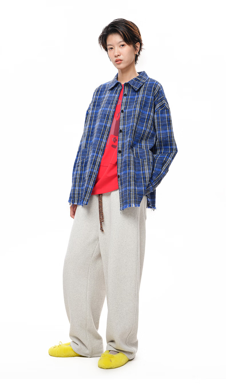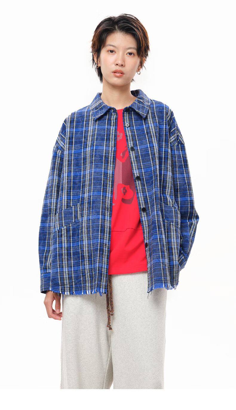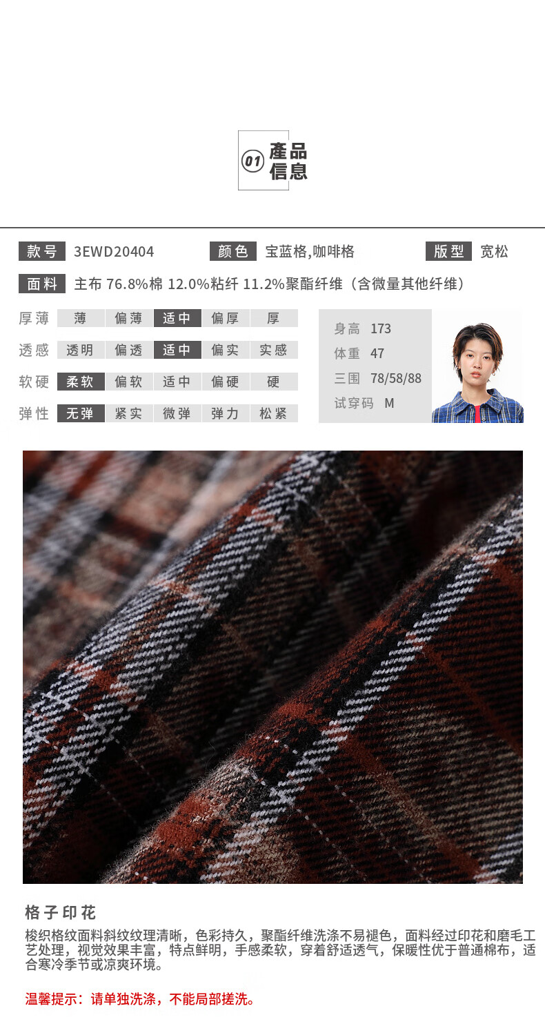 MOVEUP 2025 winter new style.FUN series lapel plaid printed loose edge retro short shirt for women coffee plaid L