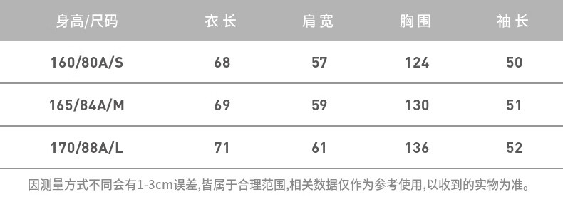 China (cm) 160-165/84-86 165-170 / 88-90 167-172 / 92-96 168-173 / 98-102 170-176 / 106-110