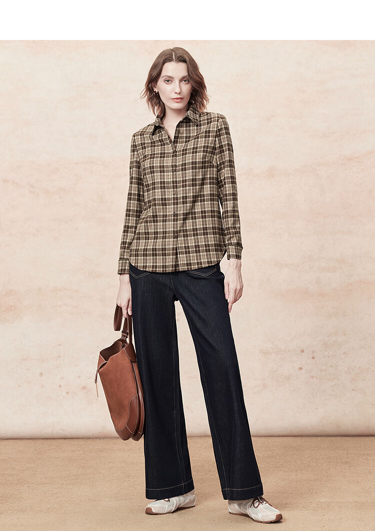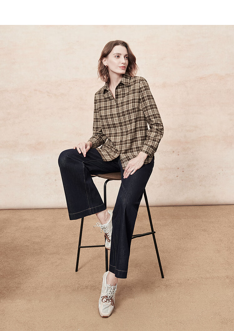 FINITY shirt 2025 winter new style simple temperament plaid casual commuting outer top for women KaGe S