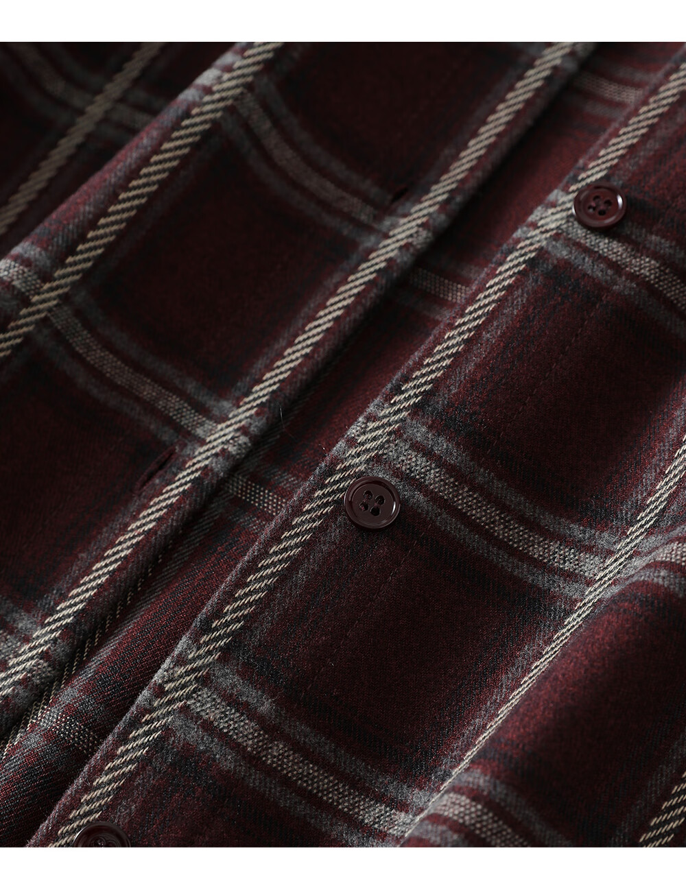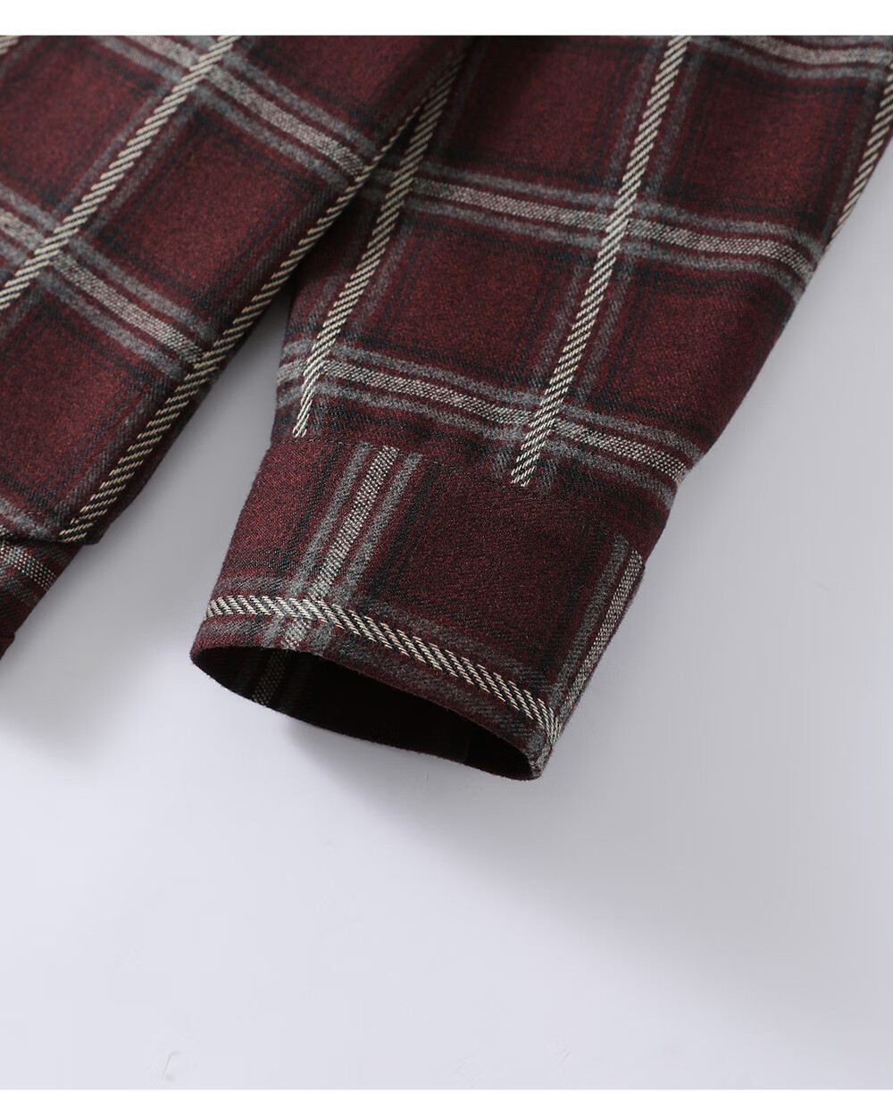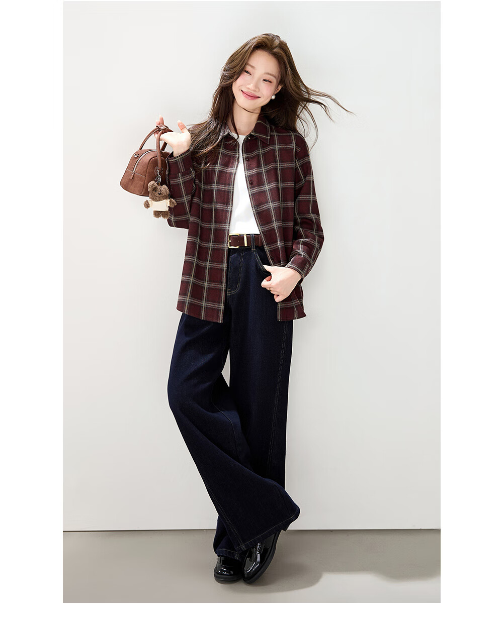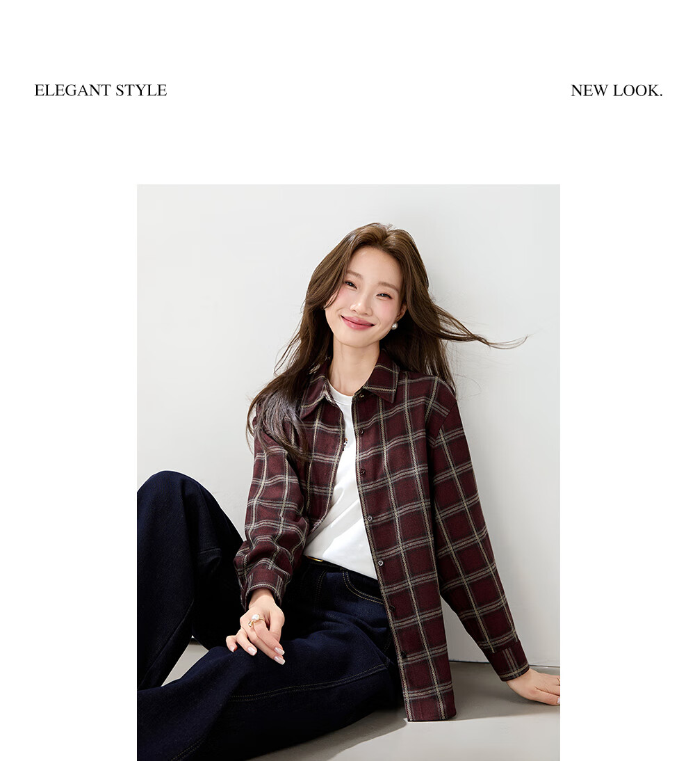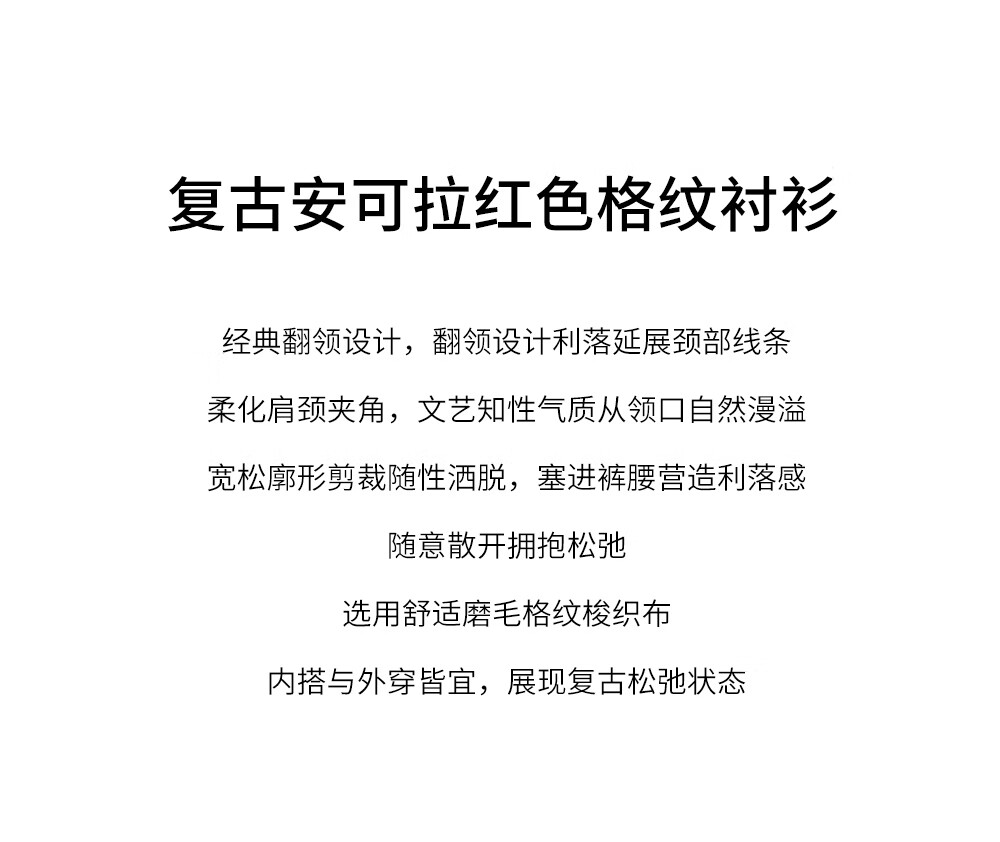 Osha retro contrasting plaid shirt women's winter new style slim brushed long-sleeved shirt top Angora Red XL