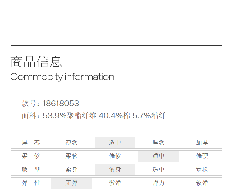 China (cm) 160-165/84-86 165-170 / 88-90 167-172 / 92-96 168-173 / 98-102 170-176 / 106-110