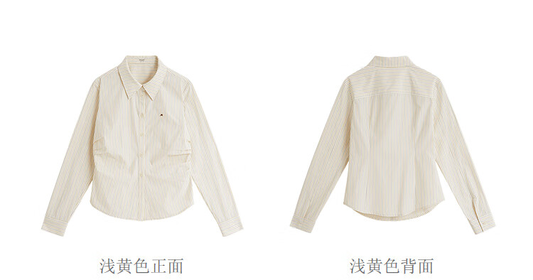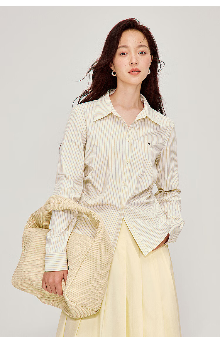 INMAN Simple Commuting Vertical Stripe Pleated Shirt 2026 Spring Women's New Slim Long Sleeve Shirt Top Light Yellow M