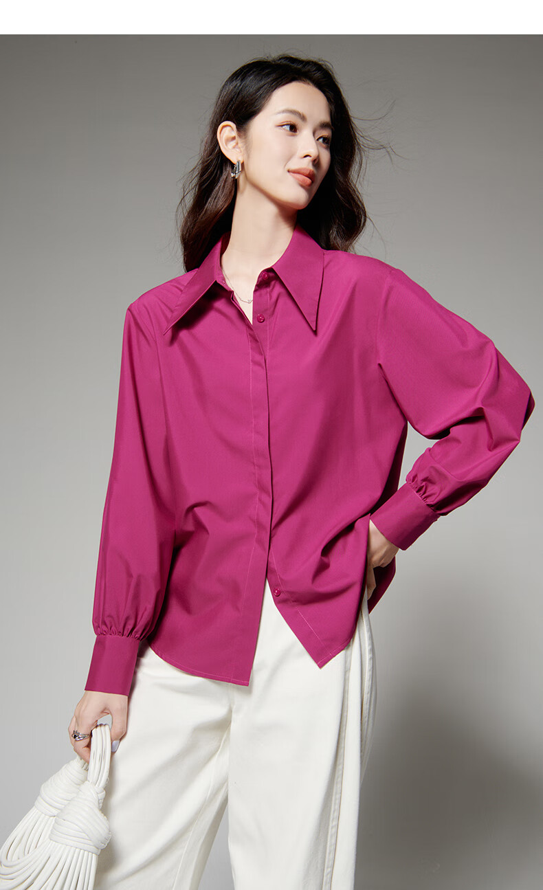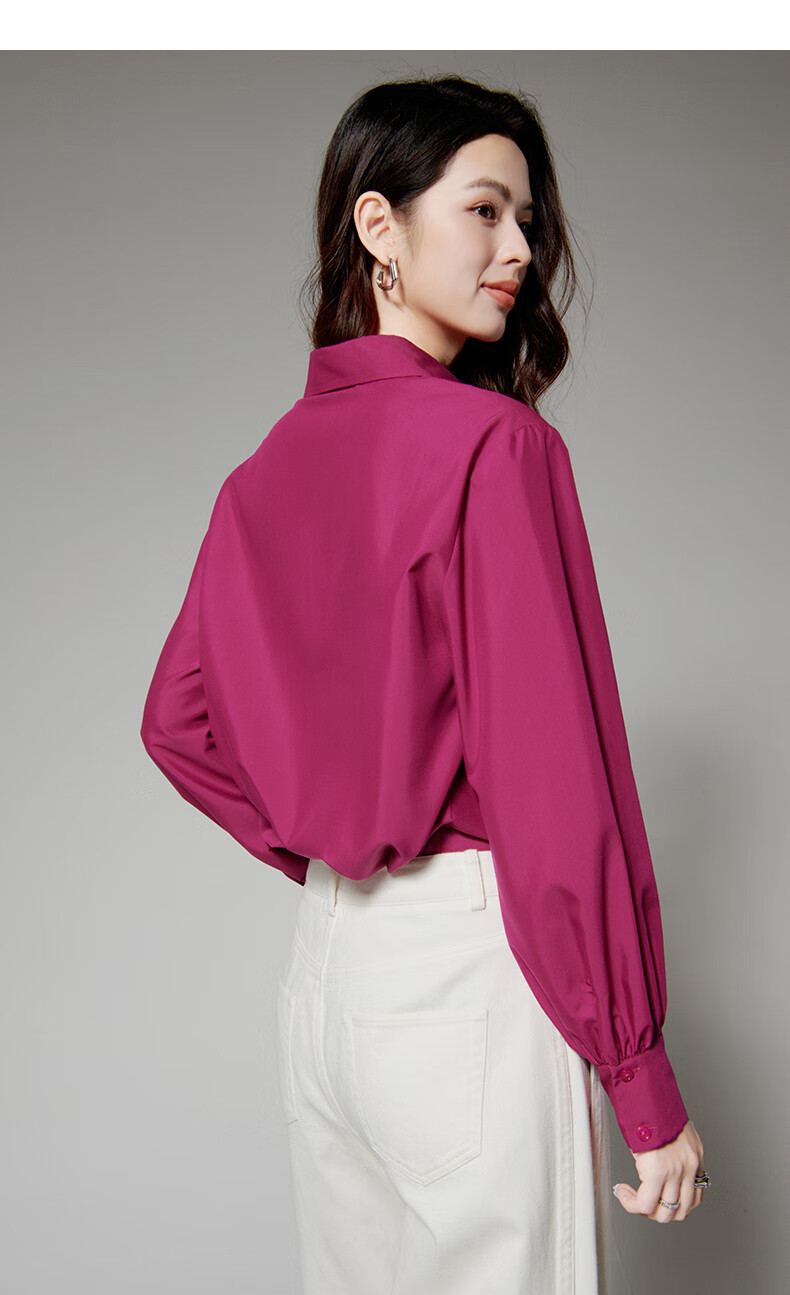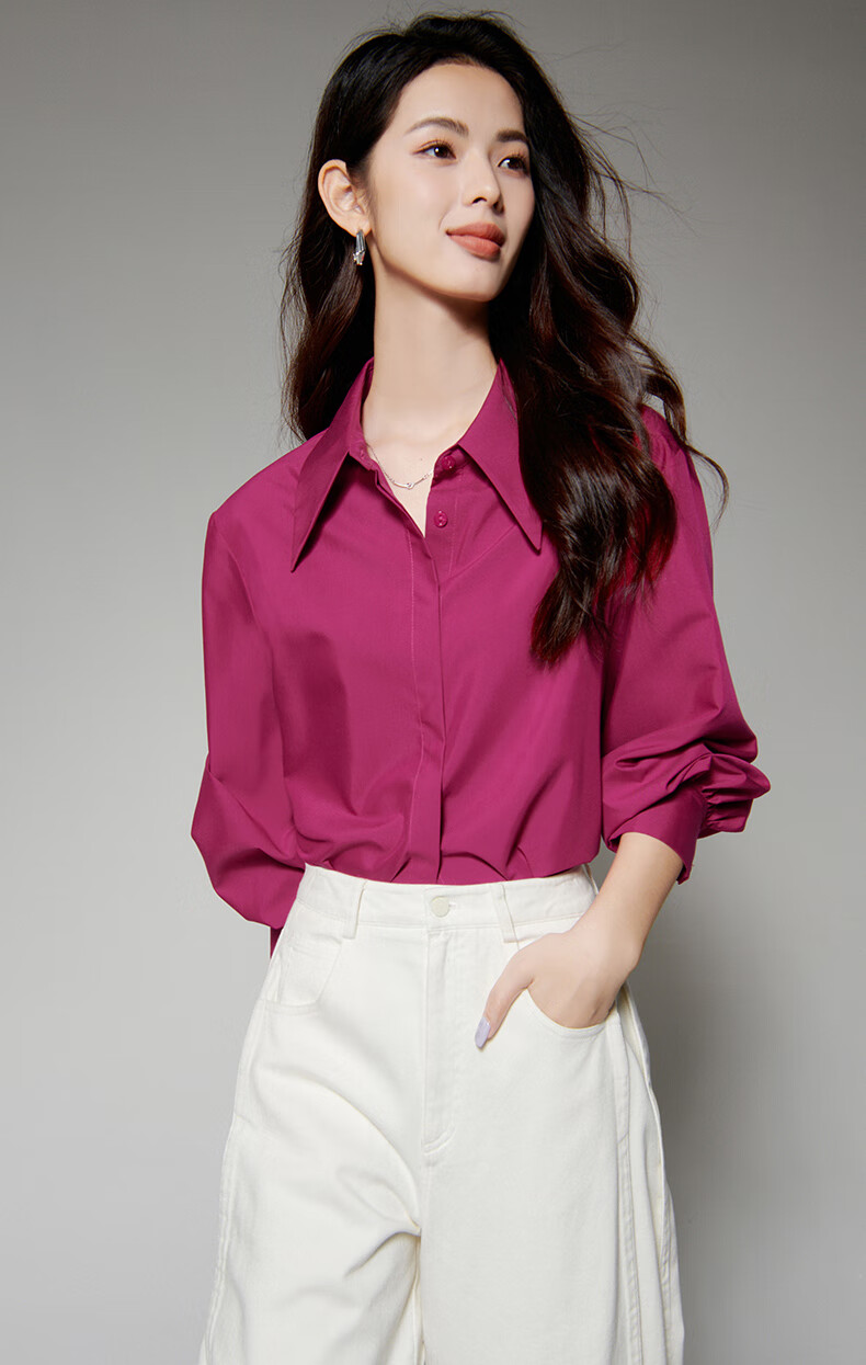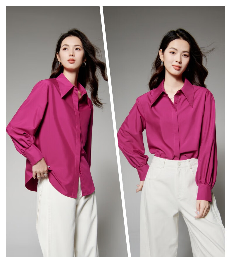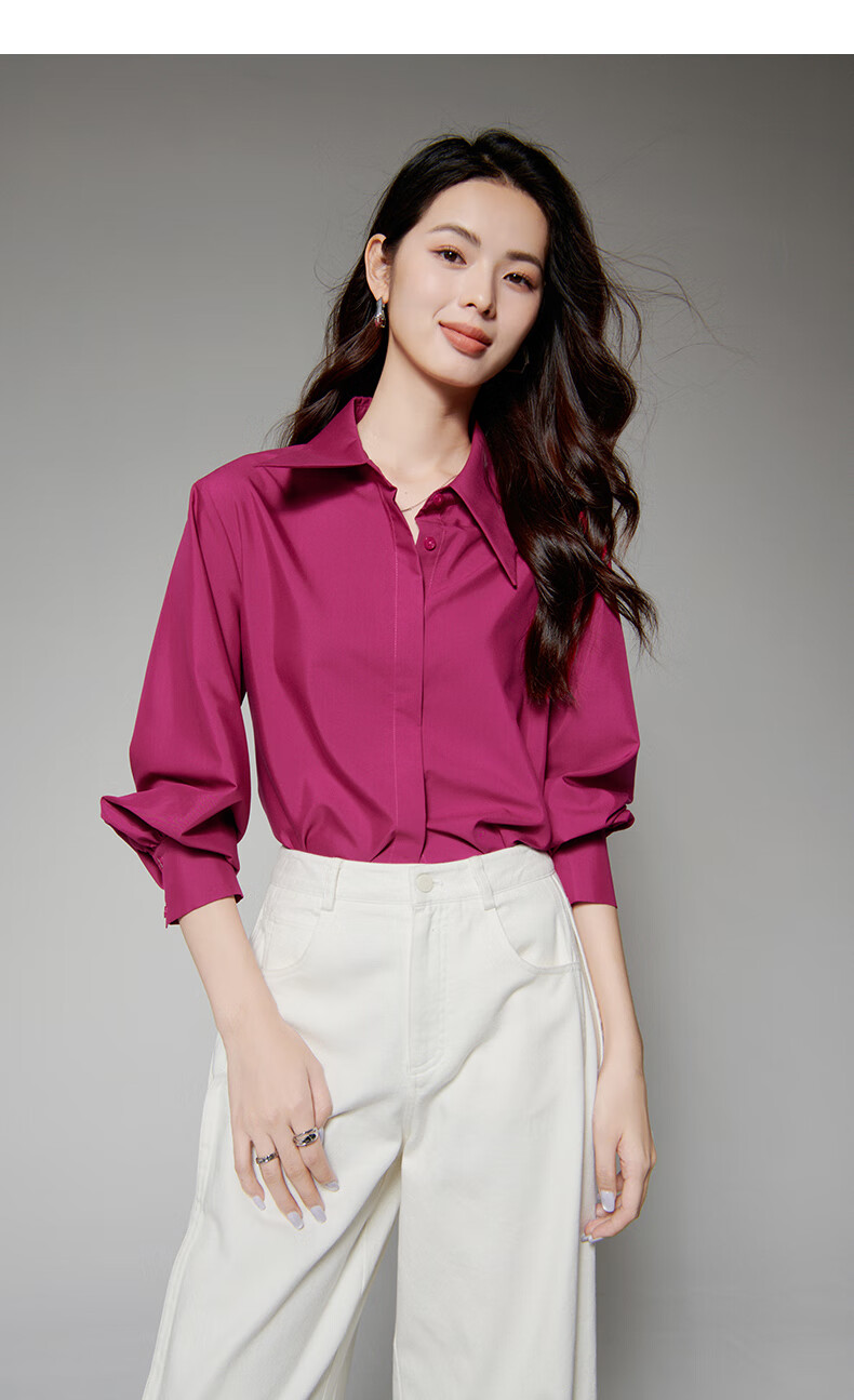 Late White New Product 2025 Autumn Style Skin Friendly Shirt Light Mature Fashion Modal Age Reducing Lapel Shirt for Women Raspberry Red L
