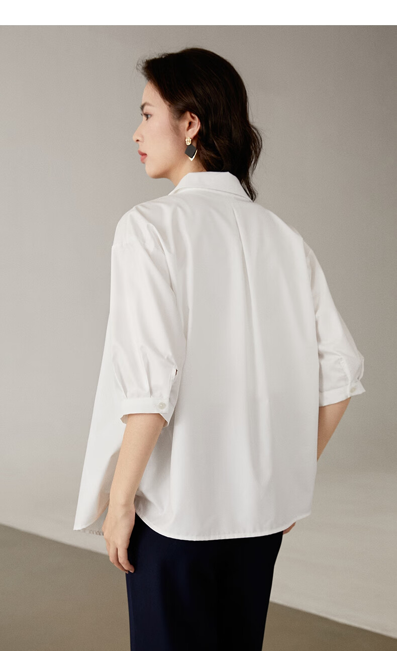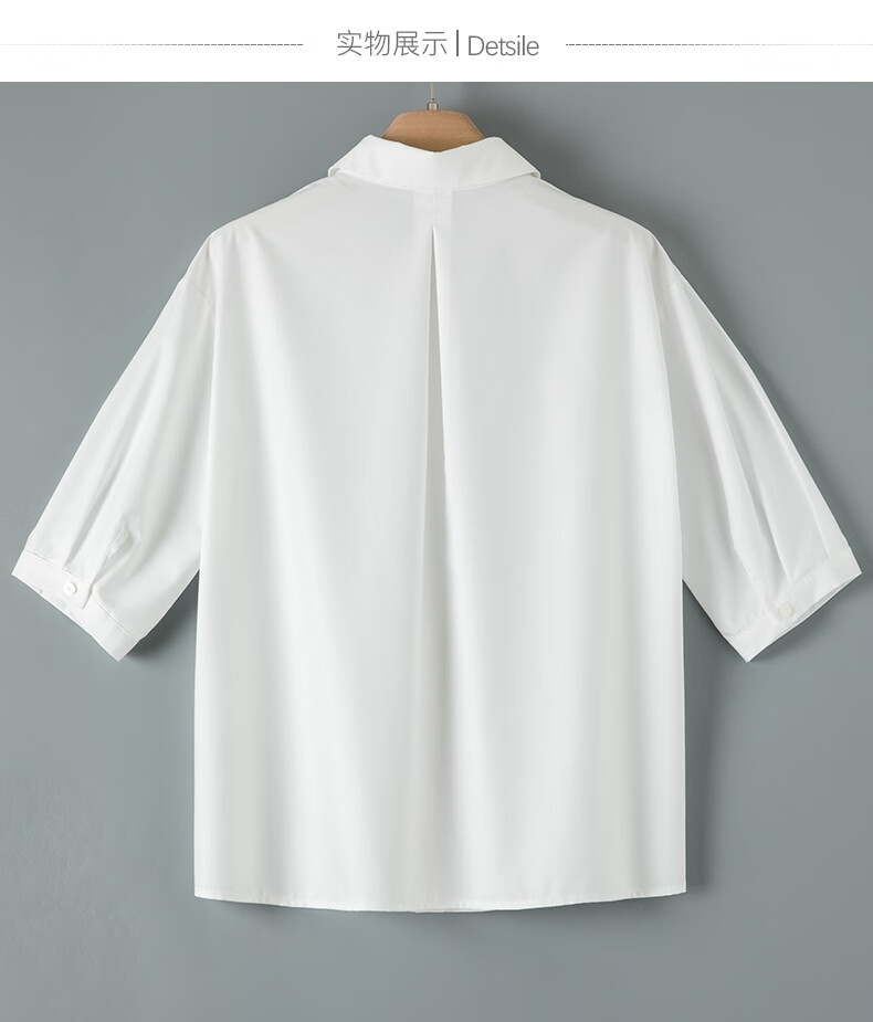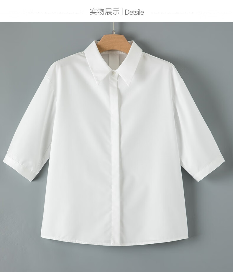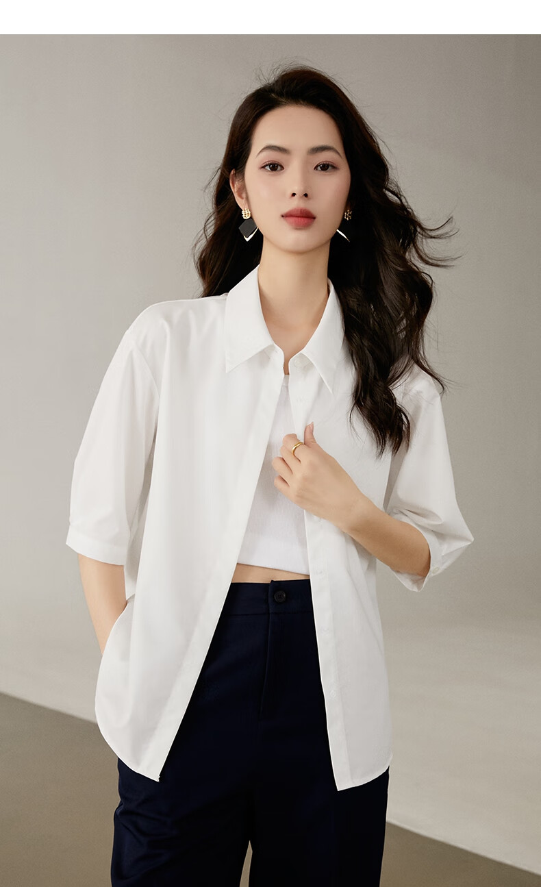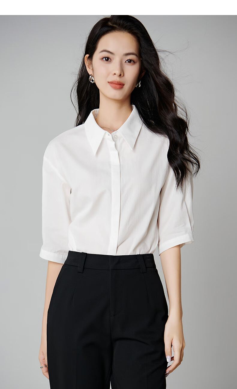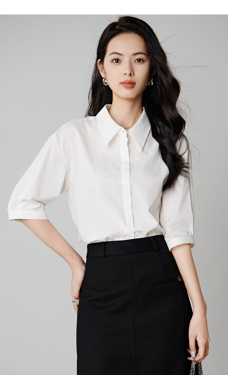 Late White New Product 2025 Autumn Style Lapel Cotton Shirt Casual Commuting Workplace Mid-Sleeve Shirt Women White S