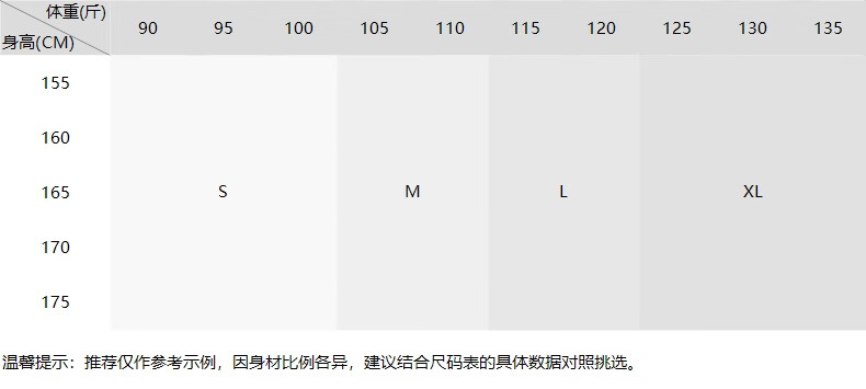 China (cm) 160-165/84-86 165-170 / 88-90 167-172 / 92-96 168-173 / 98-102 170-176 / 106-110