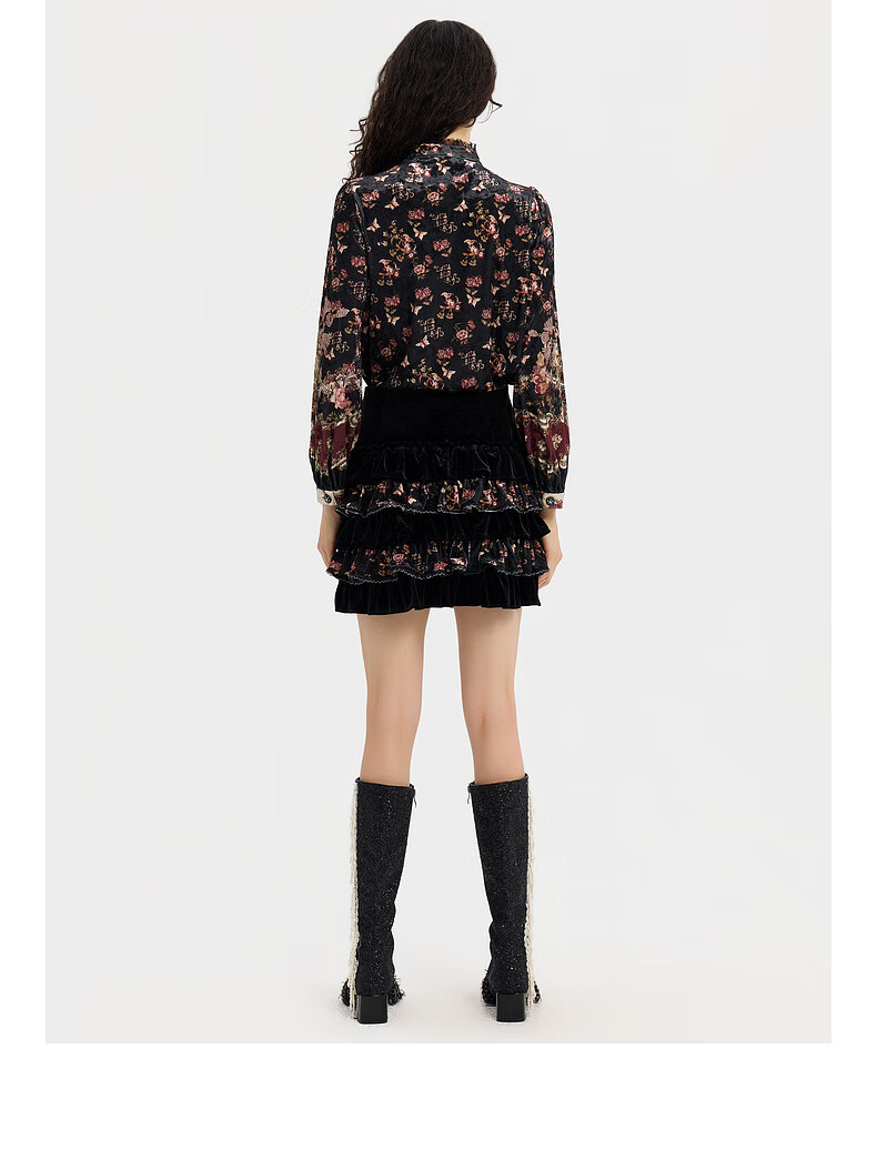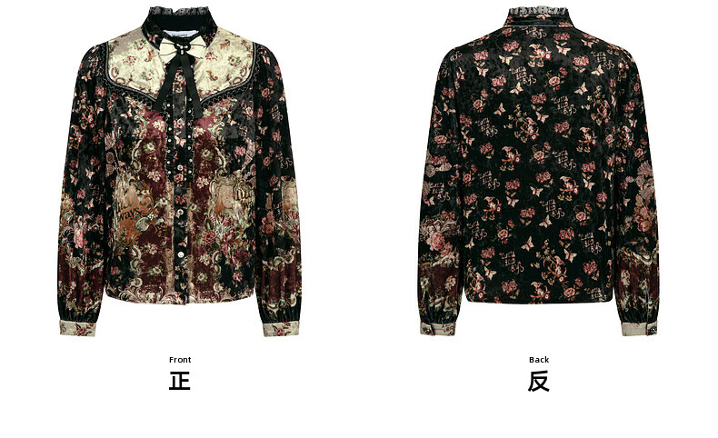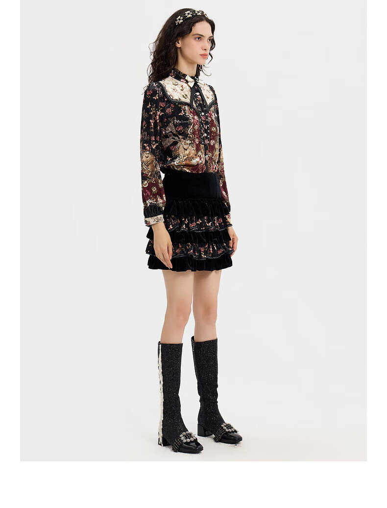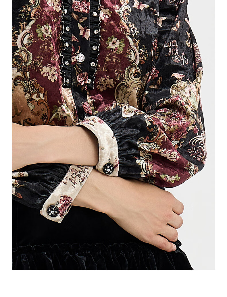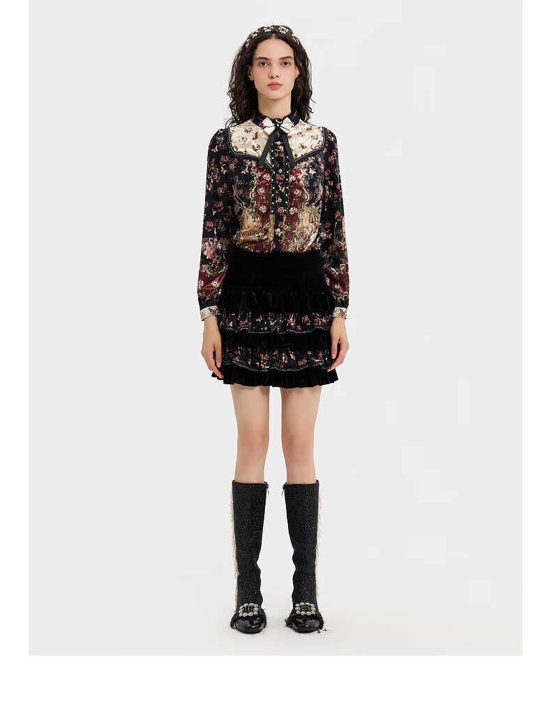 LULUALWAYSLULUALWAYS Shopping mall same style 25 winter new retro palace fungus edge bow long-sleeved shirt sauce red S