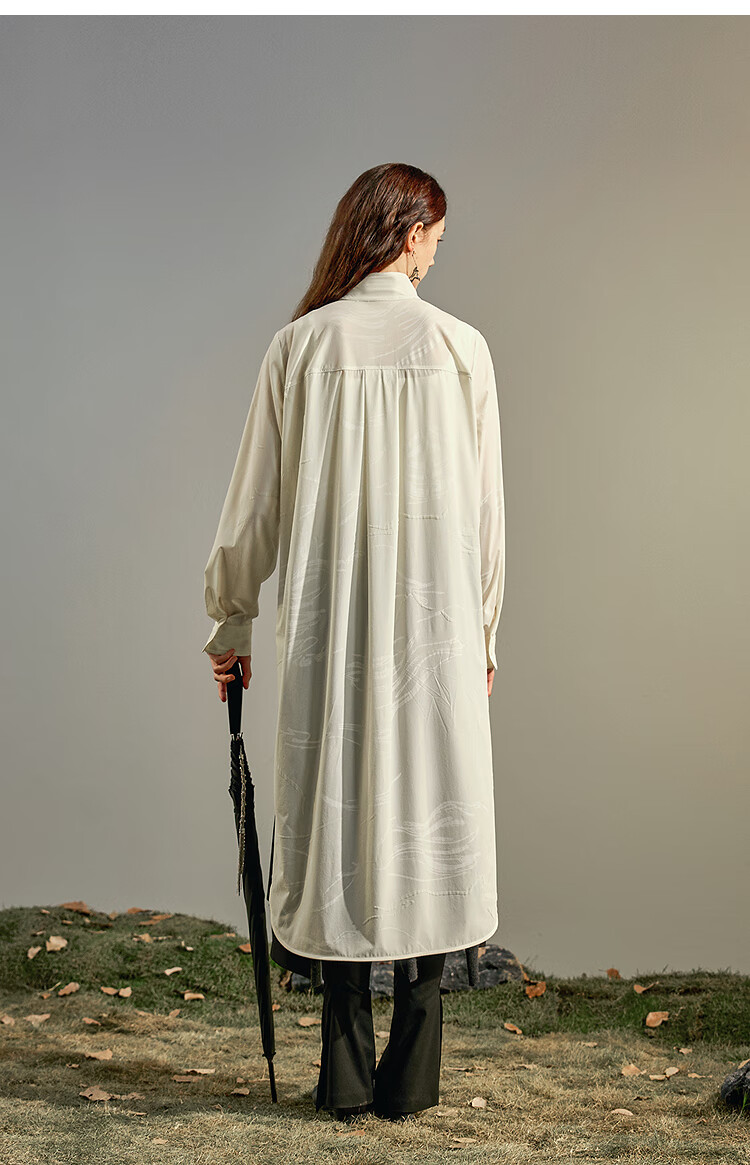 Rishuo original flocked printed shirt for women 2025 autumn new loose high-end shirt unique and elegant top Yuma White S