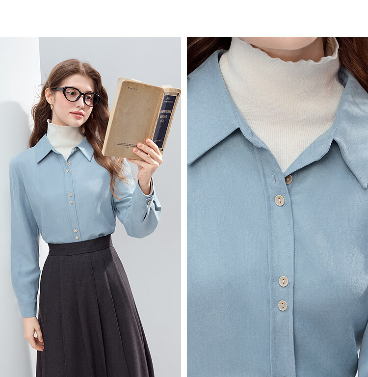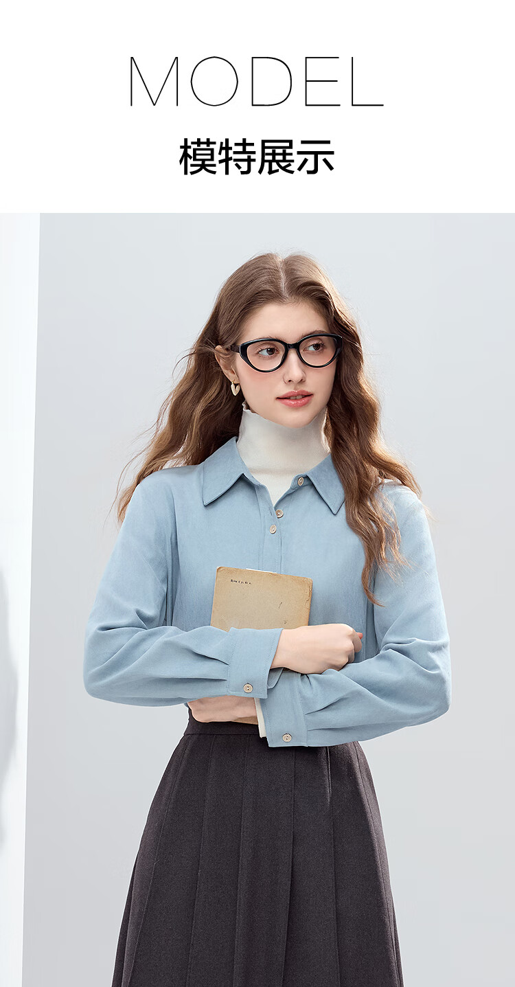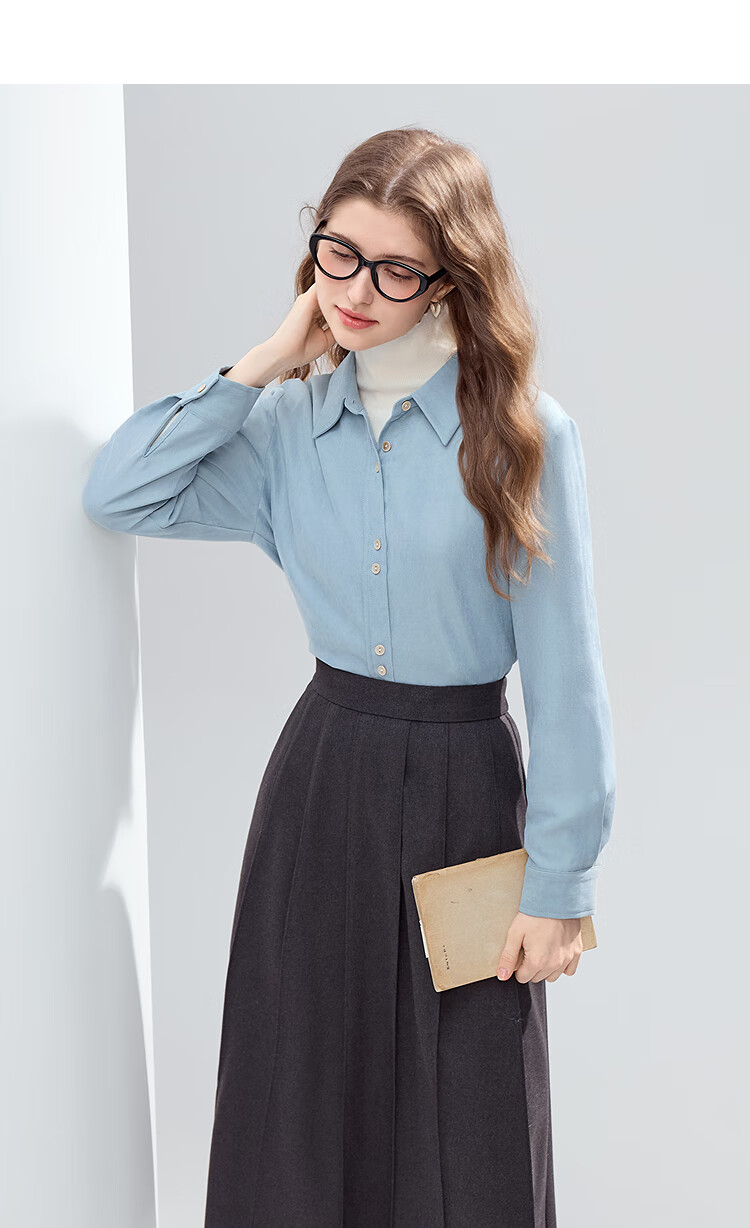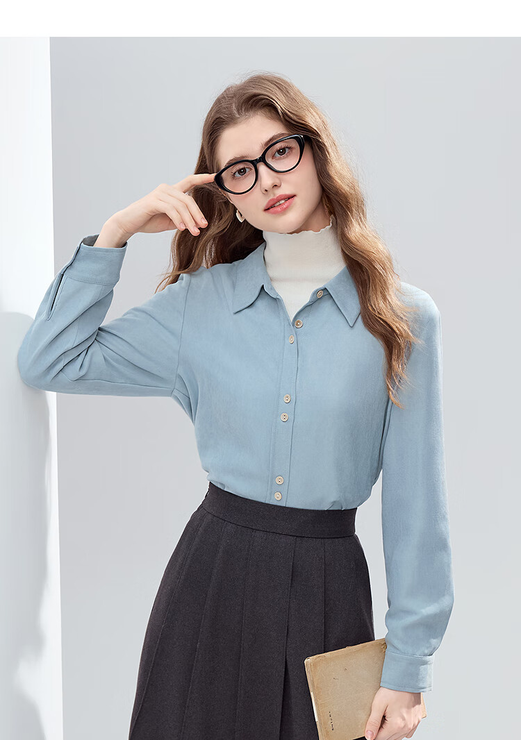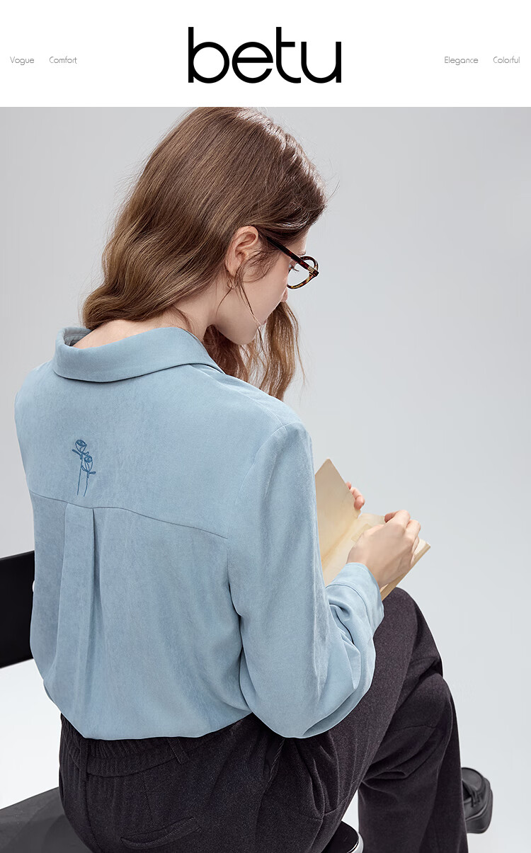 Betu women's 2025 winter new shirt high-end fashionable back embroidered long-sleeved top for women 2510T67 blue S