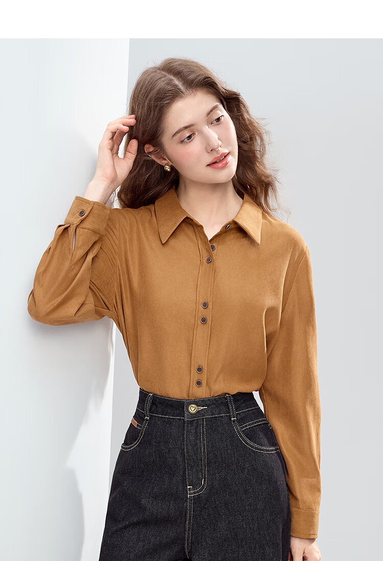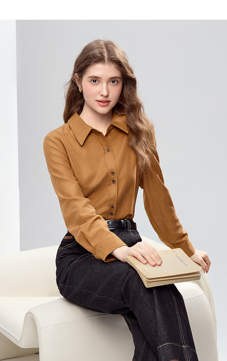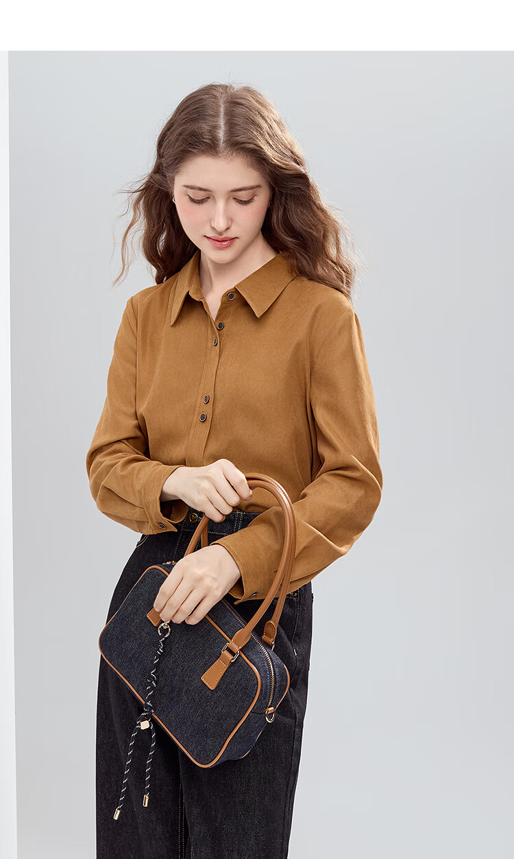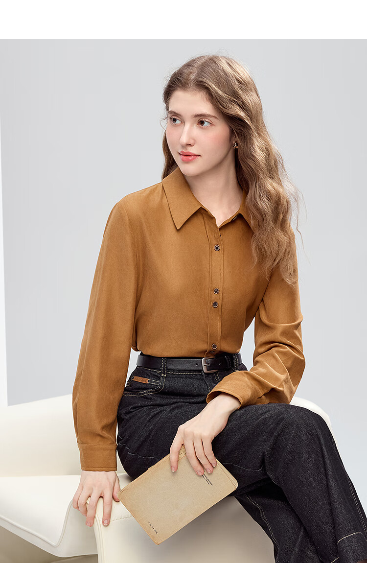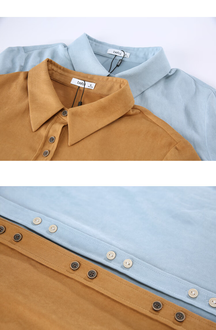 Betu women's 2025 winter new shirt high-end fashionable back embroidered long-sleeved top for women 2510T67 blue S