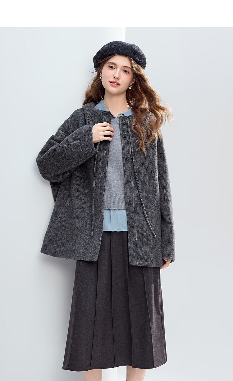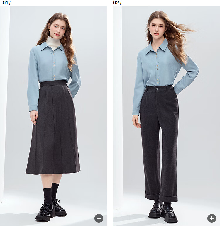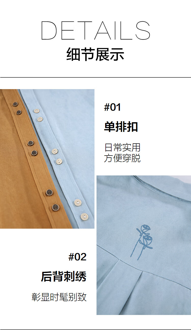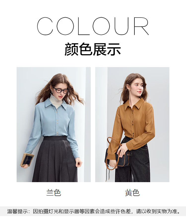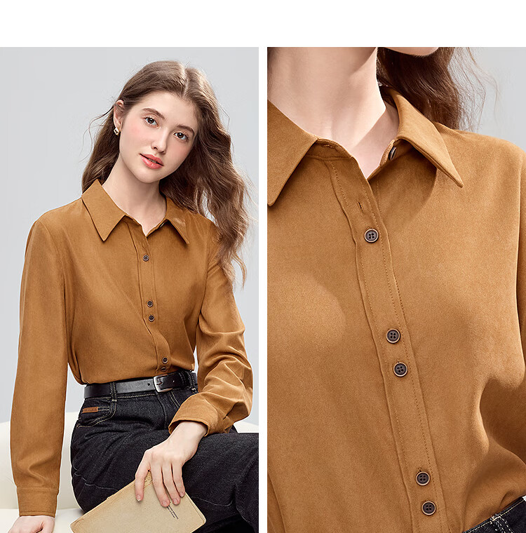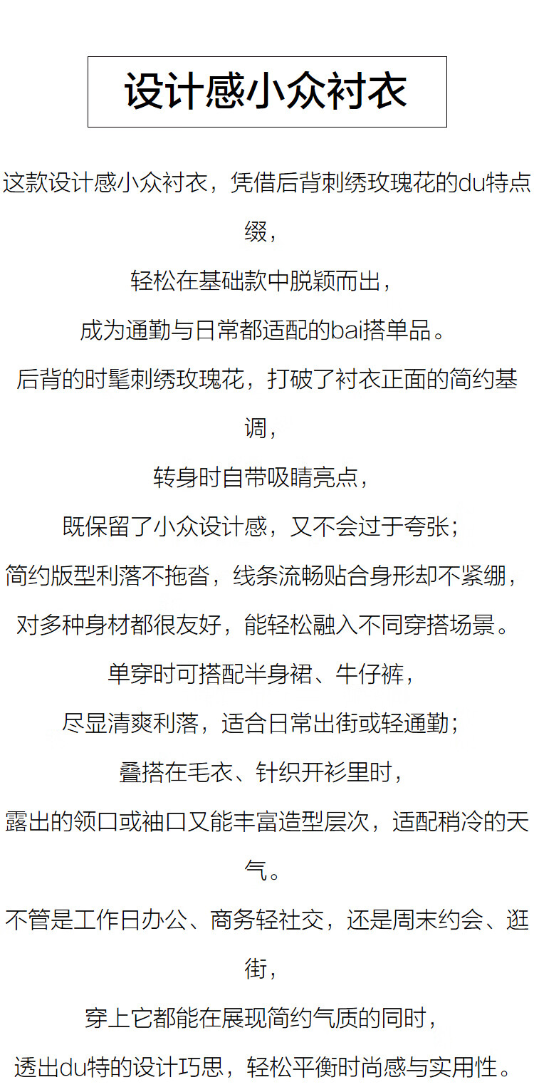 Betu women's 2025 winter new shirt high-end fashionable back embroidered long-sleeved top for women 2510T67 blue S