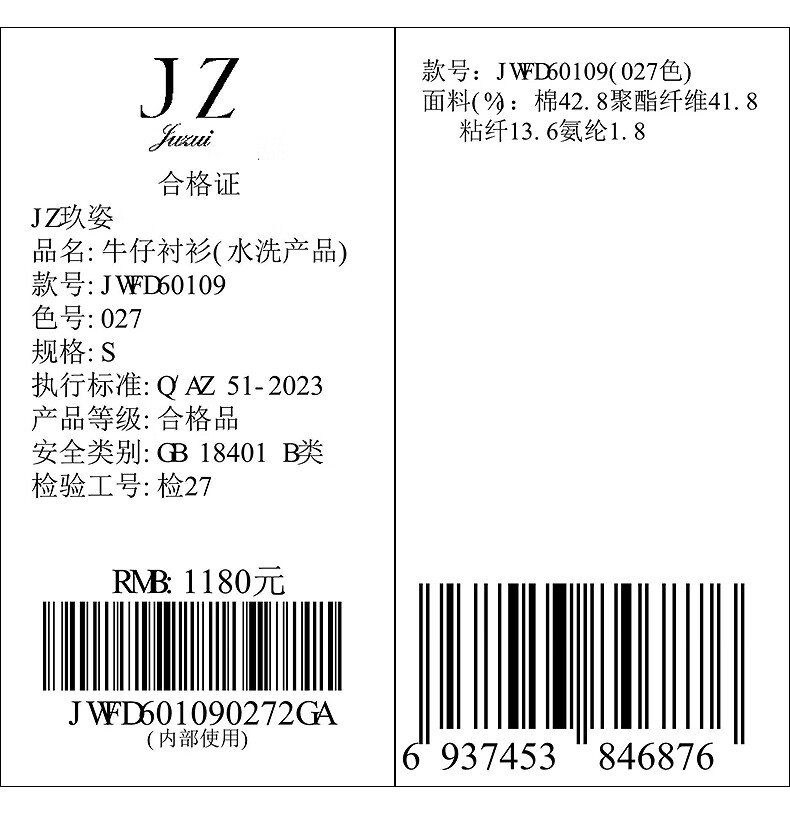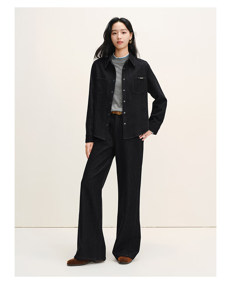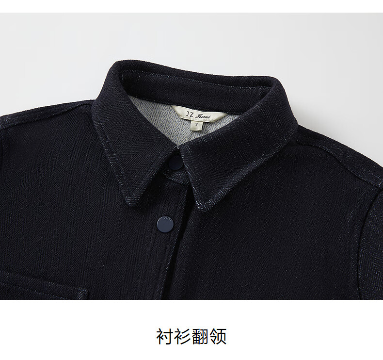 JUZUI relaxed British style H-shaped denim shirt for women 2025 winter new style JWFD60109 dark blue S