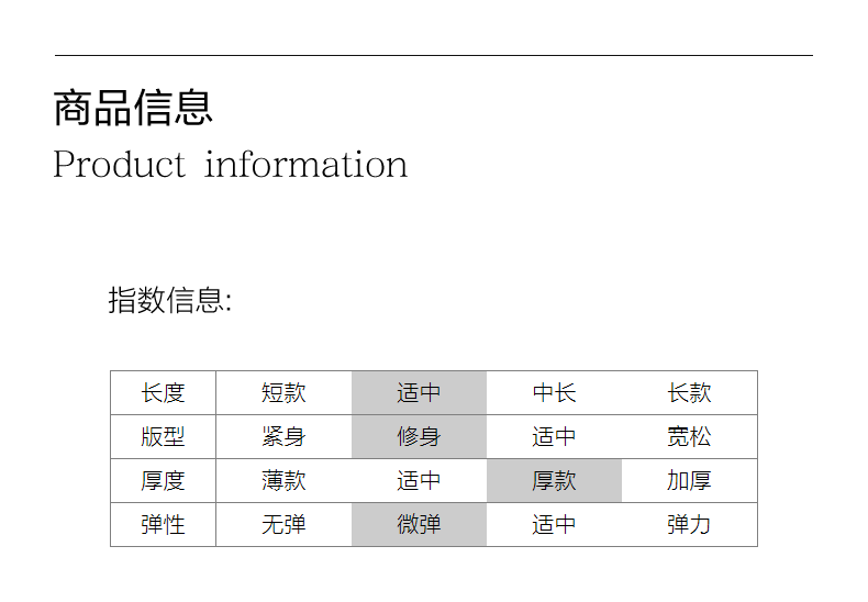 China (cm) 160-165/84-86 165-170 / 88-90 167-172 / 92-96 168-173 / 98-102 170-176 / 106-110